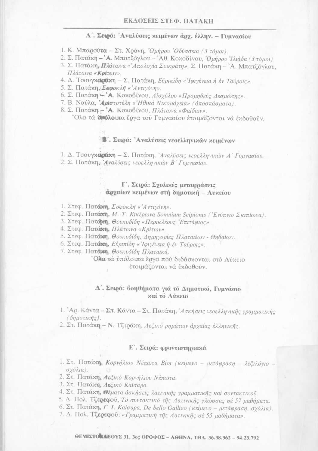 Συγγραφέας: Στ.Πατάκης, Αγγ. Μπατζόγλου