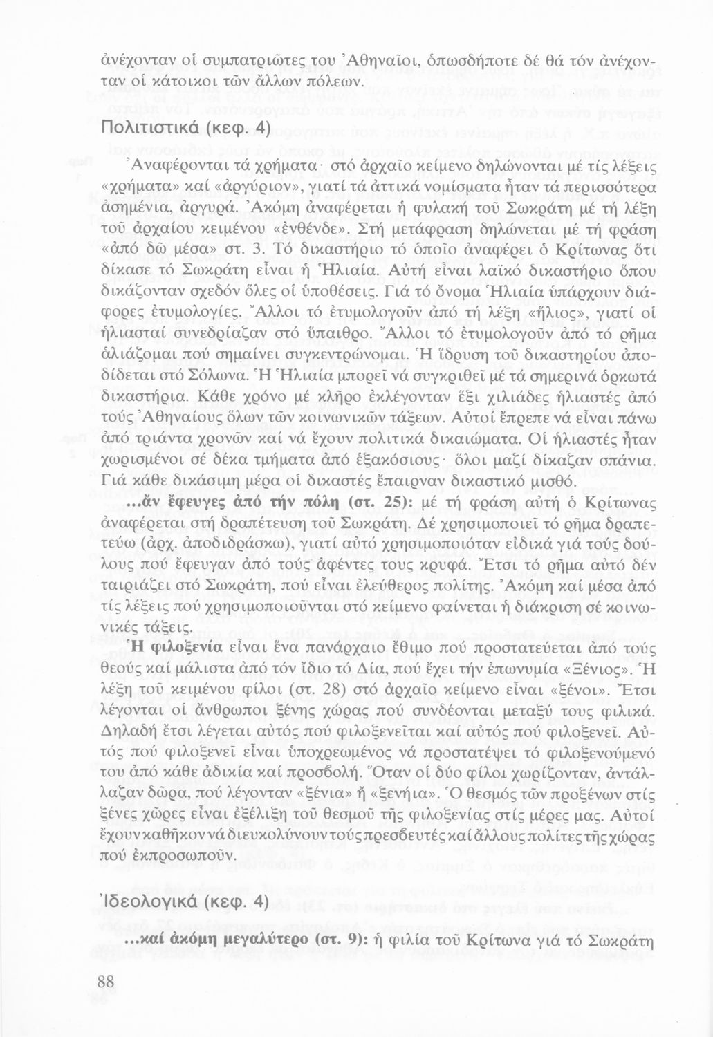 Μαθητικό βοήθημα Αρχαίων Ελληνικών για τους μαθητές της Γ΄ Γυμνασίου, με φιλοσοφική ανάλυση των κειμένων.