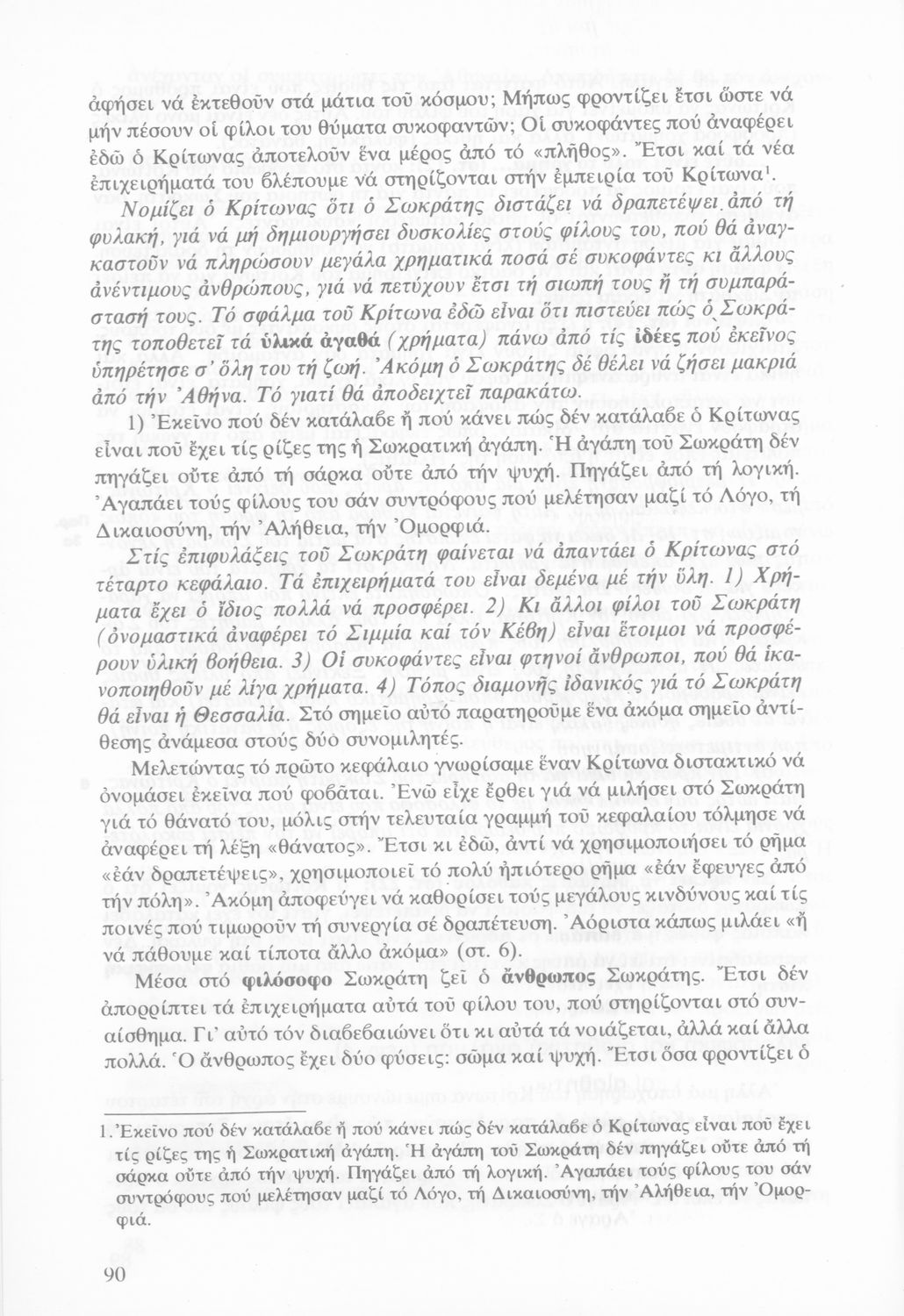 Σχολικό εγχειρίδιο της Γ΄ Γυμνασίου για το μάθημα των Αρχαίων Ελληνικών στο Γυμνάσιο. Πρόκειται για φιλοσοφικά κείμενα. Περιέχει ερμηνευτικές και πραγματολογικές παρατηρήσεις του συγγραφέα.