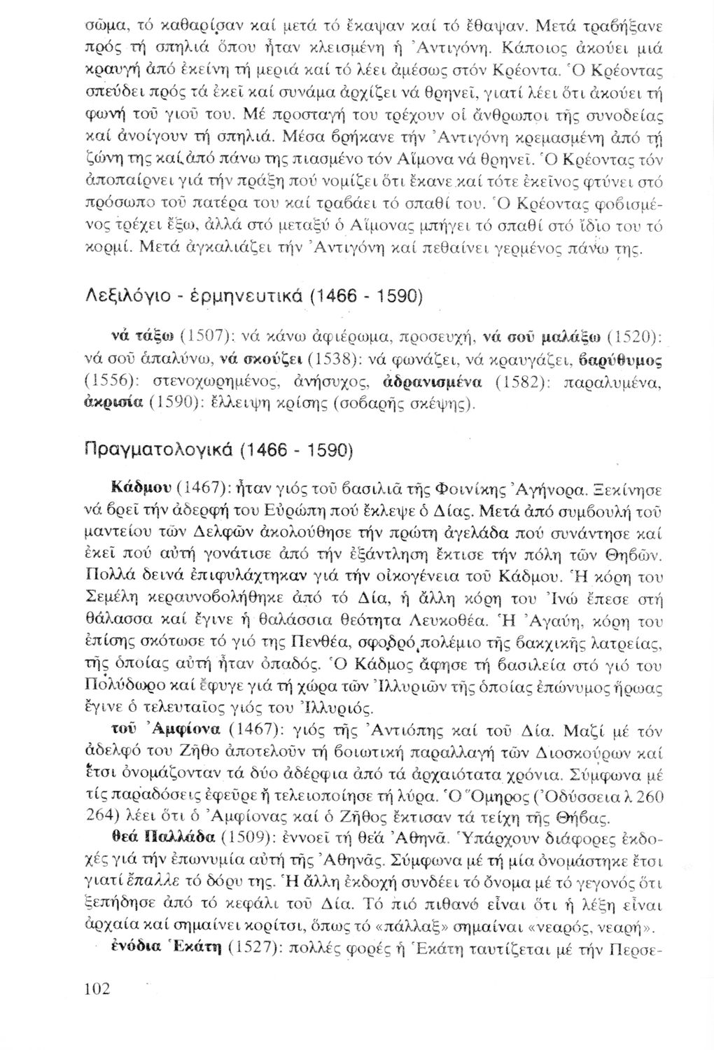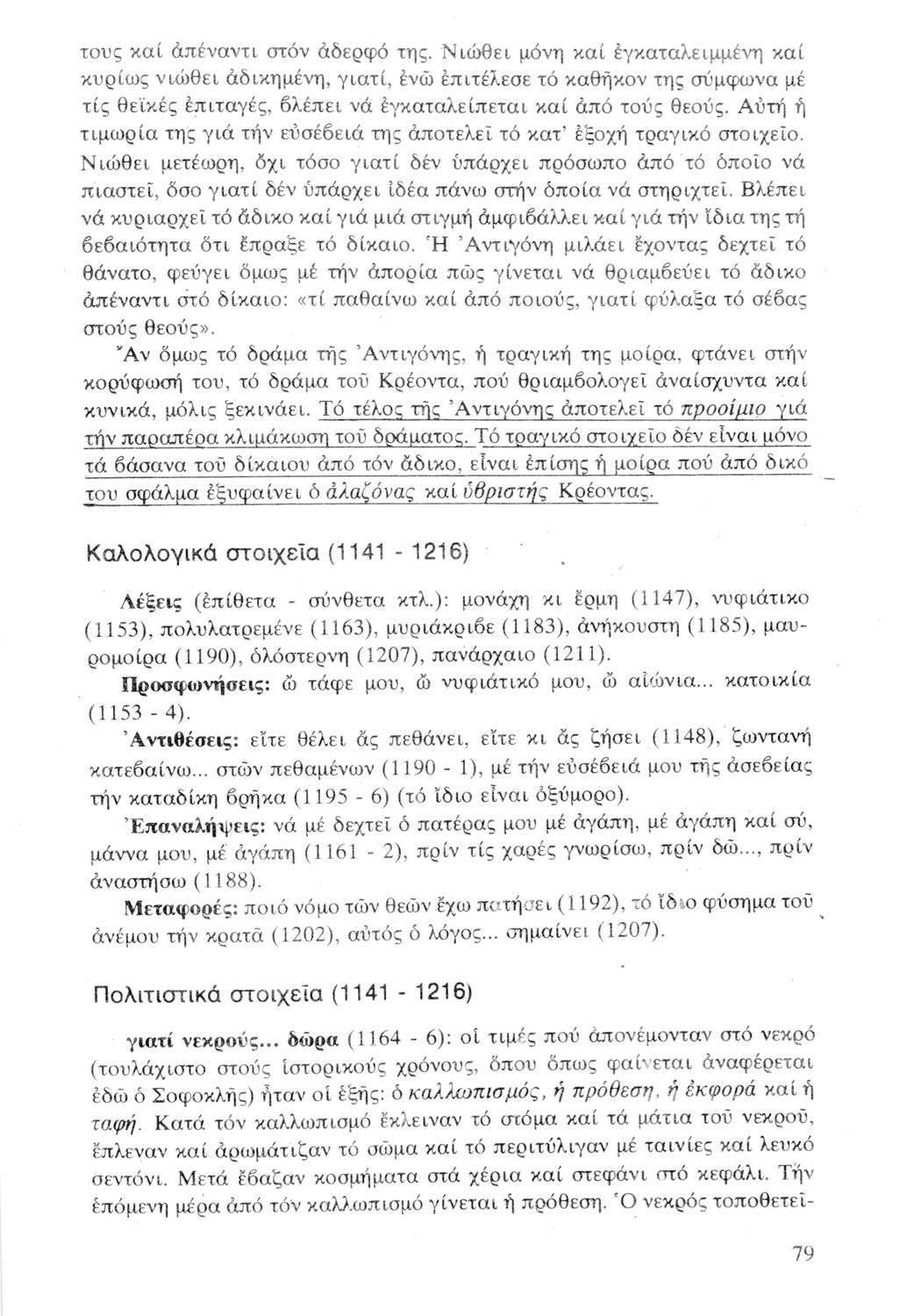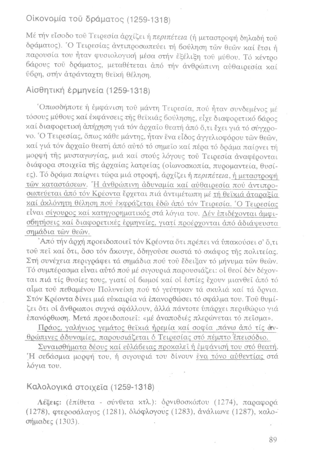 Μαθητικό βοήθημα της Γ΄ Γυμνασίου για το μάθημα των Αρχαίων Ελληνικών. Πρόκειται για ανάλυση κειμένων με πραγματολογικά σχόλια και τη μετάφραση της τραγωδίας.