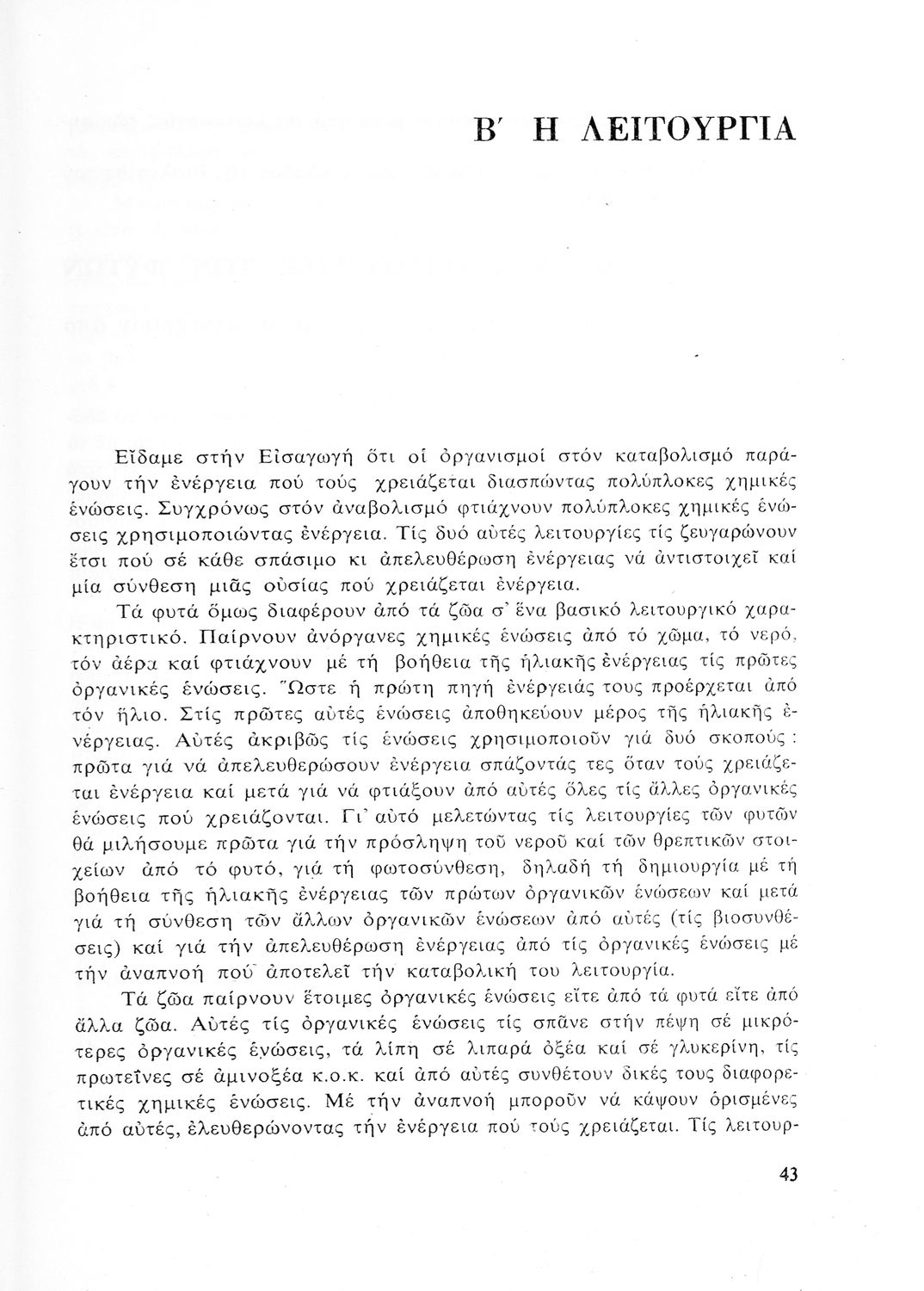 Σχολικό εγχειρίδιο Βιολογίας ΣΤ΄ Γυμνασίου που εστιάζει στις συνθήκες γέννησης, μεταβολής και θανάτου των έμβιων οργανισμών. Φέρει το σύμβολο της δικτατορίας. Ο συγγραφέας ήταν υφηγητής του Πανεπιστημίου ...