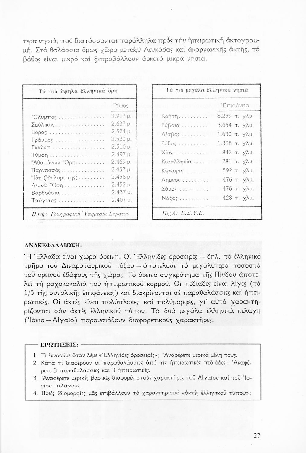 520 ## _aΣχολικό εγχειρίδιο Γεωγραφίας για την Γ΄ Γυμνασίου. Περιέχει στοιχεία για τη γεωλογία, το κλίμα, τον πληθυσμό της Ελλάδας. Αναφέρεται στο δημογραφικό πρόβλημα, την γεωργία, την κτηνοτροφία και την βιομηχανία της Ελλάδας.