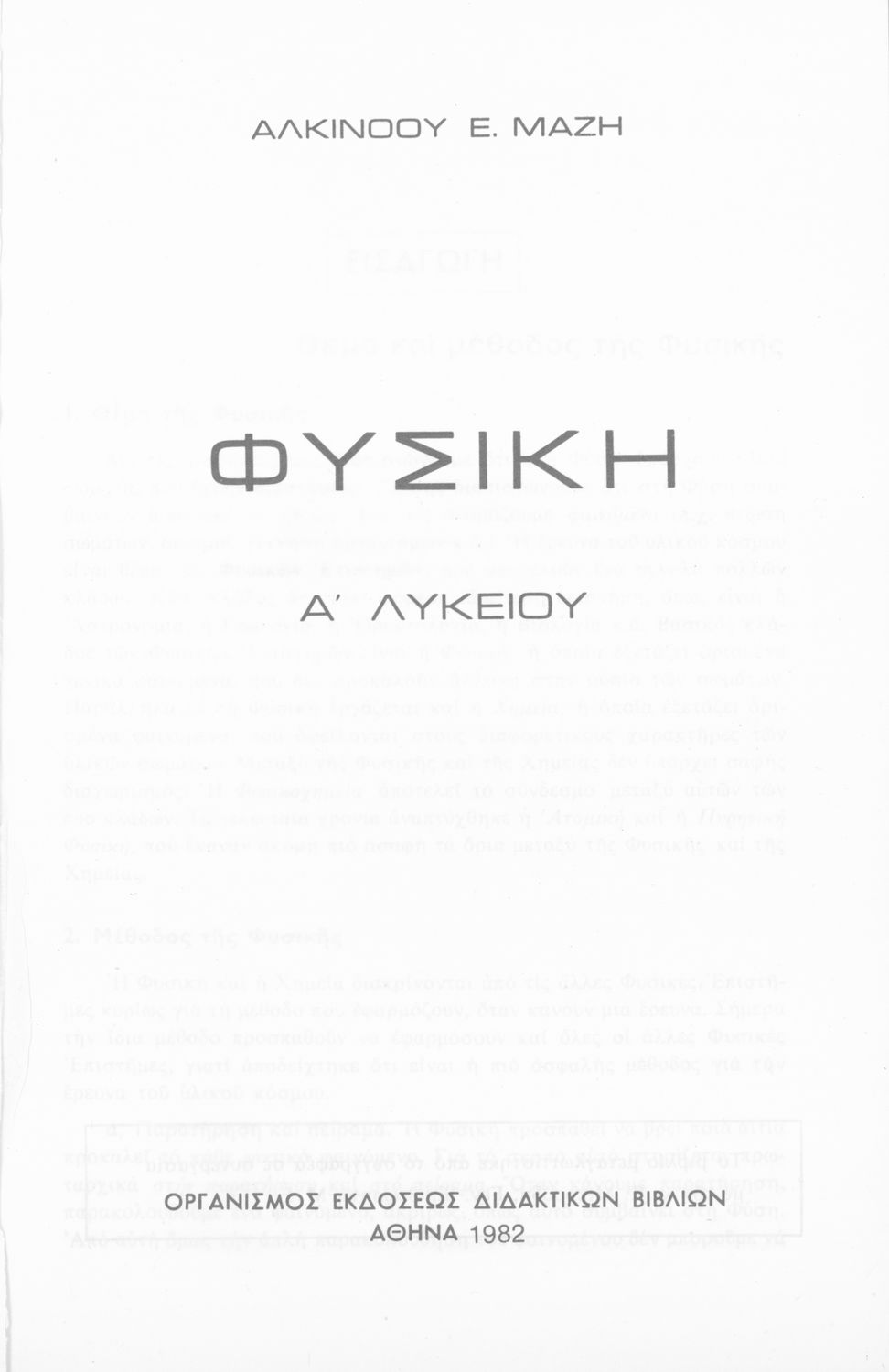 Φυσική Α΄ Λυκείου   [1981, 21η Έκδοση]