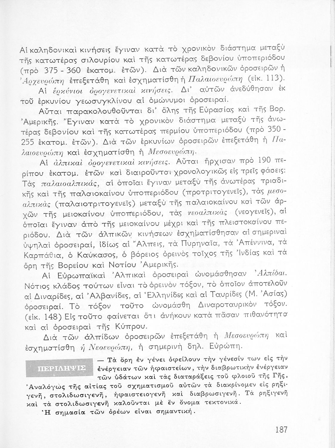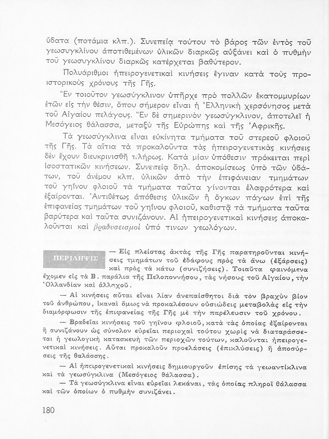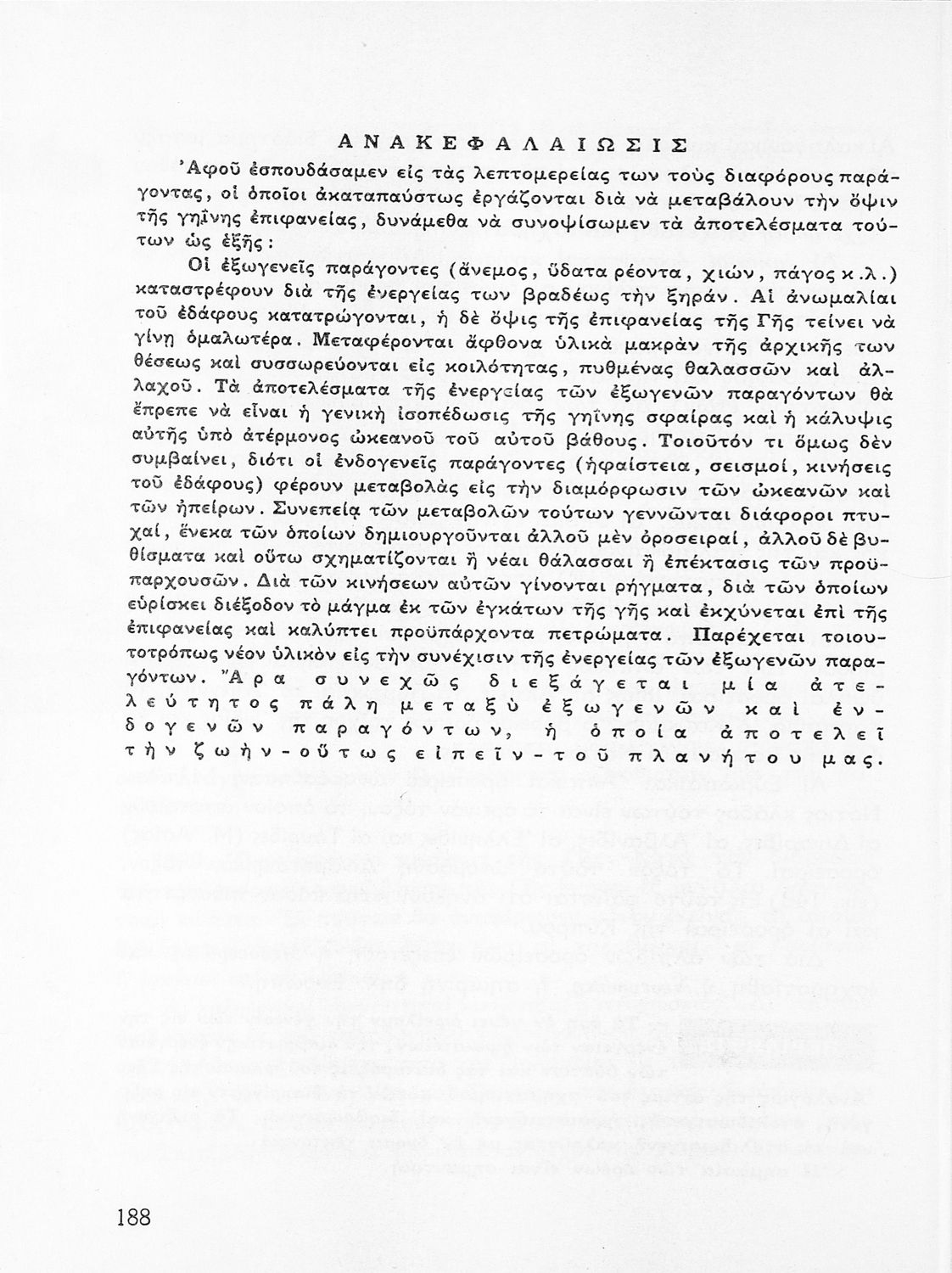 Σχολικό εγχειρίδιο Γεωλογίας/Ορυκτολογίας που περιλαμβάνει χθονογραφική, δυναμική και ιστορική γεωλογία, και γενική και ειδική ορυκτολογία. Ο συγγραφέας ήταν καθηγητής πανεπιστήμιου και η συγγραφέας φυσικός. Φέρει το σύμβολο της δικτατορίας.