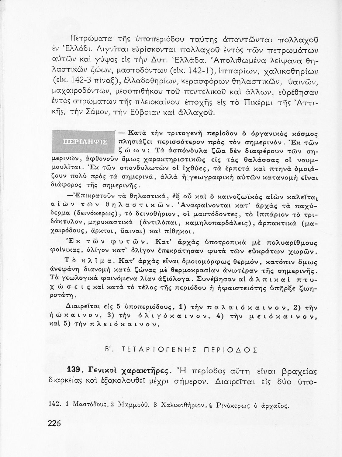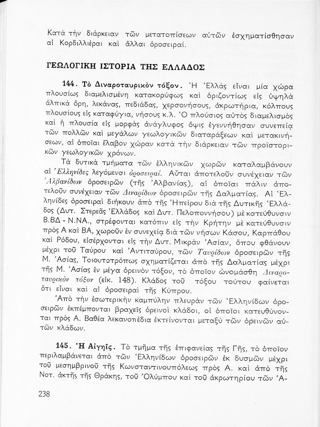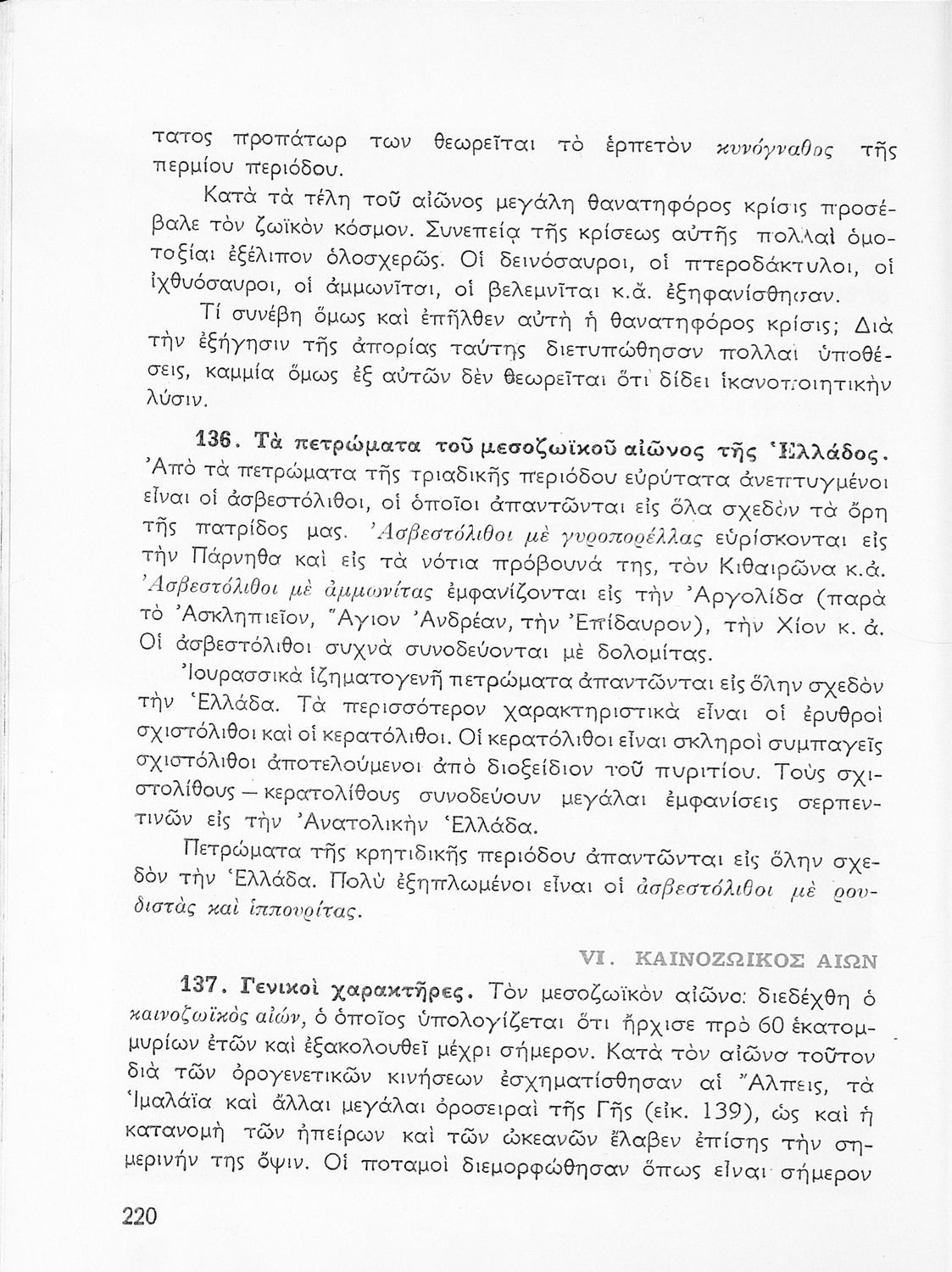 Βαθμίδα εκπαίδευσης: Δευτεροβάθμια Μάθημα: Γεωλογία, Ορυκτολογία Γλώσσα: Απλή καθαρεύουσα Παρουσίαση περιεχομένου: Σχολικό εγχειρίδιο Γεωλογίας/Ορυκτολογίας που περιλαμβάνει χθονογραφική, δυναμική και ιστορική γεωλογία, και γενική και ειδική ορυκτολογία. Ο συγγραφέας ήταν καθηγητής πανεπιστήμιου και η συγγραφέας φυσικός. Φέρει το σύμβολο της δικτατορίας. |