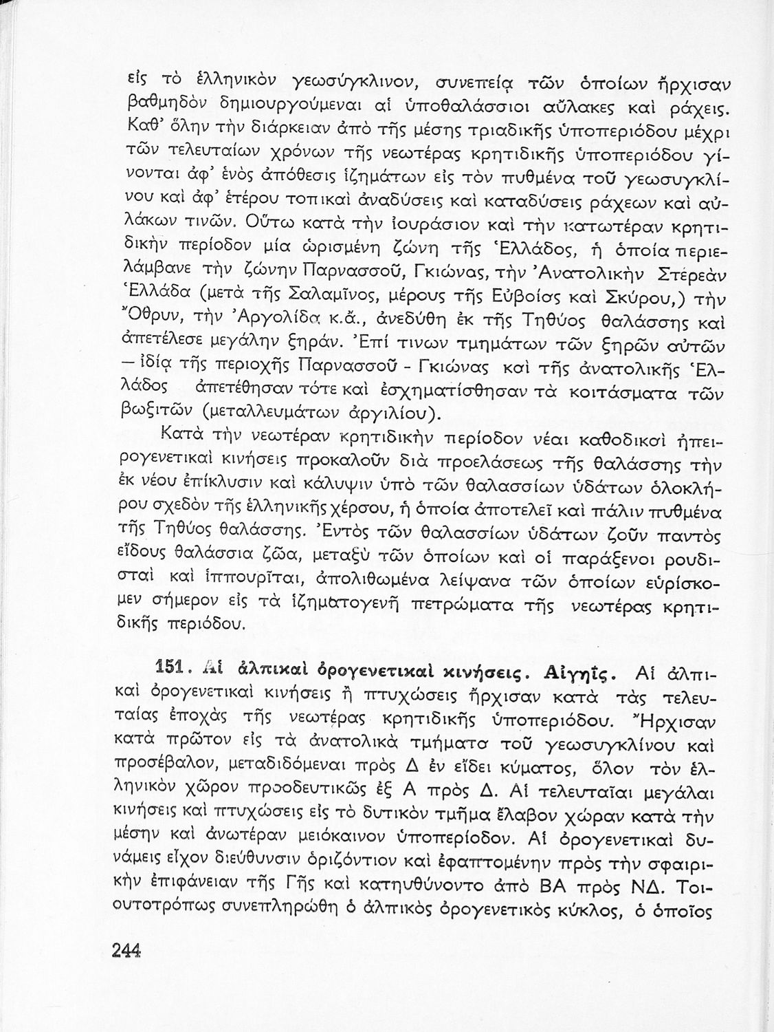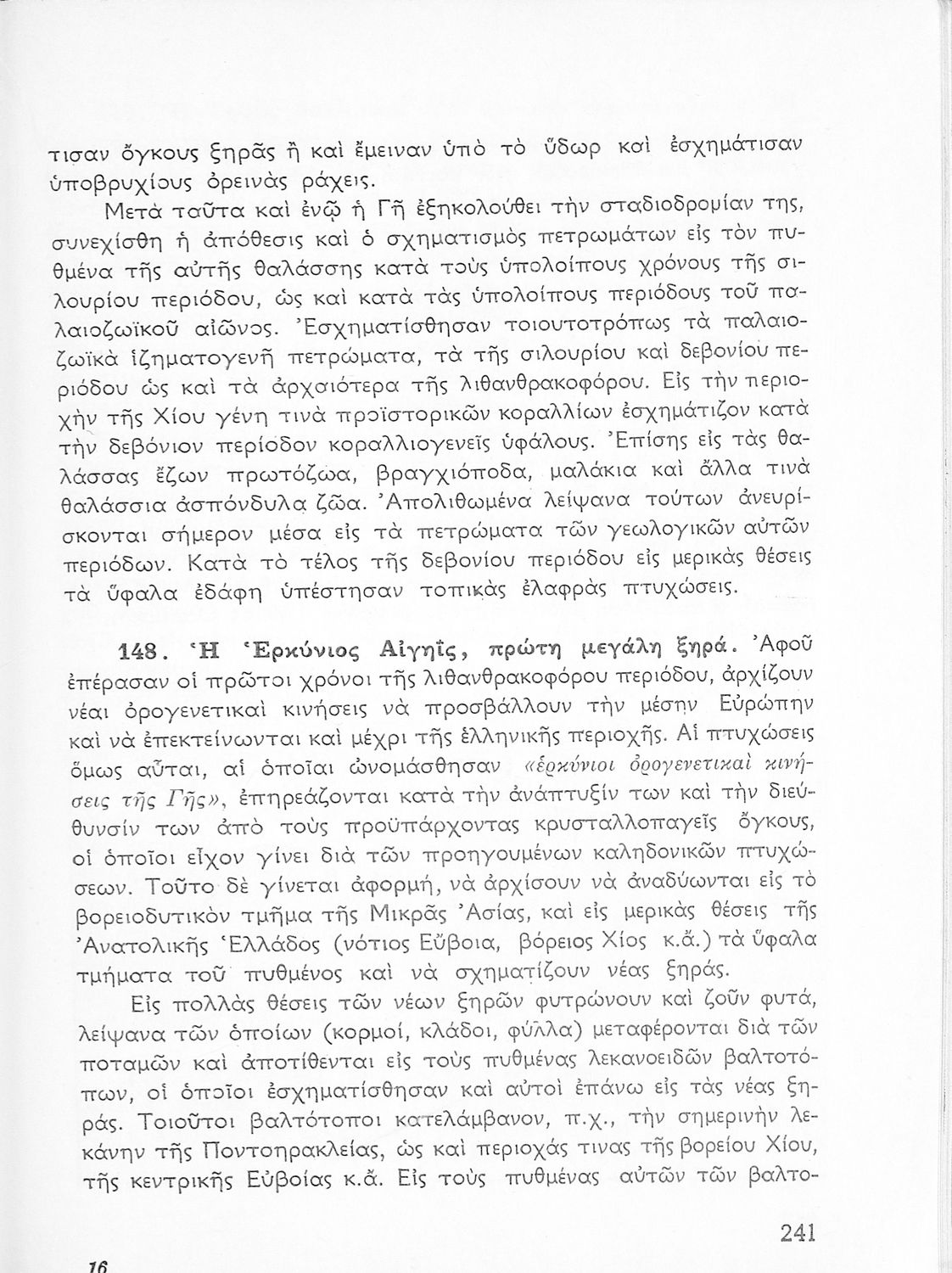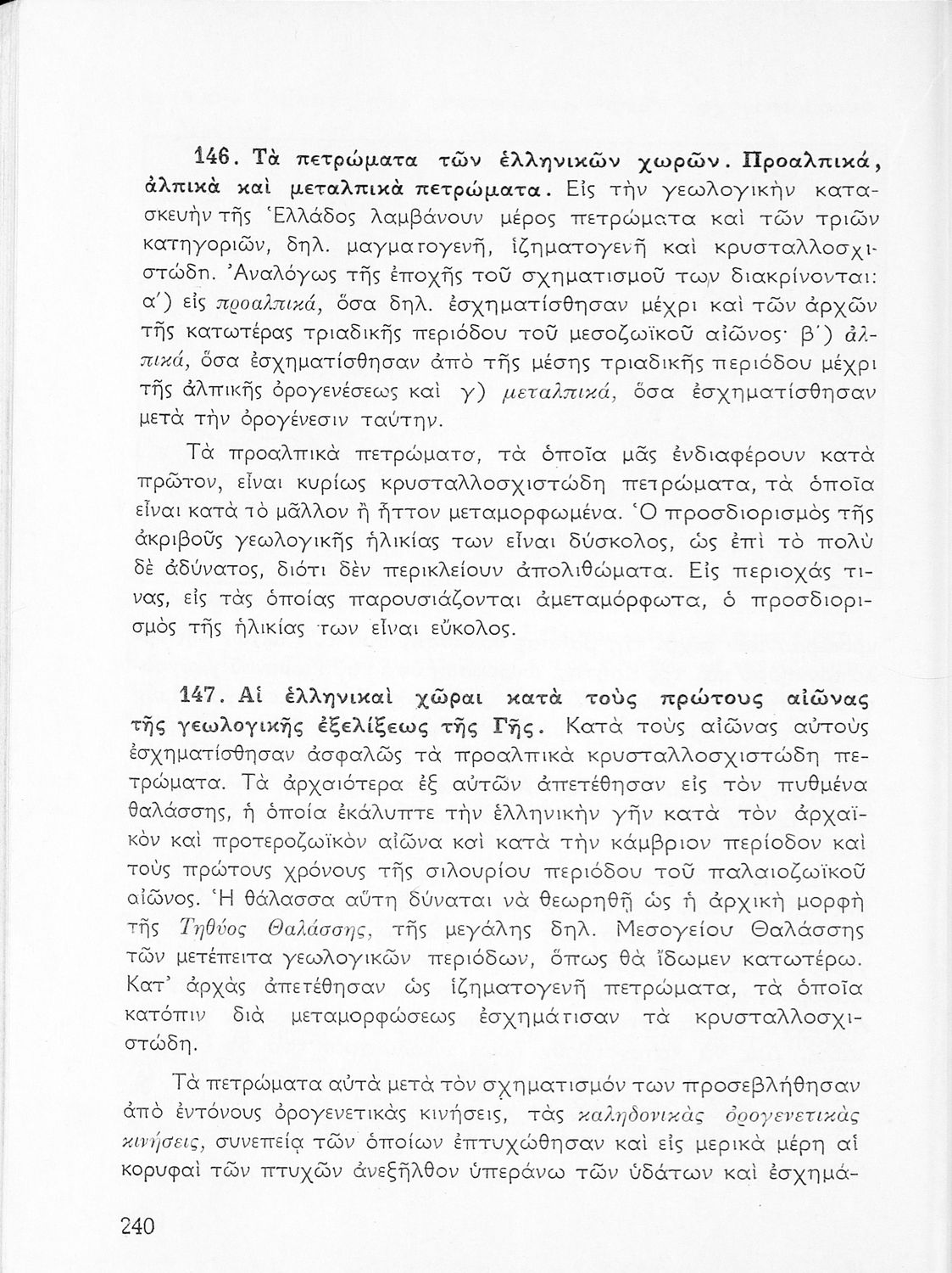 Σχολικό εγχειρίδιο Γεωλογίας/Ορυκτολογίας που περιλαμβάνει χθονογραφική, δυναμική και ιστορική γεωλογία, και γενική και ειδική ορυκτολογία. Ο συγγραφέας ήταν καθηγητής πανεπιστήμιου και η συγγραφέας φυσικός. Φέρει το σύμβολο της δικτατορίας.
