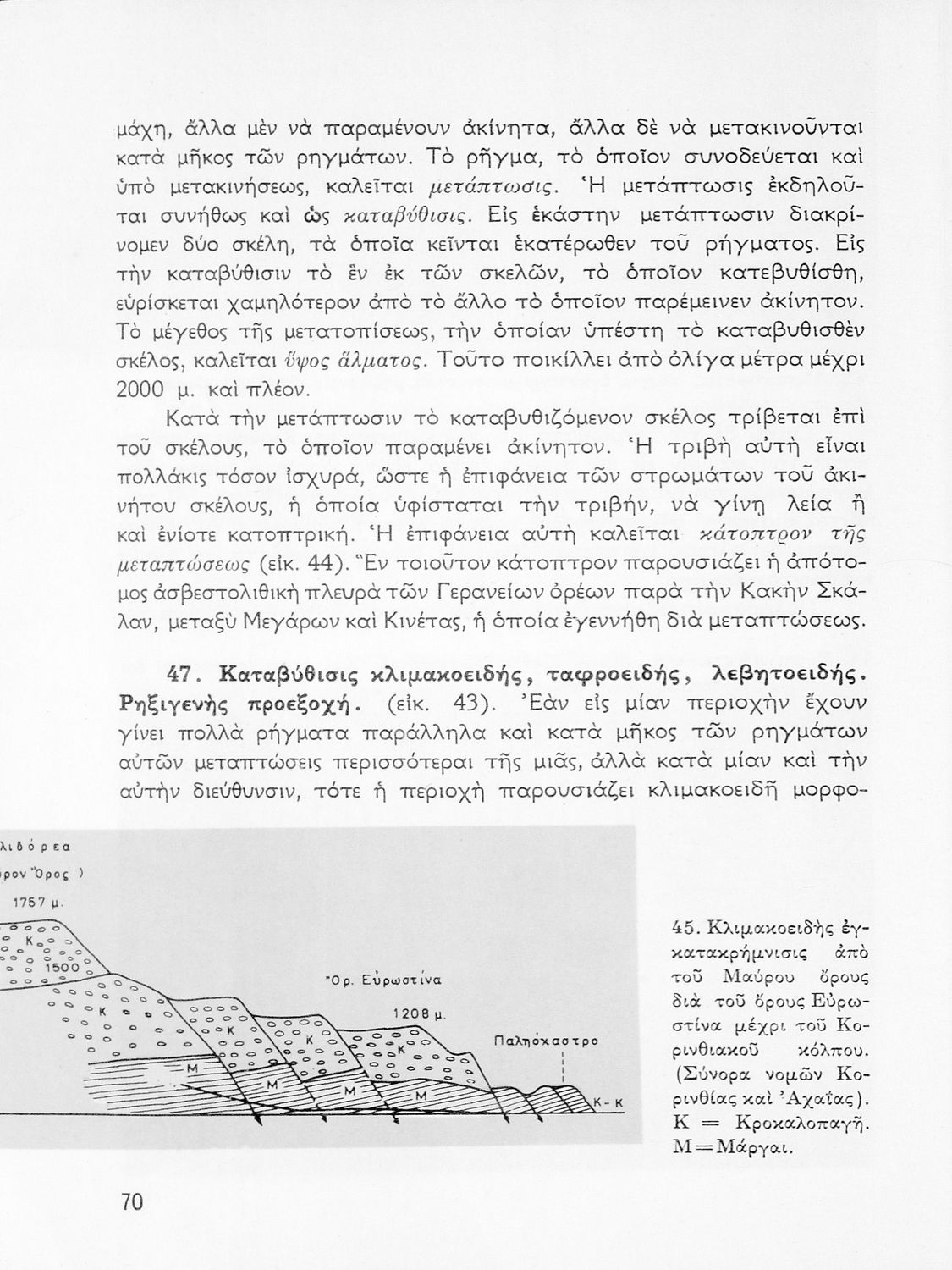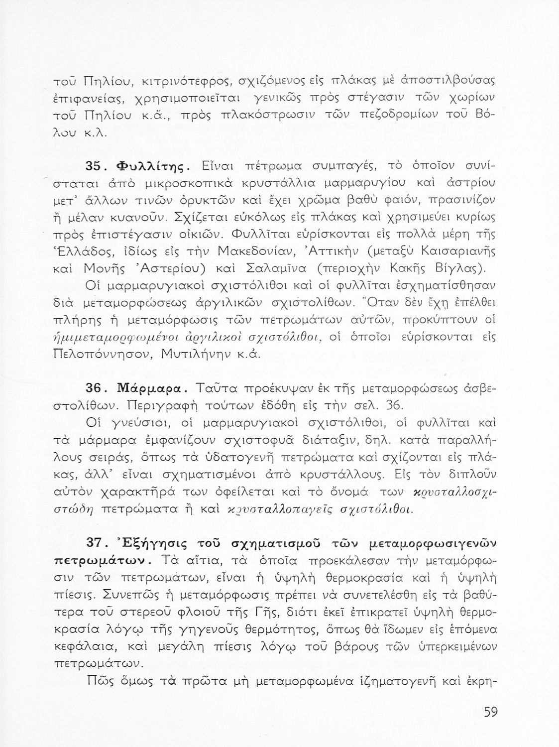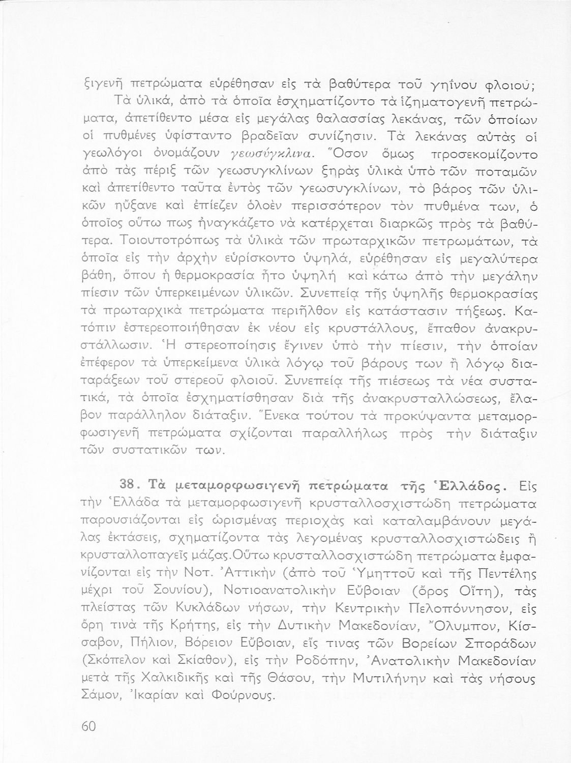 Σχολικό εγχειρίδιο Γεωλογίας/Ορυκτολογίας που περιλαμβάνει χθονογραφική, δυναμική και ιστορική γεωλογία, και γενική και ειδική ορυκτολογία. Ο συγγραφέας ήταν καθηγητής πανεπιστήμιου και η συγγραφέας φυσικός. Φέρει το σύμβολο της δικτατορίας.