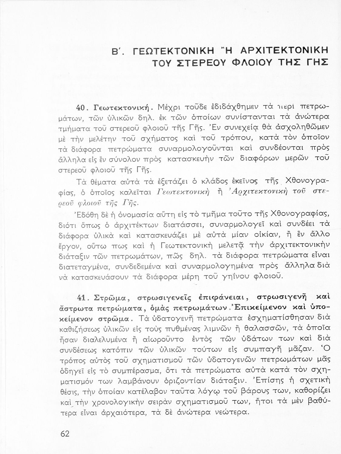 Σχολικό εγχειρίδιο Γεωλογίας/Ορυκτολογίας για την Α΄ Λυκείου που περιλαμβάνει χθονογραφική, δυναμική και ιστορική γεωλογία, και γενική και ειδική ορυκτολογία. Ο συγγραφέας ήταν καθηγητής πανεπιστήμιου και η ...