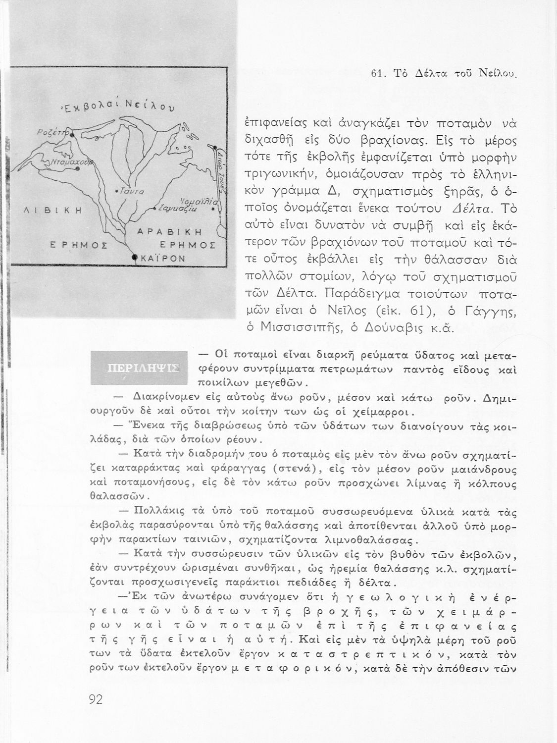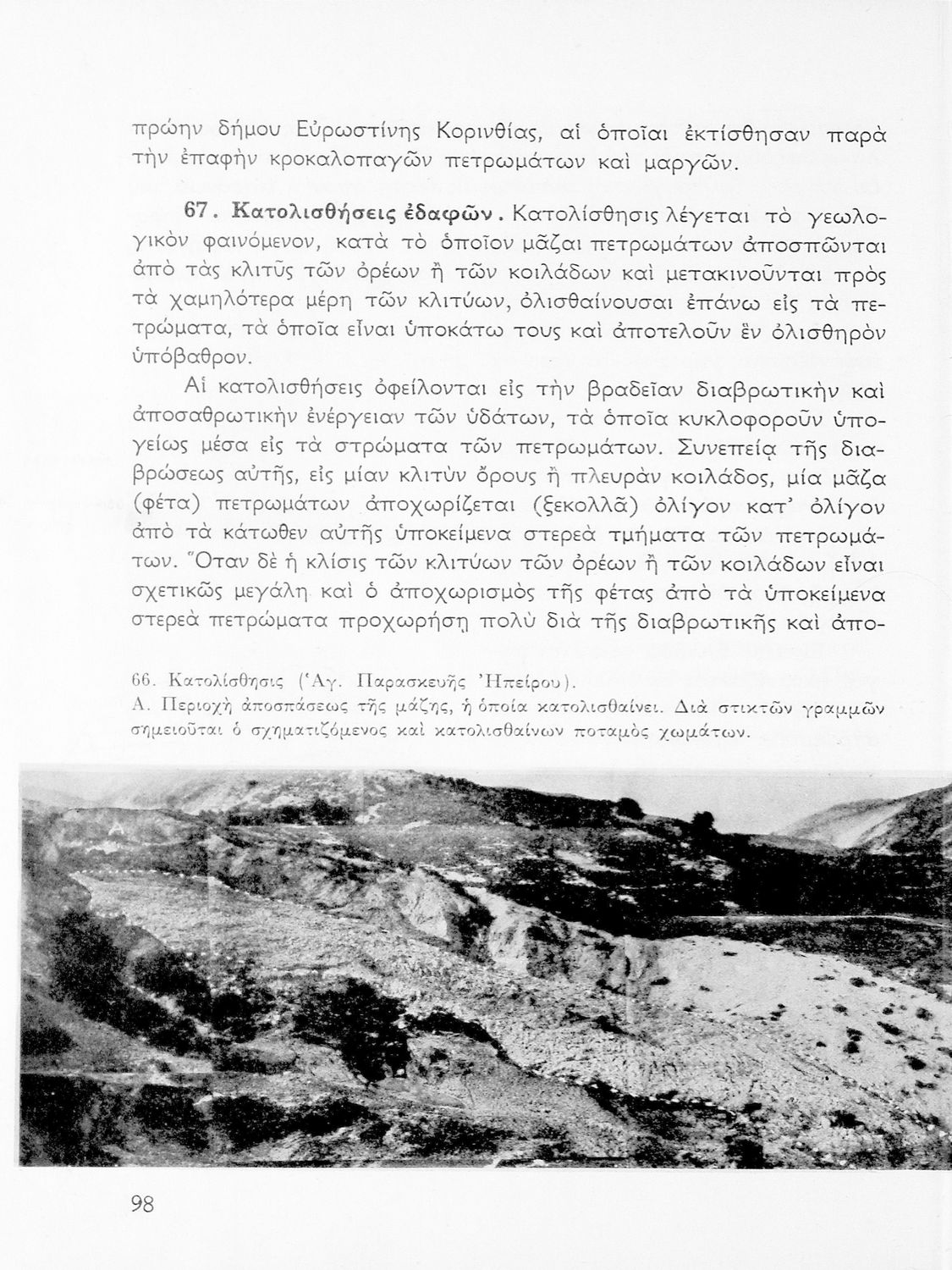 Σχολικό εγχειρίδιο Γεωλογίας/Ορυκτολογίας που περιλαμβάνει χθονογραφική, δυναμική και ιστορική γεωλογία, και γενική και ειδική ορυκτολογία. Ο συγγραφέας ήταν καθηγητής πανεπιστήμιου και η συγγραφέας φυσικός. Φέρει το σύμβολο της δικτατορίας.