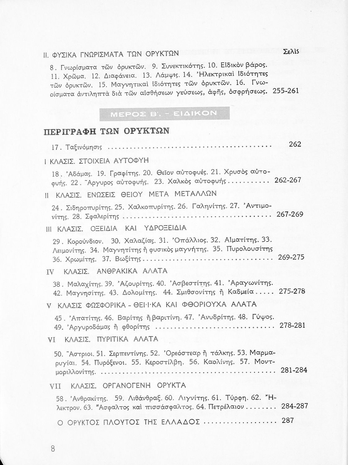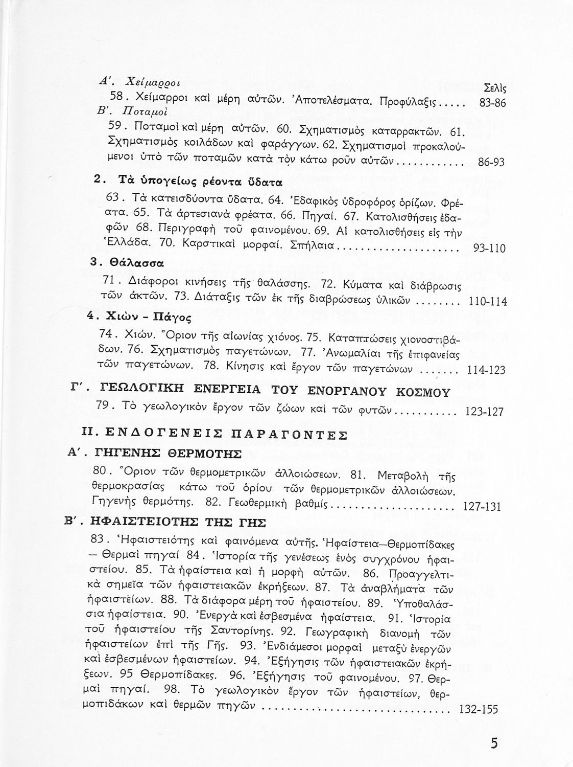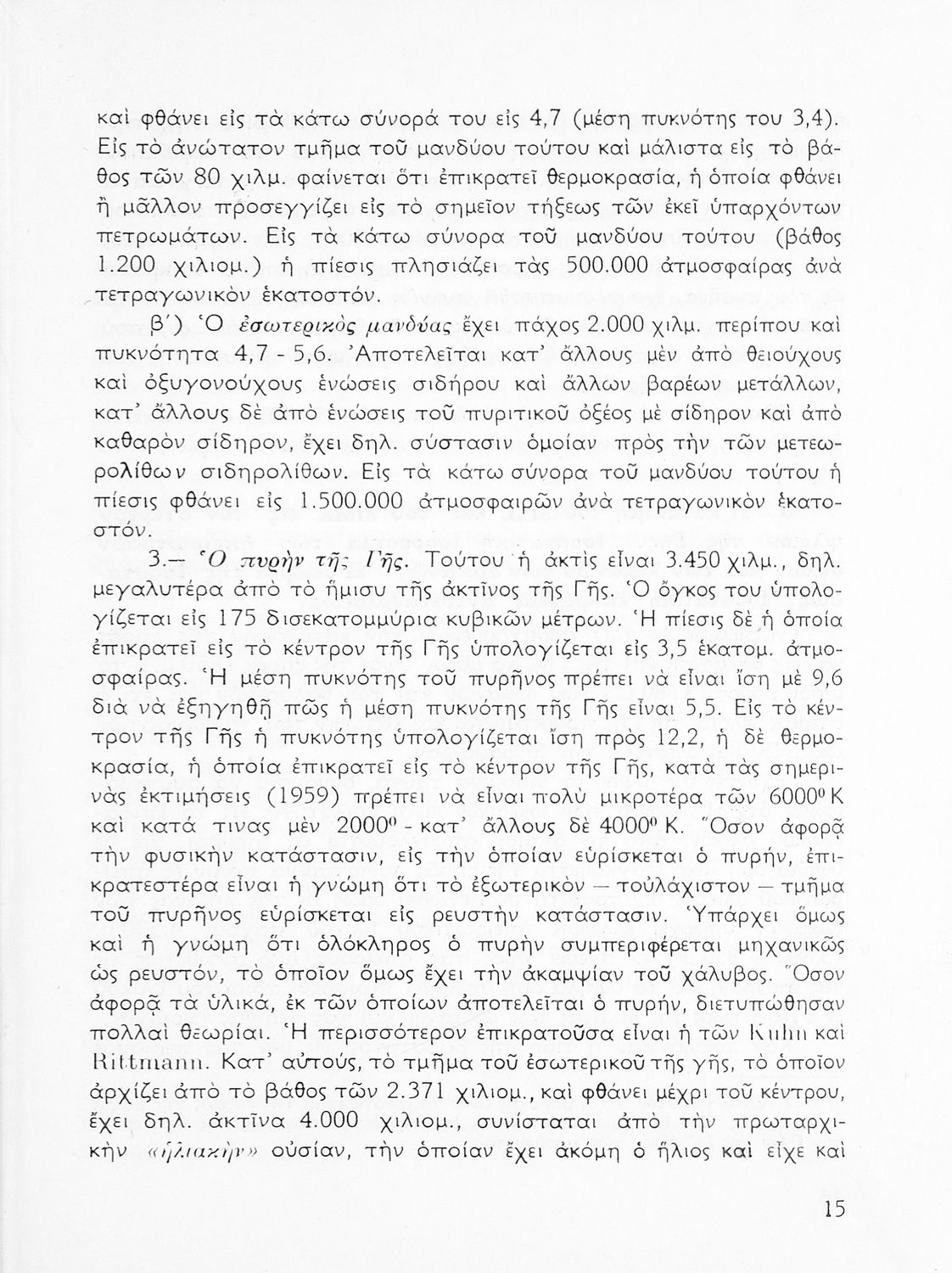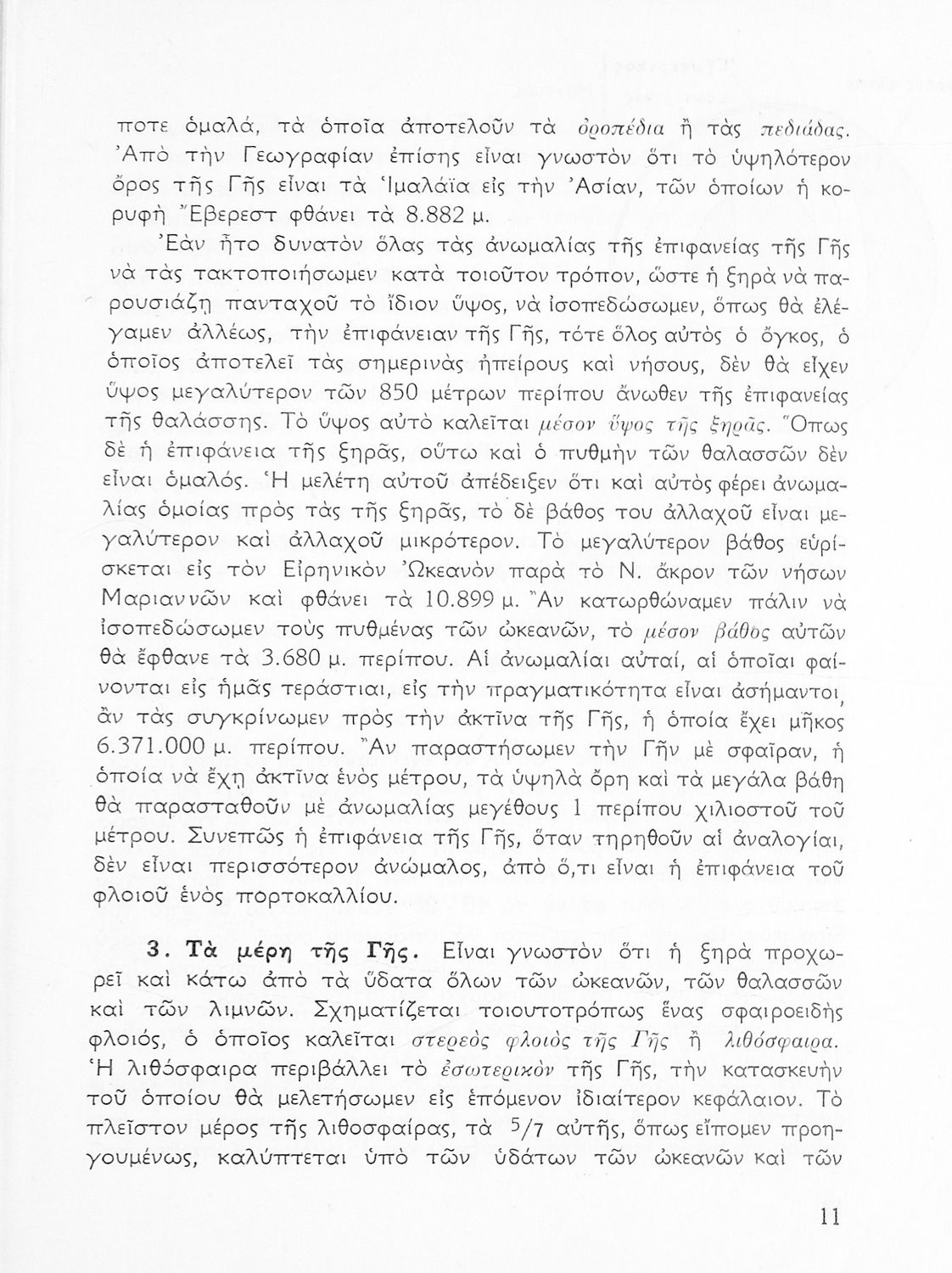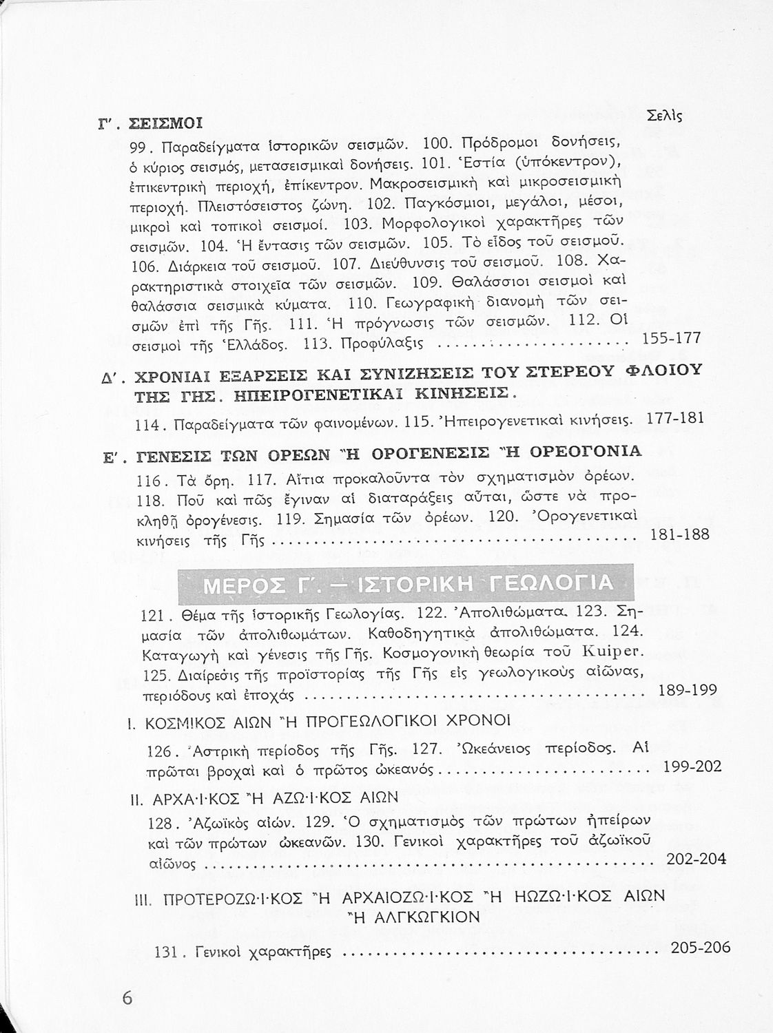 Σχολικό εγχειρίδιο Γεωλογίας/Ορυκτολογίας που περιλαμβάνει χθονογραφική, δυναμική και ιστορική γεωλογία, και γενική και ειδική ορυκτολογία. Ο συγγραφέας ήταν καθηγητής πανεπιστήμιου και η συγγραφέας φυσικός. Φέρει το σύμβολο της δικτατορίας.
