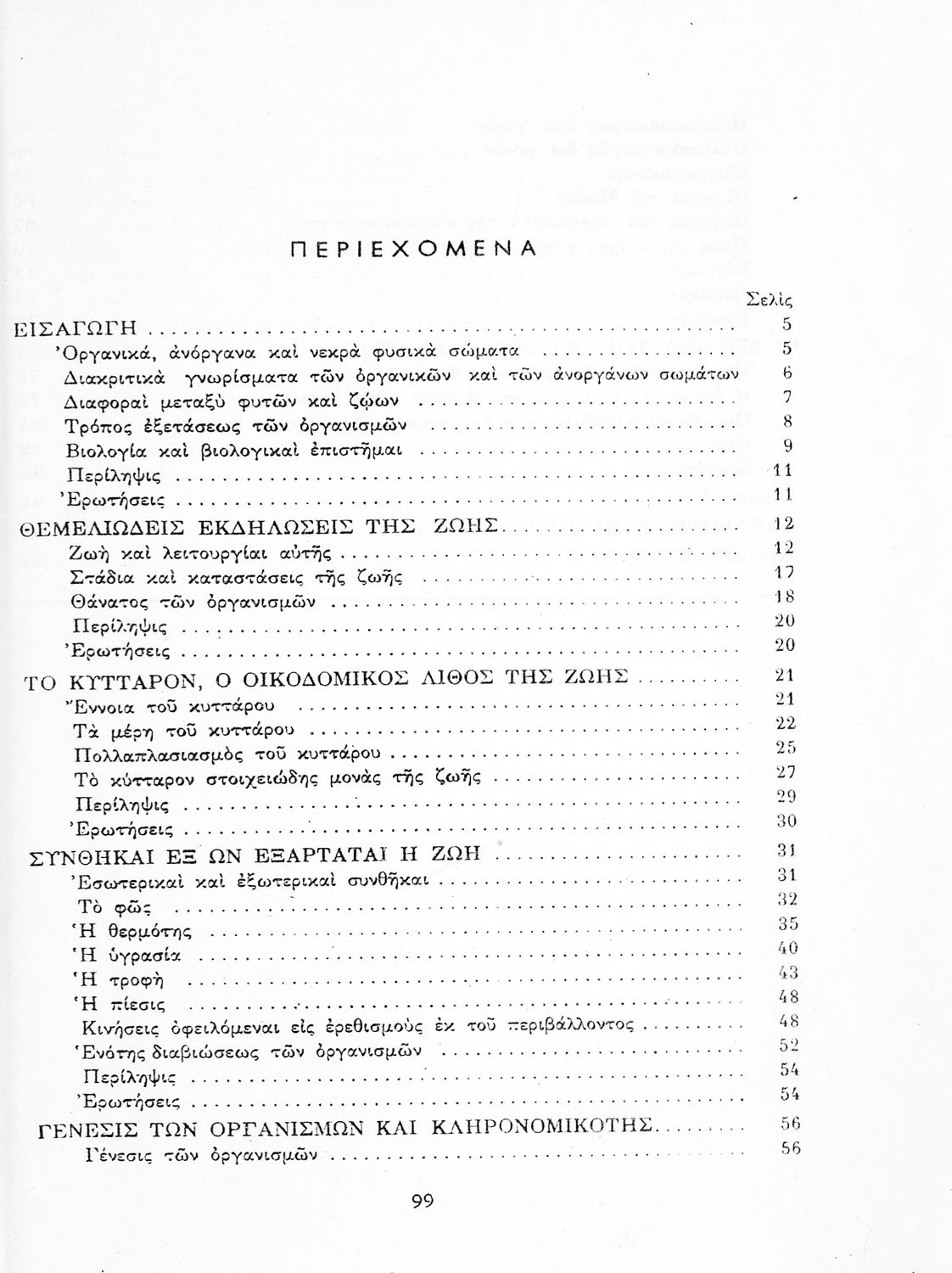 Σχολικό εγχειρίδιο Βιολογίας Δ΄ Γυμνασίου που εστιάζει στις συνθήκες γέννησης, μεταβολής και θανάτου των έμβιων οργανισμών. Ο συγγραφέας ήταν καθηγητής της γενικής Βιολογίας στο Πανεπιστήμιο Αθηνών.