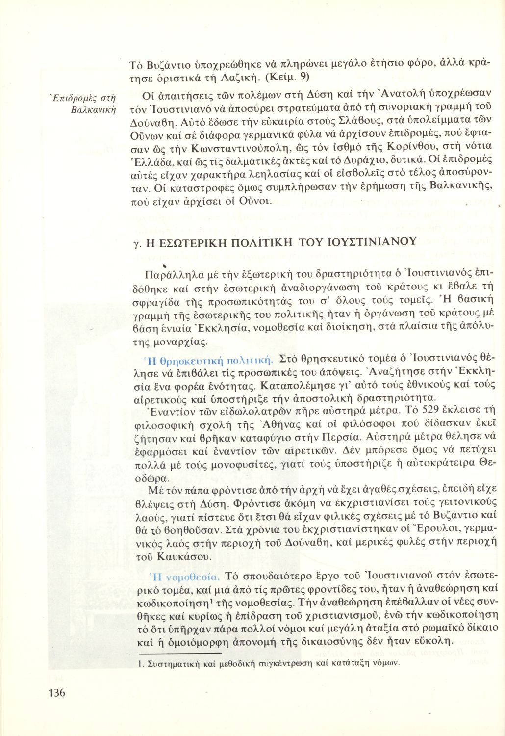 LDR 01504 2200217 4500 035 ## _a01-19631 040 ## _aΙνστιτούτο Εκπαιδευτικής Πολιτικής 041 ## _ael 100 ## _aΛάμπρος Τσακτσίρας _aΖαχαρίας Ορφανουδάκης _aΜαρία Θεοχάρη 110 ## _a19631 245 0# _aΙστορία Ρωμαϊκή και Βυζαντινή Β΄ Γυμνασίου 250 ## _a1η Έκδοση 260 ## _aΑθήνα _bΟργανισμός Εκδόσεως Διδακτικών Βιβλίων _c1978 300 ## _a399 _bΣκίτσα, εικόνες χάρτης (έγχρωμα) 520 ## _aΣχολικό εγχειρίδιο Ιστορίας Β΄ Γυμνασίου που καλύπτει την περίοδο από την κατάληψη της Ελλάδας από τους Ρωμαίους ως την πτώση της Βυζαντινής Αυτοκρατορίας. 521 ## _aΒ' Γυμνασίου 522 ## _aΕλλάδα 546 ## _aΔημοτική 563 ## _aΜαλακό Εξώφυλλο 583 ## _a3069/29-6-1978 _c1978 650 #4 _aΑχαϊκή Συμπολιτεία _aΓράκχοι _aΔημοκρατία _aΕικονομαχία _aΙουλιο-Κλαυδιανή συμμαχία _aΙουστινιανός _aΜάριος και στρατιωτική μεταρρύθμιση _aΜιθριδατικός πόλεμος _aΠρώτη Τριανδρία _aΣατουρνίνος _aΣταυροφορίες _aΣύλλας