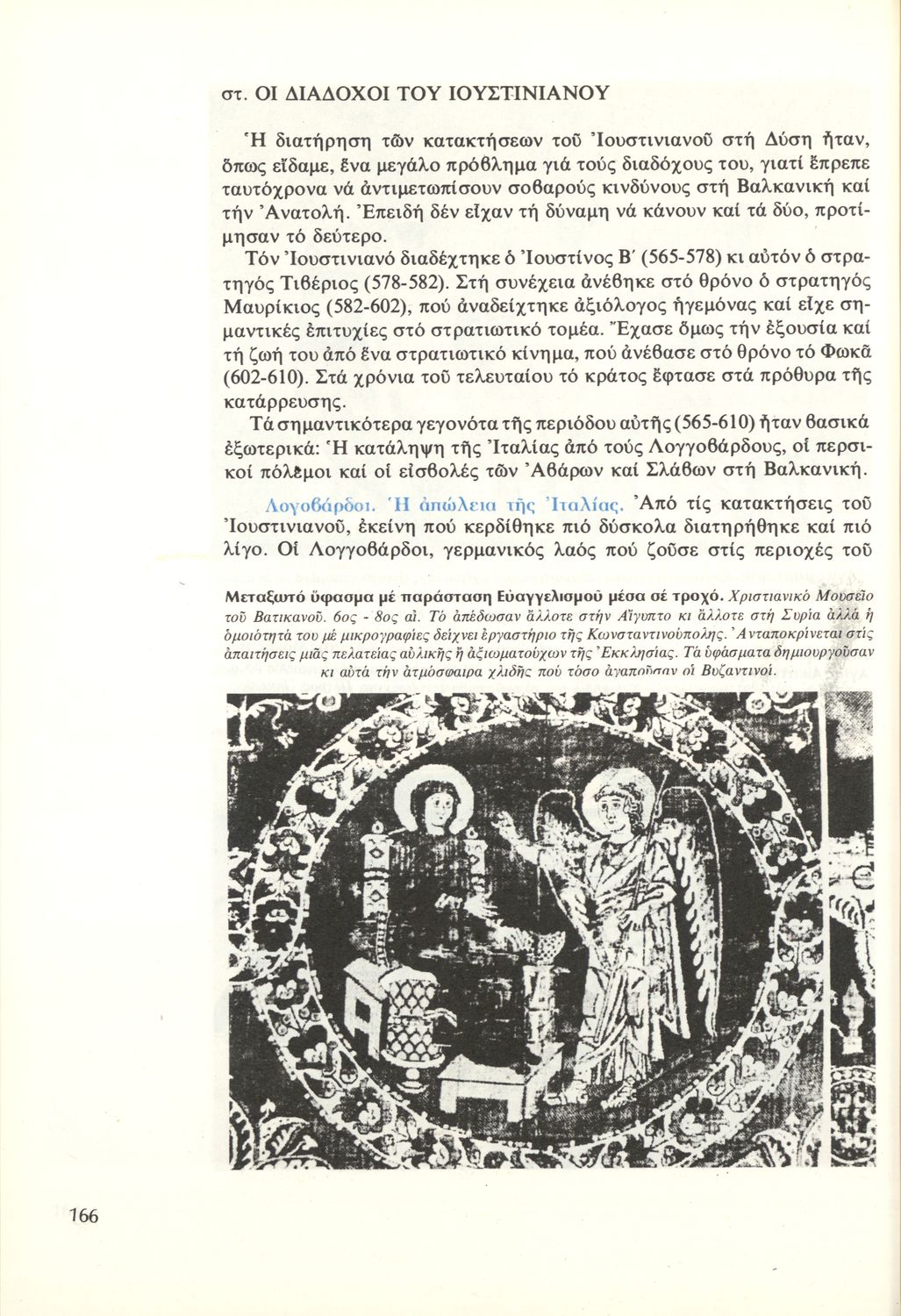 Σχολικό εγχειρίδιο Ιστορίας Β΄ Γυμνασίου που καλύπτει την περίοδο από την κατάληψη της Ελλάδας από τους Ρωμαίους ως την πτώση της Βυζαντινής Αυτοκρατορίας.