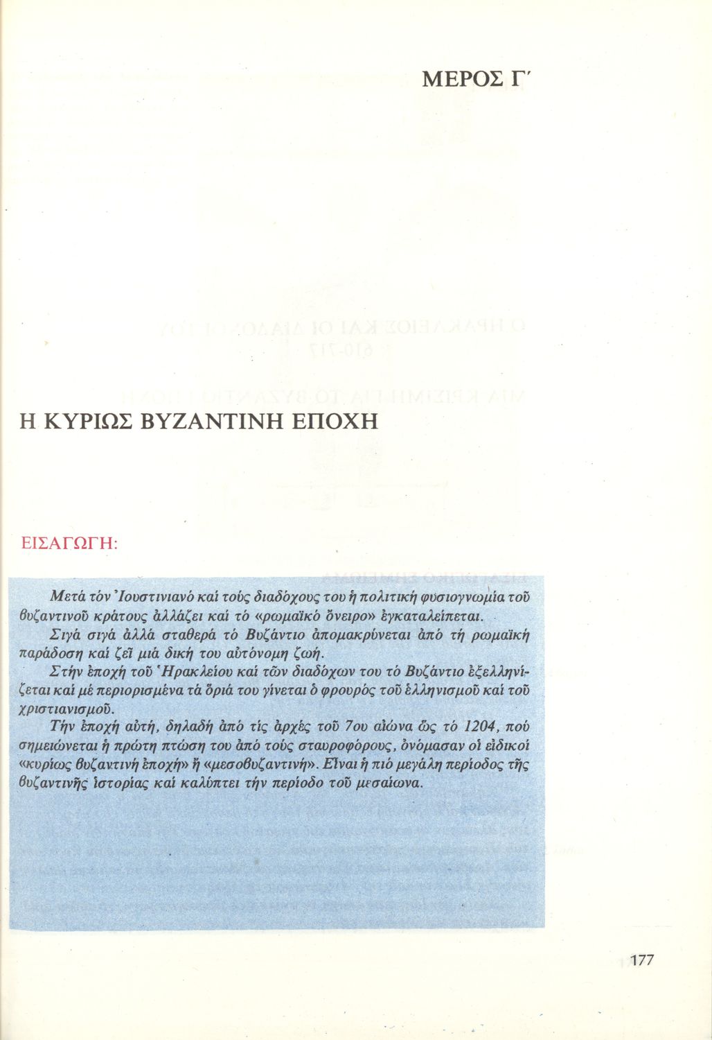 Σχολικό εγχειρίδιο Ιστορίας Β΄ και Ε΄ Γυμνασίου που καλύπτει την περίοδο από την άνοδο του Μ. Κωνσταντίνου στο θρόνο μέχρι και την άλωση της Κωνσταντινούπολης. Παρουσιάζει και τα πνευματικά και καλλιτεχνικά ...