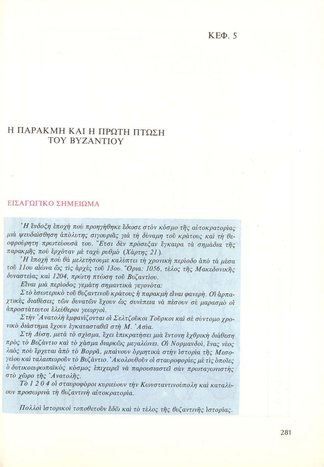 Σχολικό εγχειρίδιο Ιστορίας Β΄ και Ε΄ Γυμνασίου που καλύπτει την περίοδο από την άνοδο του Μ. Κωνσταντίνου στο θρόνο μέχρι και την άλωση της Κωνσταντινούπολης. Παρουσιάζει και τα πνευματικά και καλλιτεχνικά ...