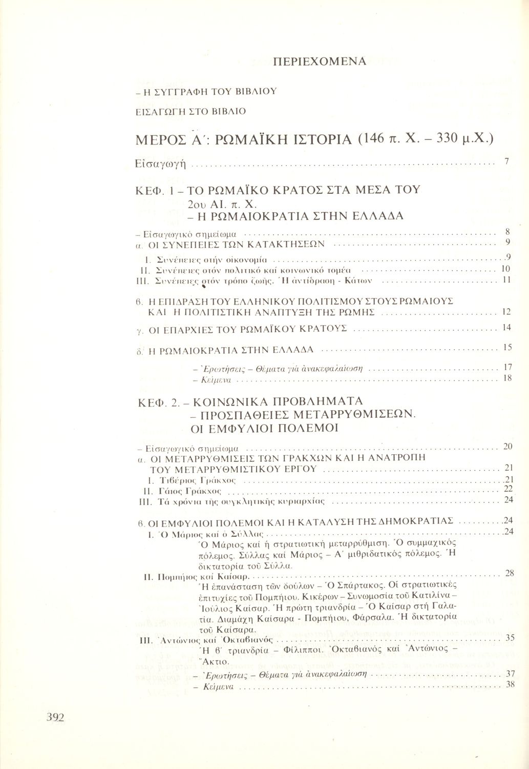 Σχολικό εγχειρίδιο Ιστορίας Β΄ Γυμνασίου που καλύπτει την περίοδο από την κατάληψη της Ελλάδας από τους Ρωμαίους ως την πτώση της Βυζαντινής Αυτοκρατορίας.
