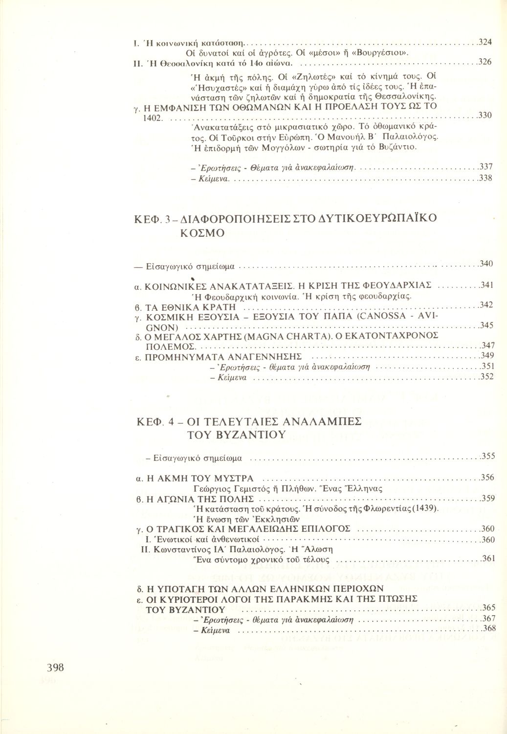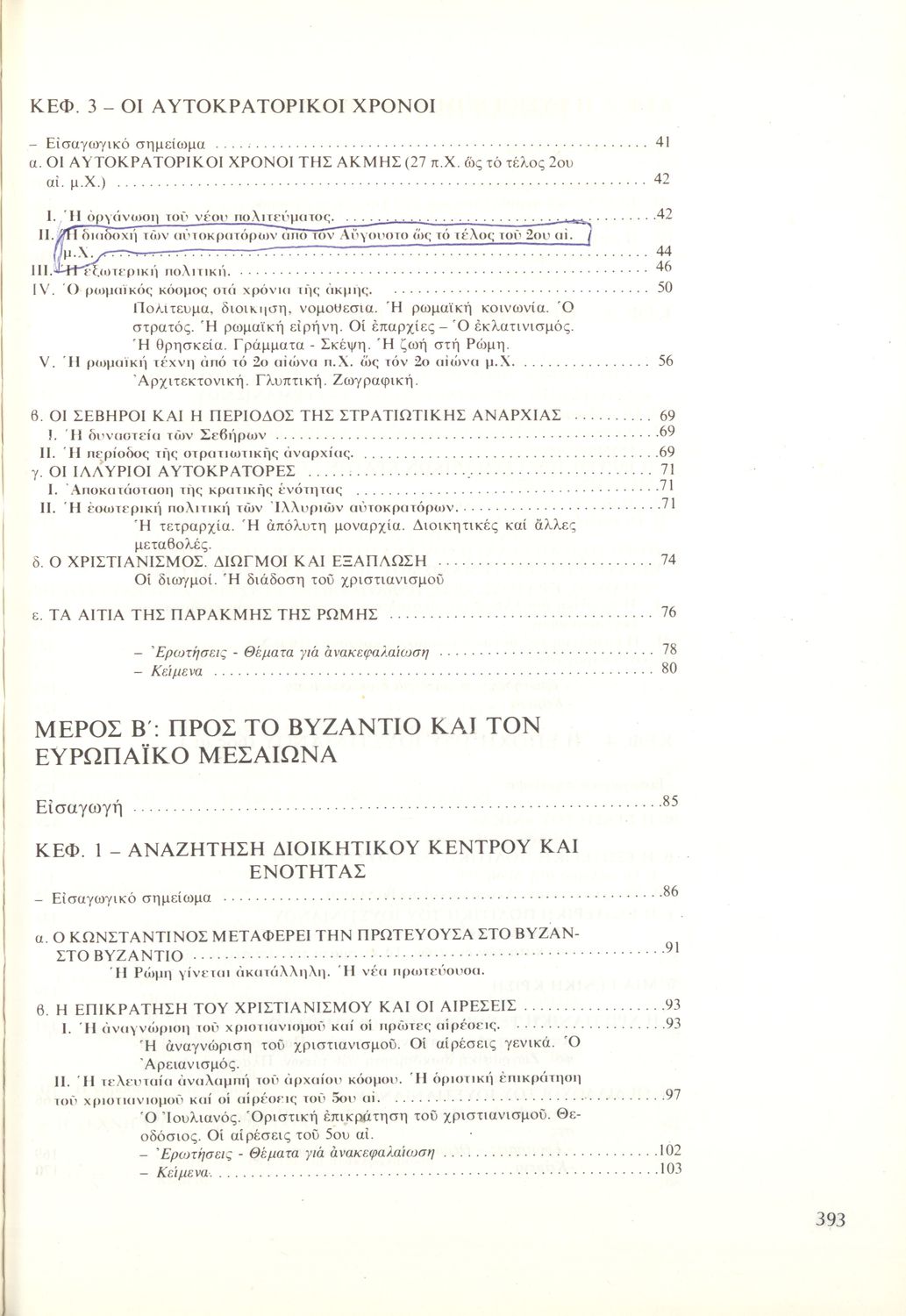 Σχολικό εγχειρίδιο Ιστορίας Β΄ και Ε΄ Γυμνασίου που καλύπτει την περίοδο από την άνοδο του Μ. Κωνσταντίνου στο θρόνο μέχρι και την άλωση της Κωνσταντινούπολης. Παρουσιάζει και τα πνευματικά και καλλιτεχνικά ...