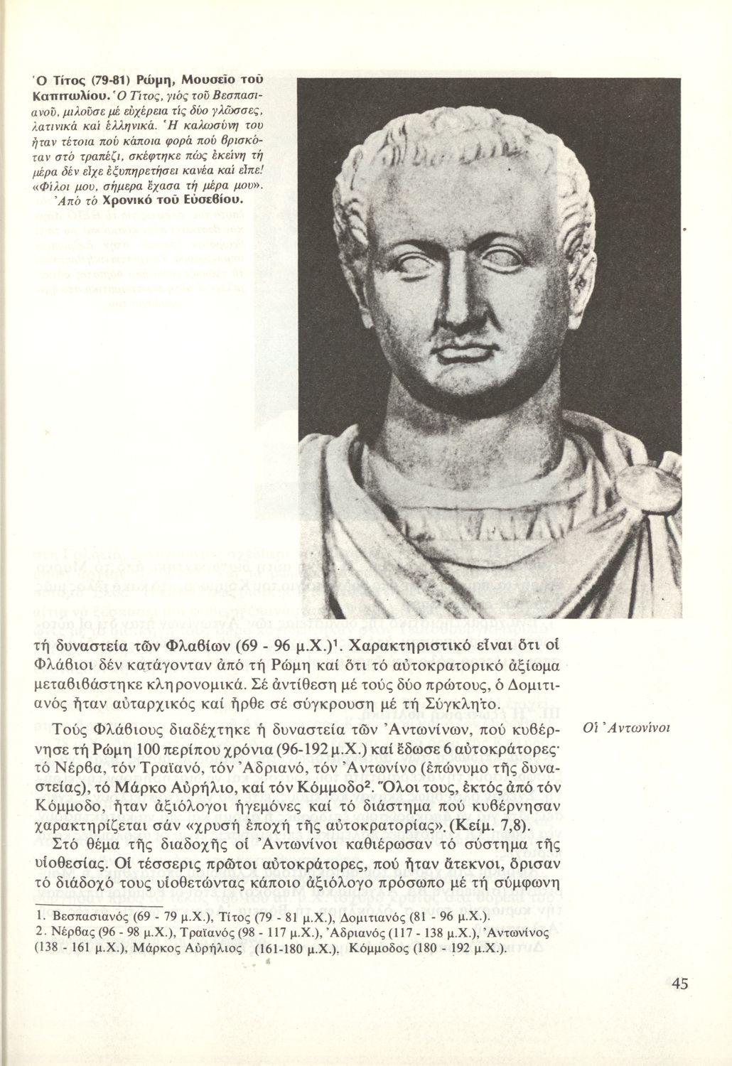 Σχολικό εγχειρίδιο Ιστορίας Β΄ Γυμνασίου που καλύπτει την περίοδο από την κατάληψη της Ελλάδας από τους Ρωμαίους ως την πτώση της Βυζαντινής Αυτοκρατορίας.