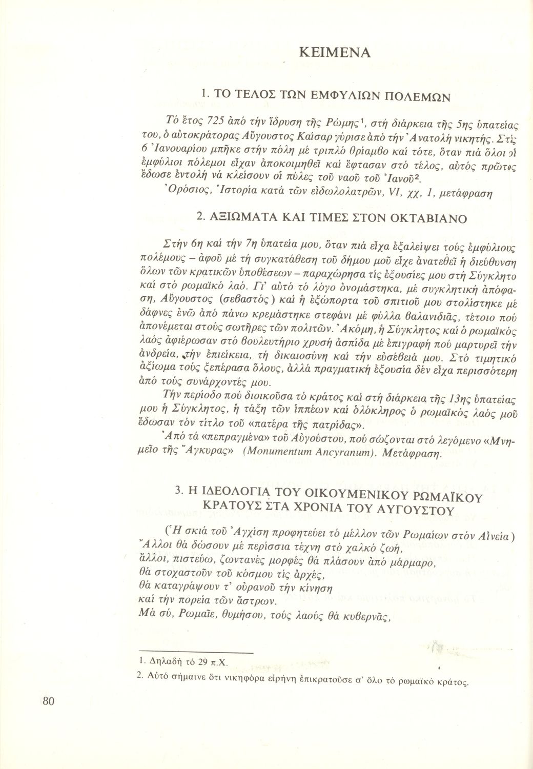 Σχολικό εγχειρίδιο Ιστορίας Β΄ Γυμνασίου που καλύπτει την περίοδο από την κατάληψη της Ελλάδας από τους Ρωμαίους ως την πτώση της Βυζαντινής Αυτοκρατορίας.