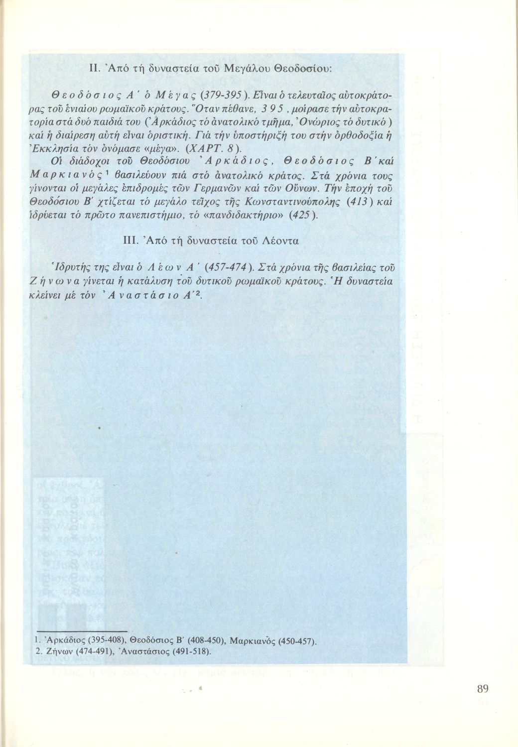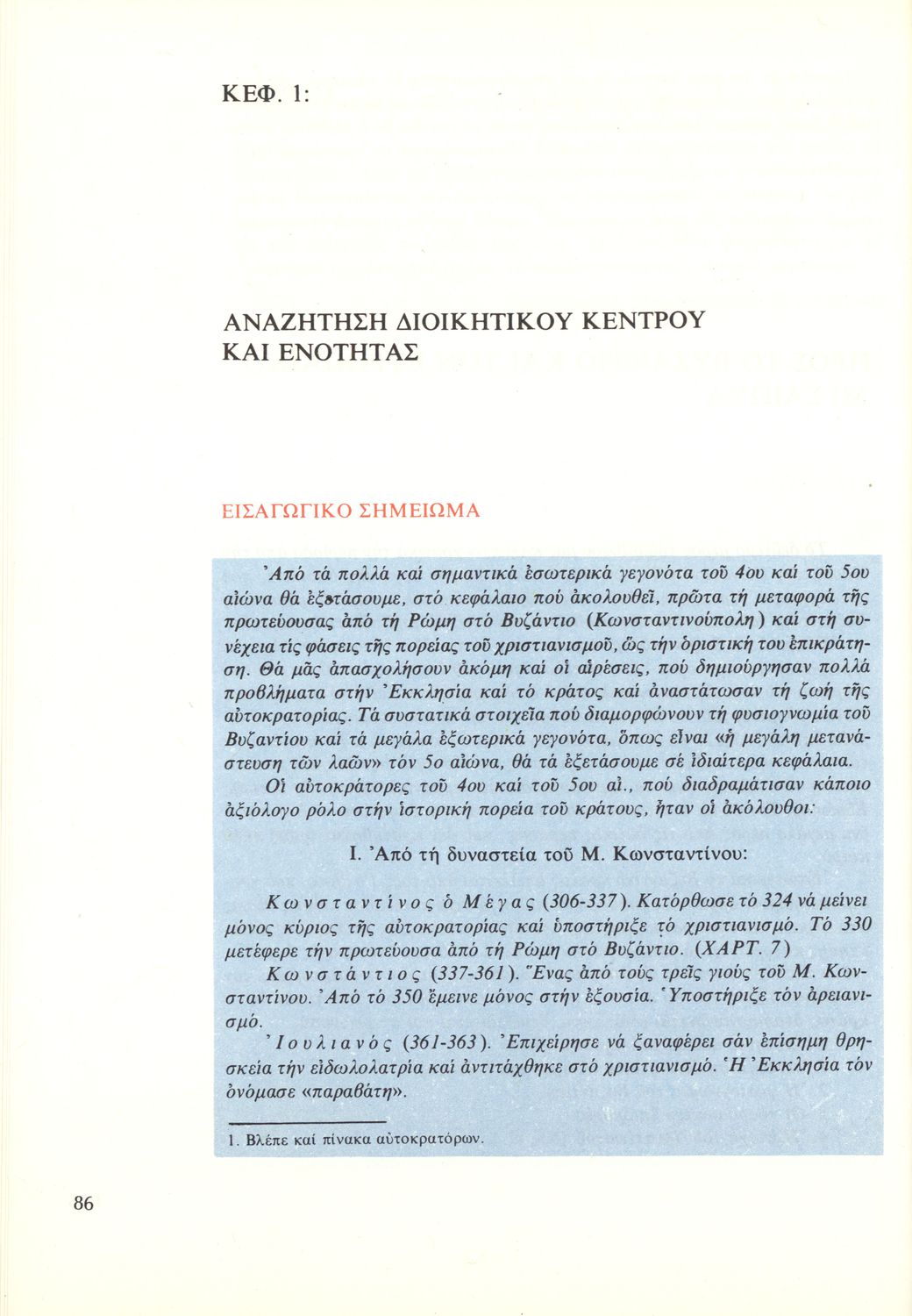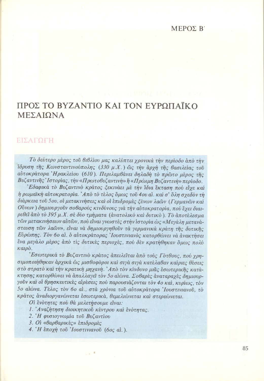 Σχολικό εγχειρίδιο Ιστορίας Β΄ και Ε΄ Γυμνασίου που καλύπτει την περίοδο από την άνοδο του Μ. Κωνσταντίνου στο θρόνο μέχρι και την άλωση της Κωνσταντινούπολης. Παρουσιάζει και τα πνευματικά και καλλιτεχνικά ...