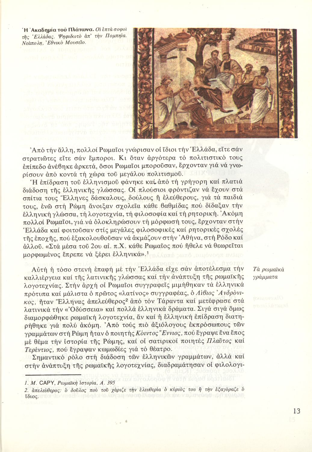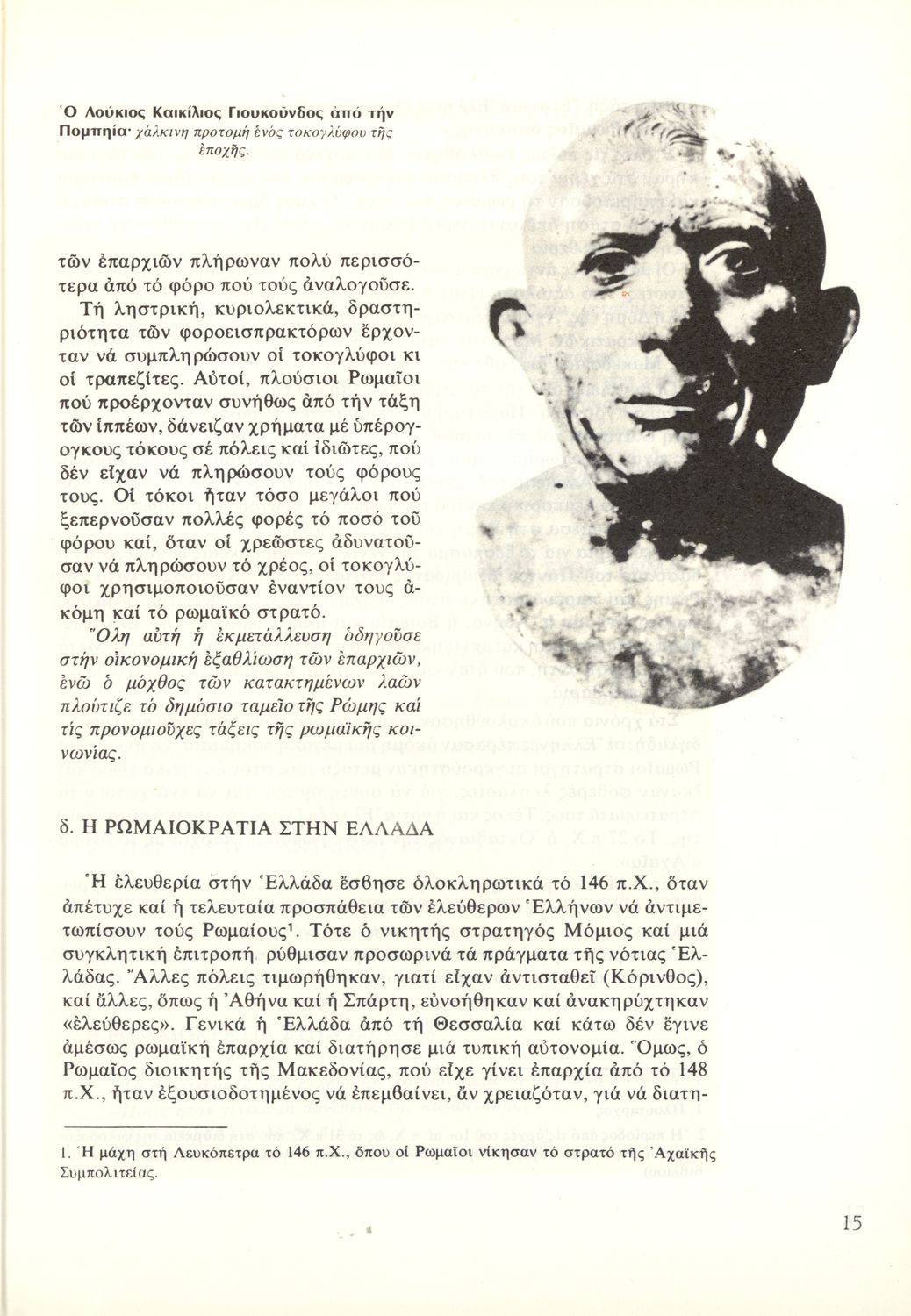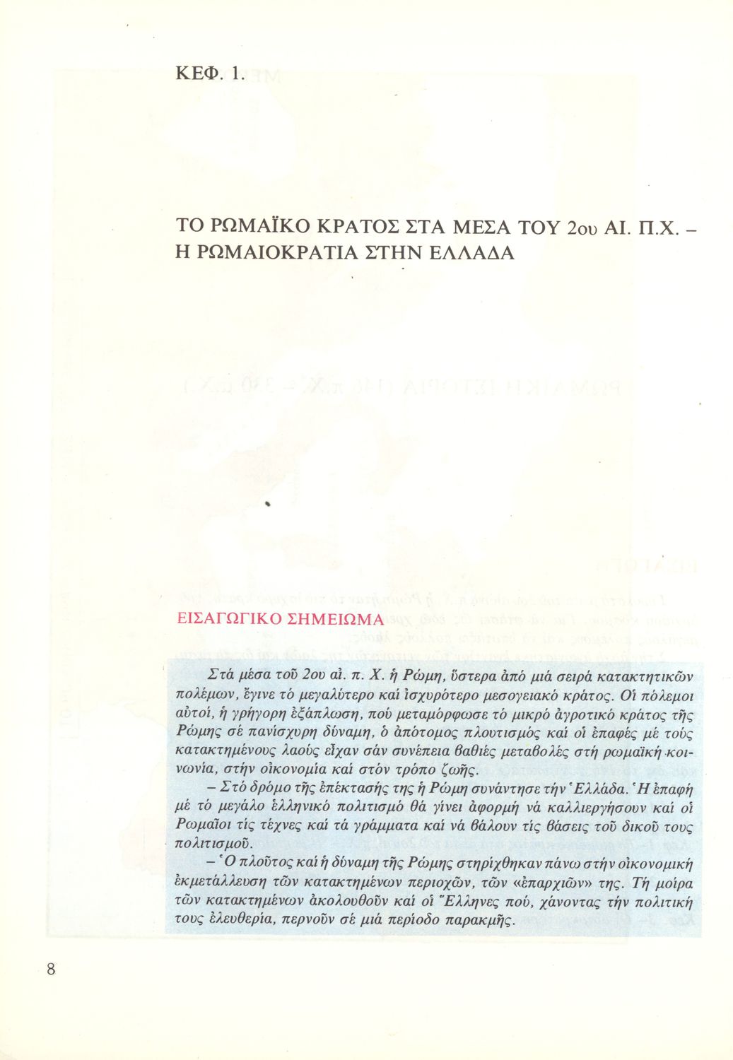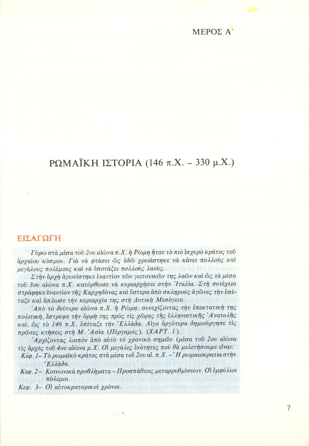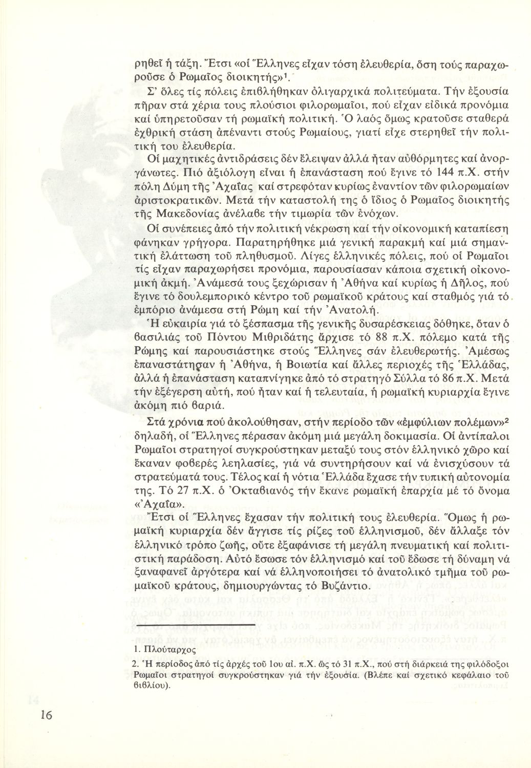 Σχολικό εγχειρίδιο Ιστορίας Β΄ Γυμνασίου που καλύπτει την περίοδο από την κατάληψη της Ελλάδας από τους Ρωμαίους ως την πτώση της Βυζαντινής Αυτοκρατορίας.