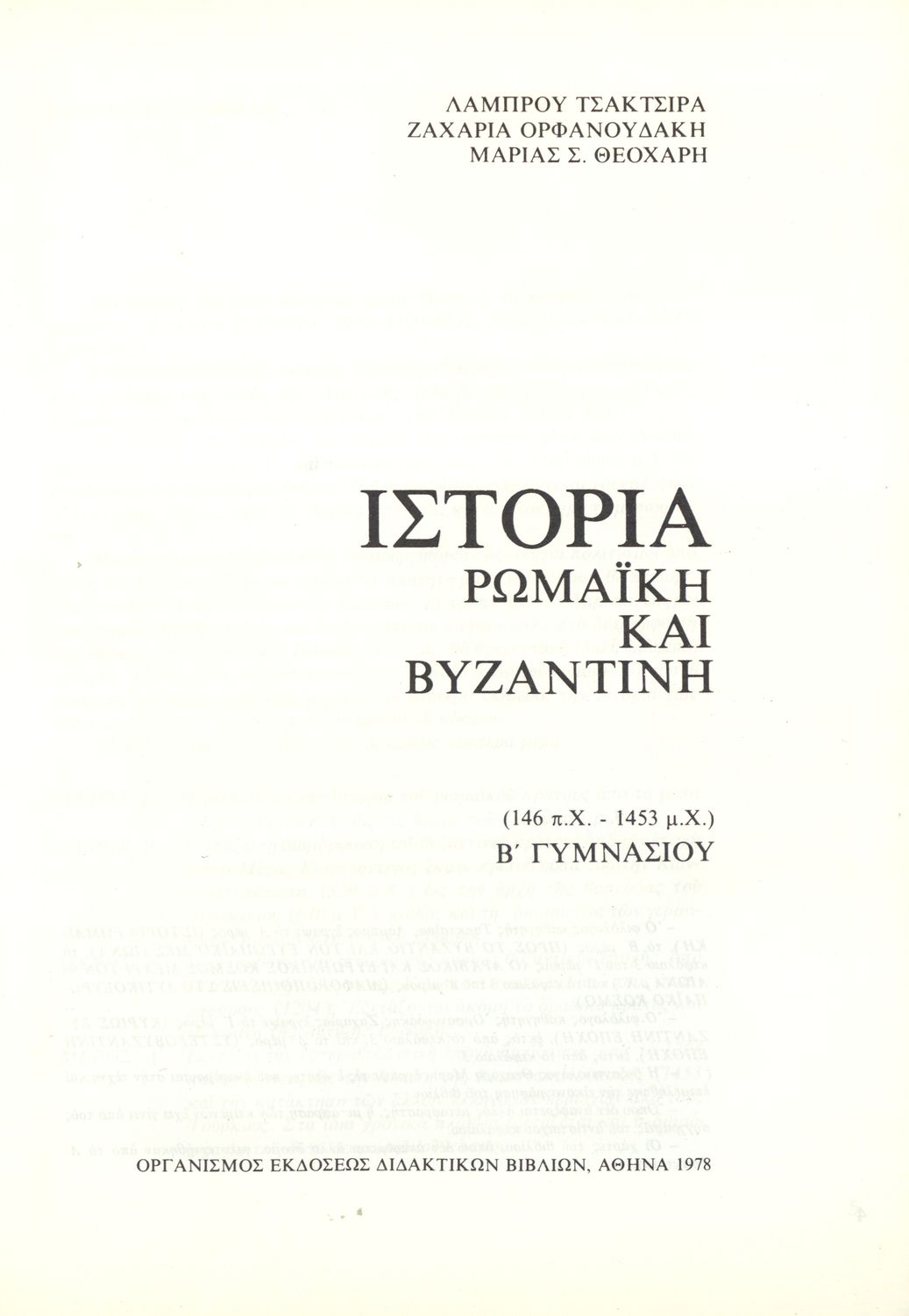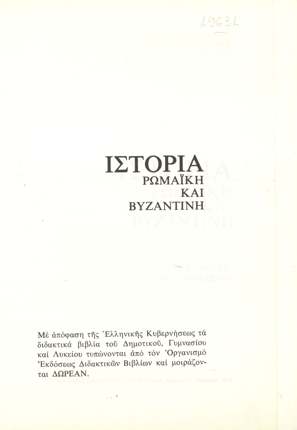 Τίτλος: Ιστορία Ρωμαϊκή και Βυζαντινή Β΄ Γυμνασίου