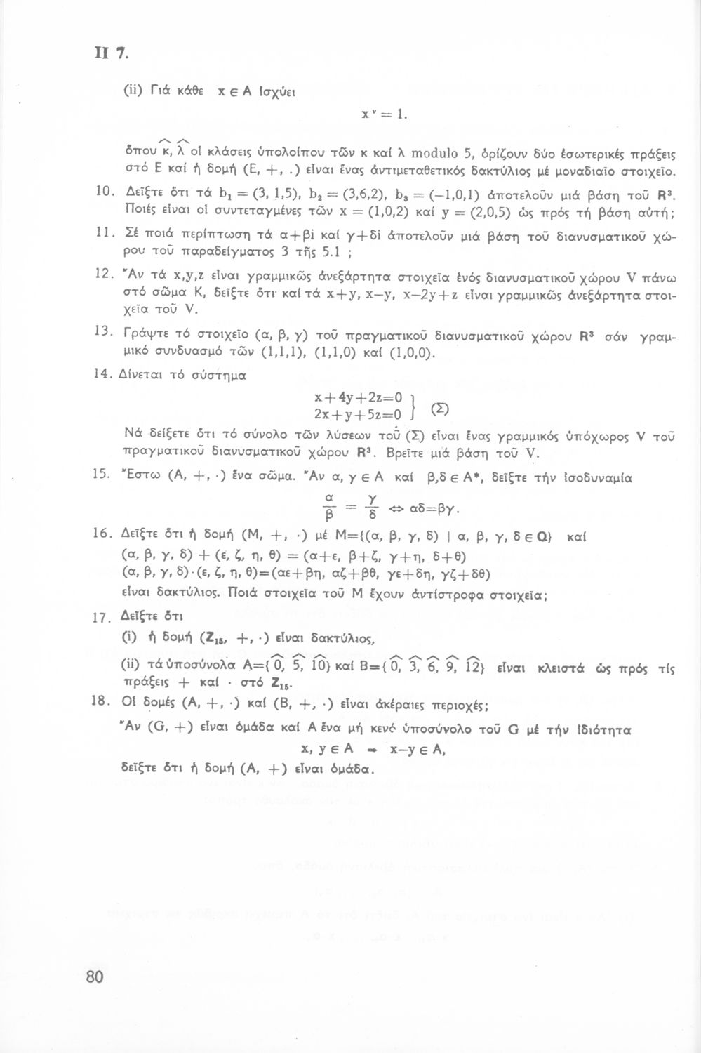 Σχολικό εγχειρίδιο Άλγεβρας Β΄ Λυκείου χωρισμένο σε θεωρία, παρατηρήσεις και ασκήσεις που περιλαμβάνει και στοιχεία από το Διανυσματικό Λογισμό και την Αναλυτική Γεωμετρία που έχουν συγγραφεί από τον Ιωάννη ...