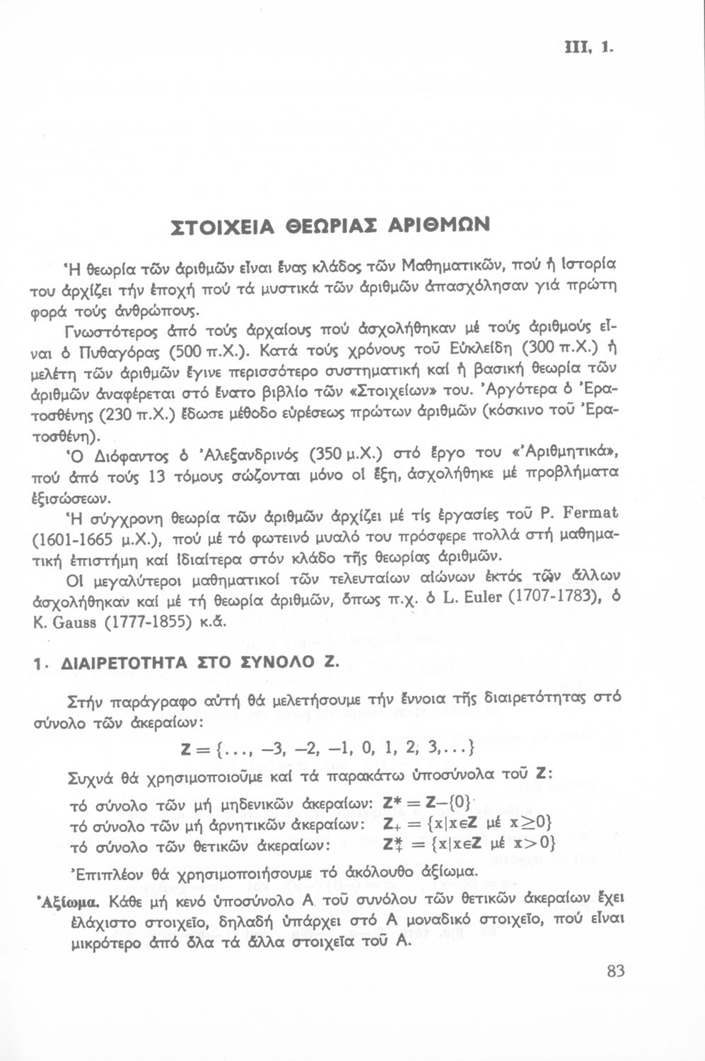 Σχολικό εγχειρίδιο Μαθηματικών Γ΄ Λυκείου που είναι χωρισμένο σε θεωρήματα, παραδείγματα και ασκήσεις και περιλαμβάνει στοιχεία Ανώτερης Άλγεβρας και Μαθηματικής Ανάλυσης.