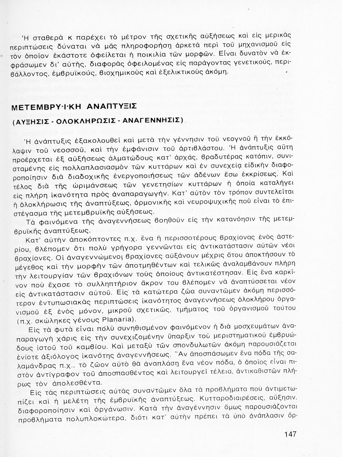 Σχολικό εγχειρίδιο Βιολογίας ΣΤ΄ Γυμνασίου που εστιάζει στις συνθήκες γέννησης, μεταβολής και θανάτου των έμβιων οργανισμών. Ο συγγραφέας ήταν υφηγητής του Πανεπιστημίου Αθηνών.