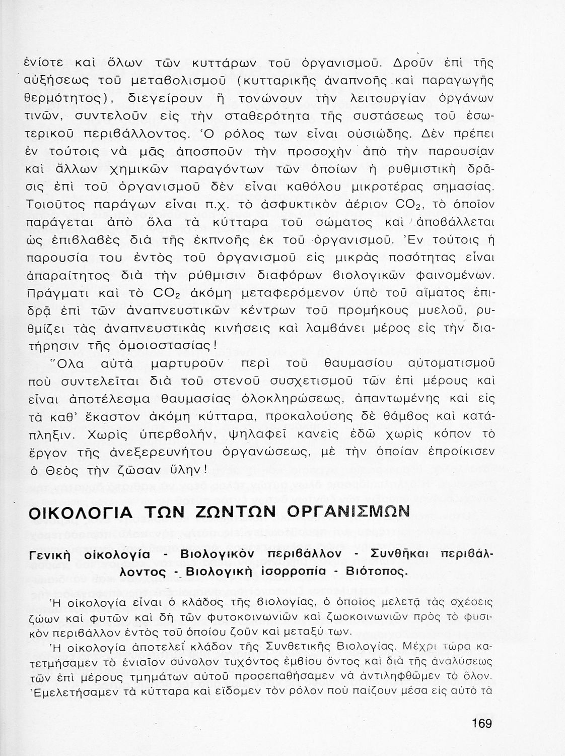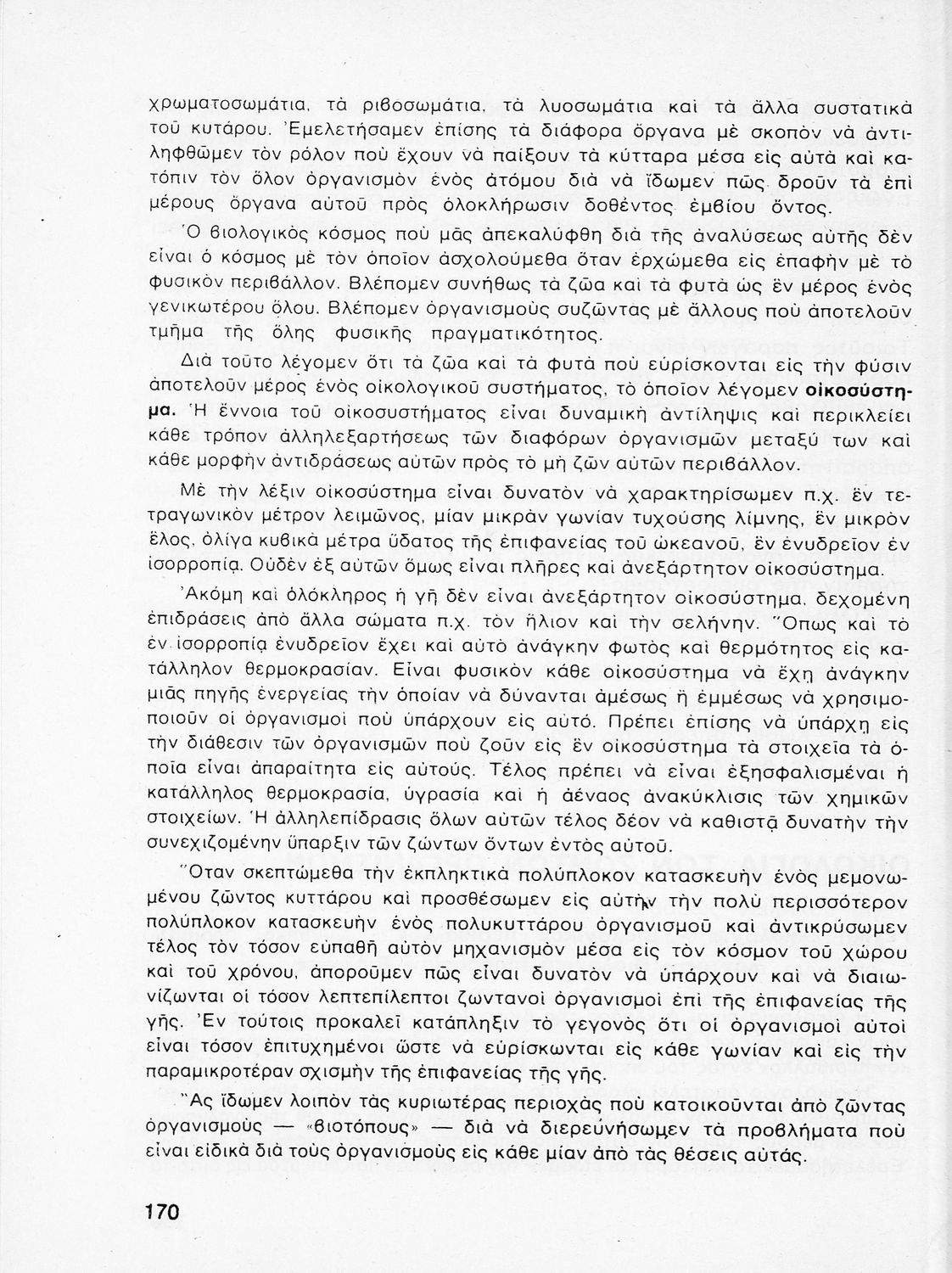 Σχολικό εγχειρίδιο Βιολογίας Δ΄ Γυμνασίου που εστιάζει στις συνθήκες γέννησης, μεταβολής και θανάτου των έμβιων οργανισμών. Ο συγγραφέας ήταν καθηγητής της γενικής Βιολογίας στο Πανεπιστήμιο Αθηνών.