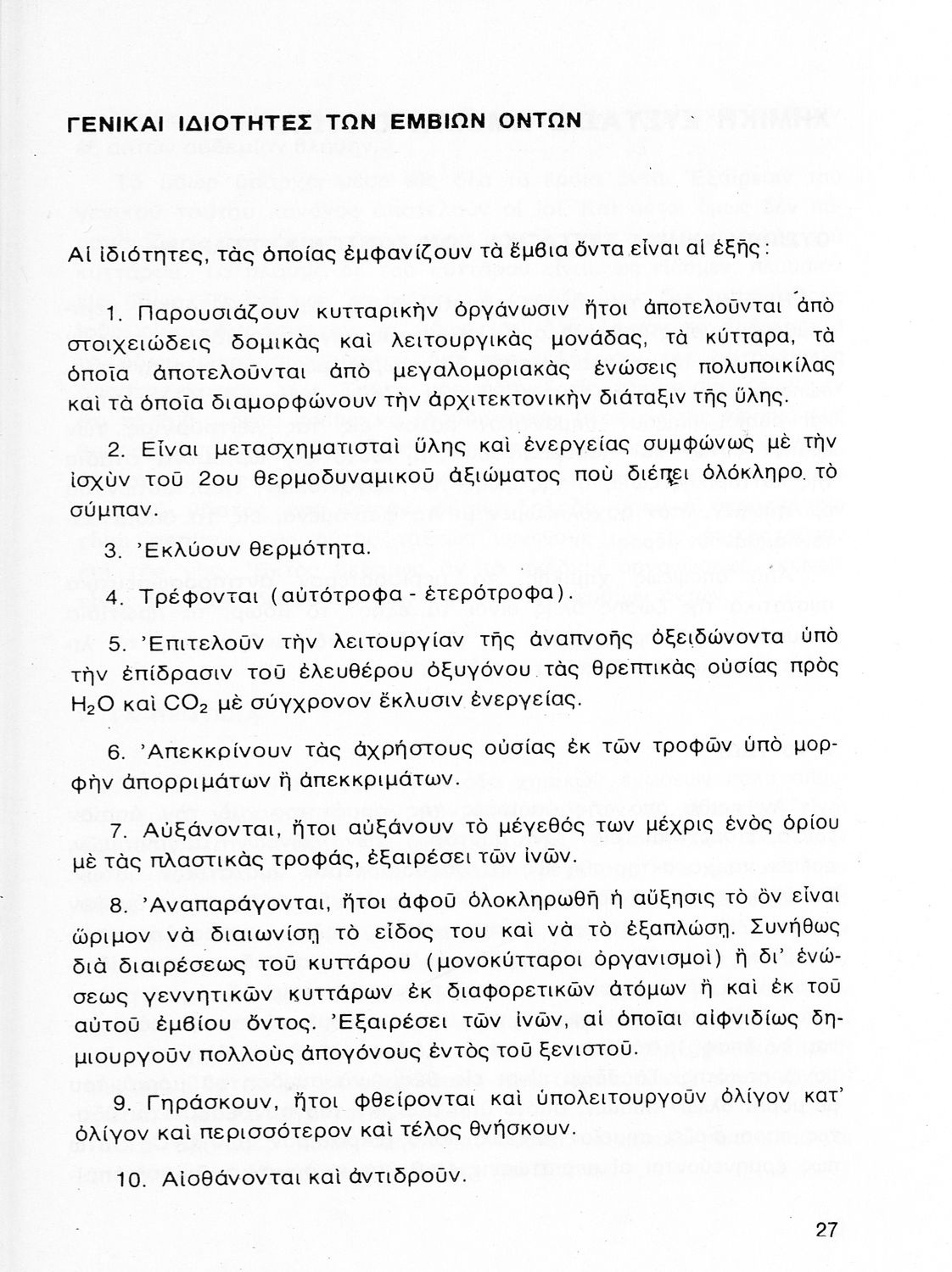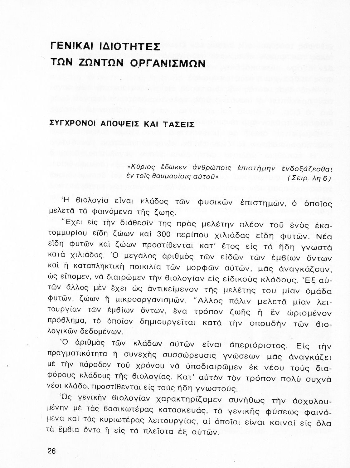 Σχολικό εγχειρίδιο Βιολογίας Δ΄ Γυμνασίου που εστιάζει στις συνθήκες γέννησης, μεταβολής και θανάτου των έμβιων οργανισμών. Ο συγγραφέας ήταν καθηγητής της γενικής Βιολογίας στο Πανεπιστήμιο Αθηνών.