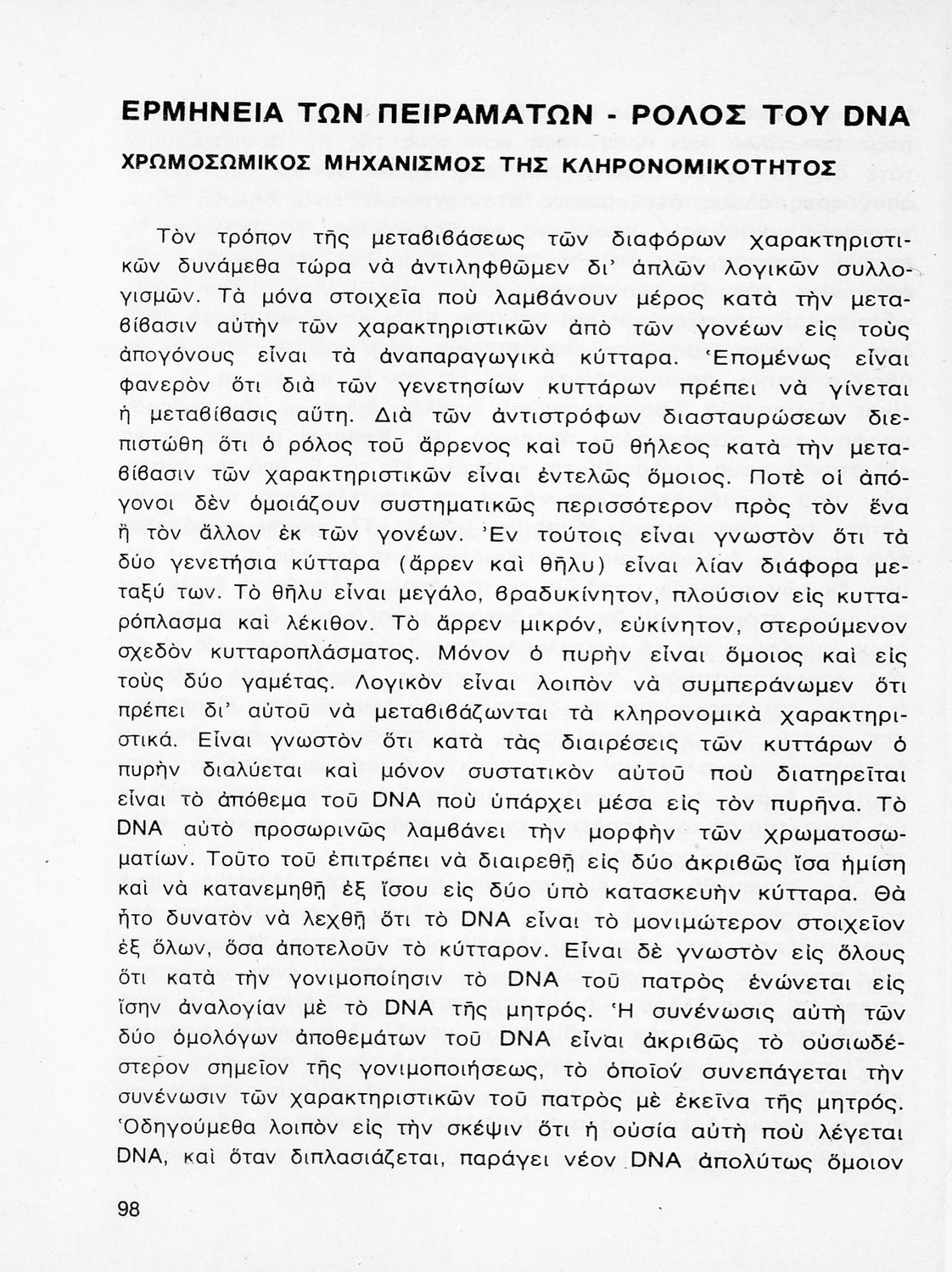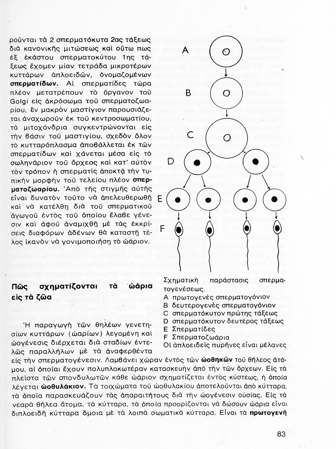 Σχολικό εγχειρίδιο Βιολογίας Δ΄ Γυμνασίου που εστιάζει στις συνθήκες γέννησης, μεταβολής και θανάτου των έμβιων οργανισμών. Ο συγγραφέας ήταν καθηγητής της γενικής Βιολογίας στο Πανεπιστήμιο Αθηνών.