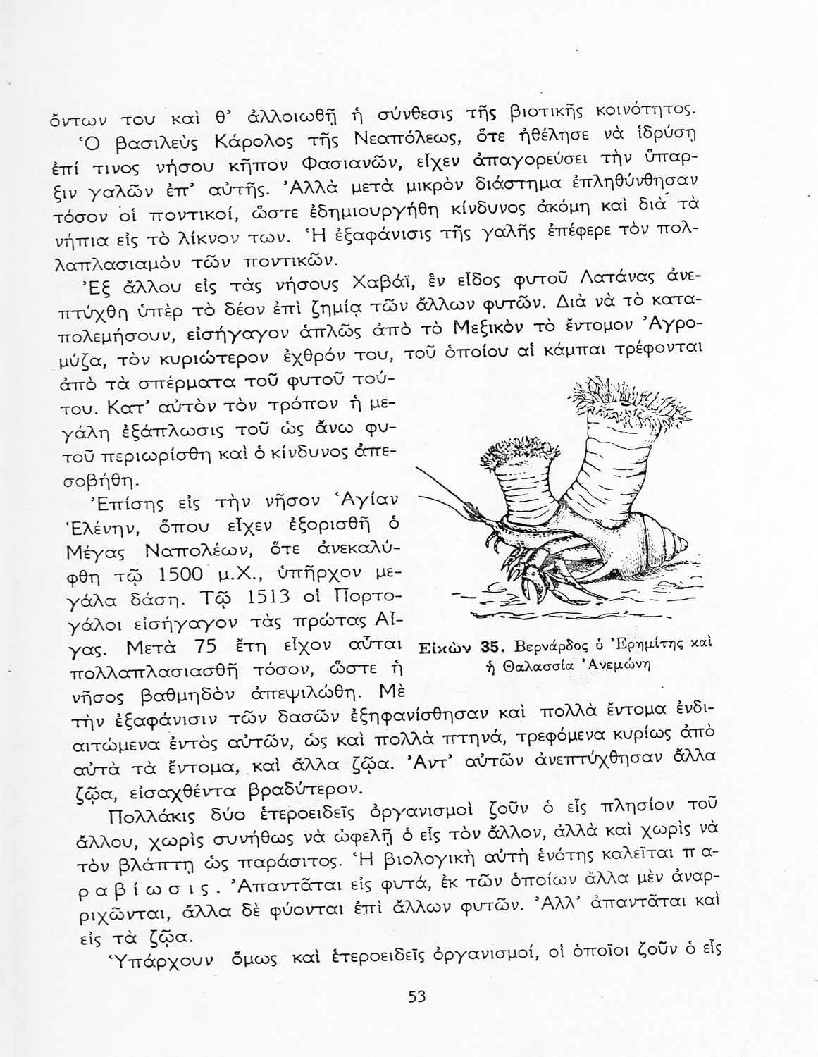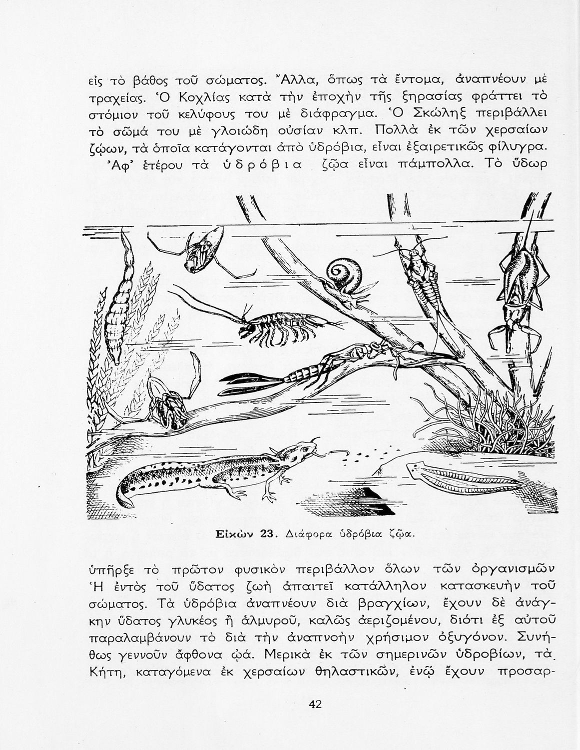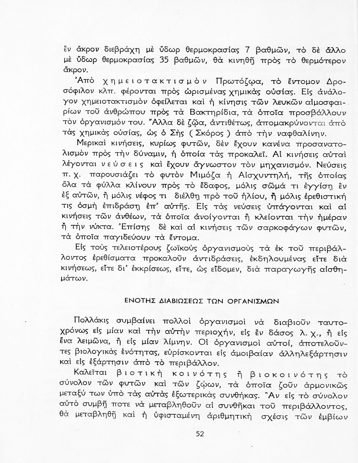 Σχολικό εγχειρίδιο Βιολογίας που εστιάζει στις συνθήκες γέννησης, μεταβολής και θανάτου των έμβιων οργανισμών. Φέρει το σύμβολο της δικτατορίας.