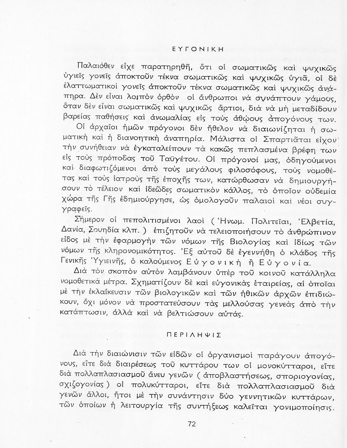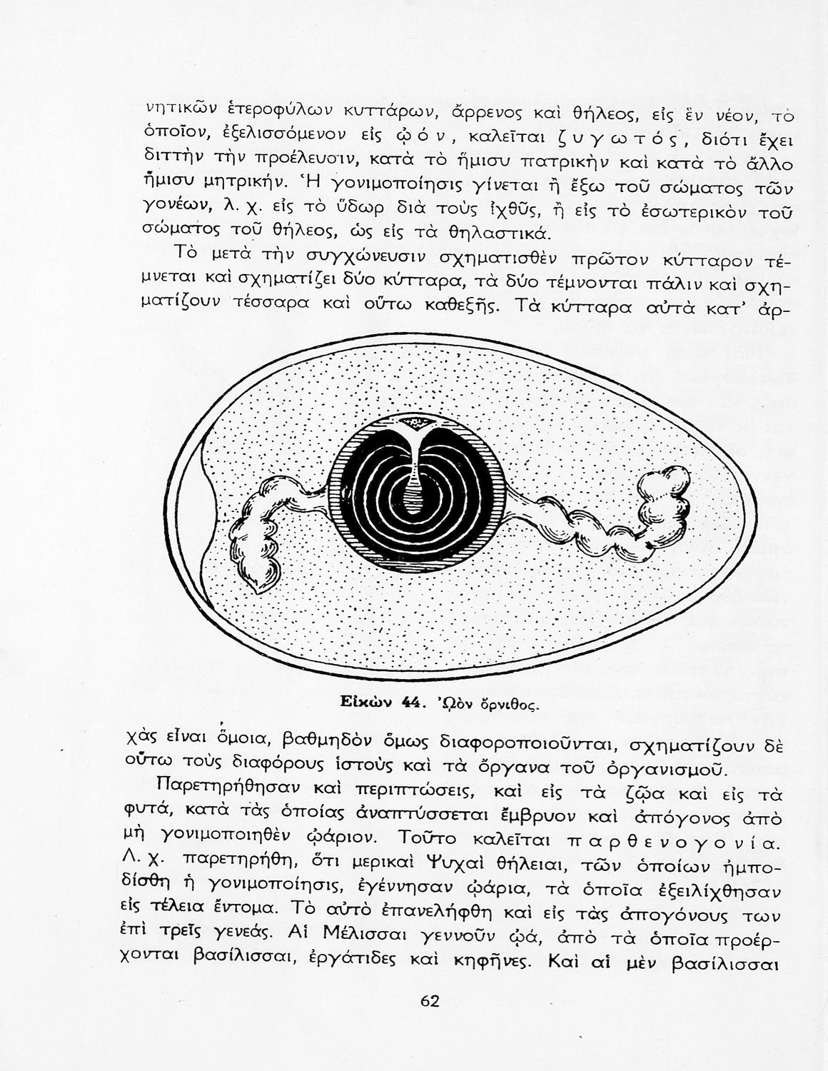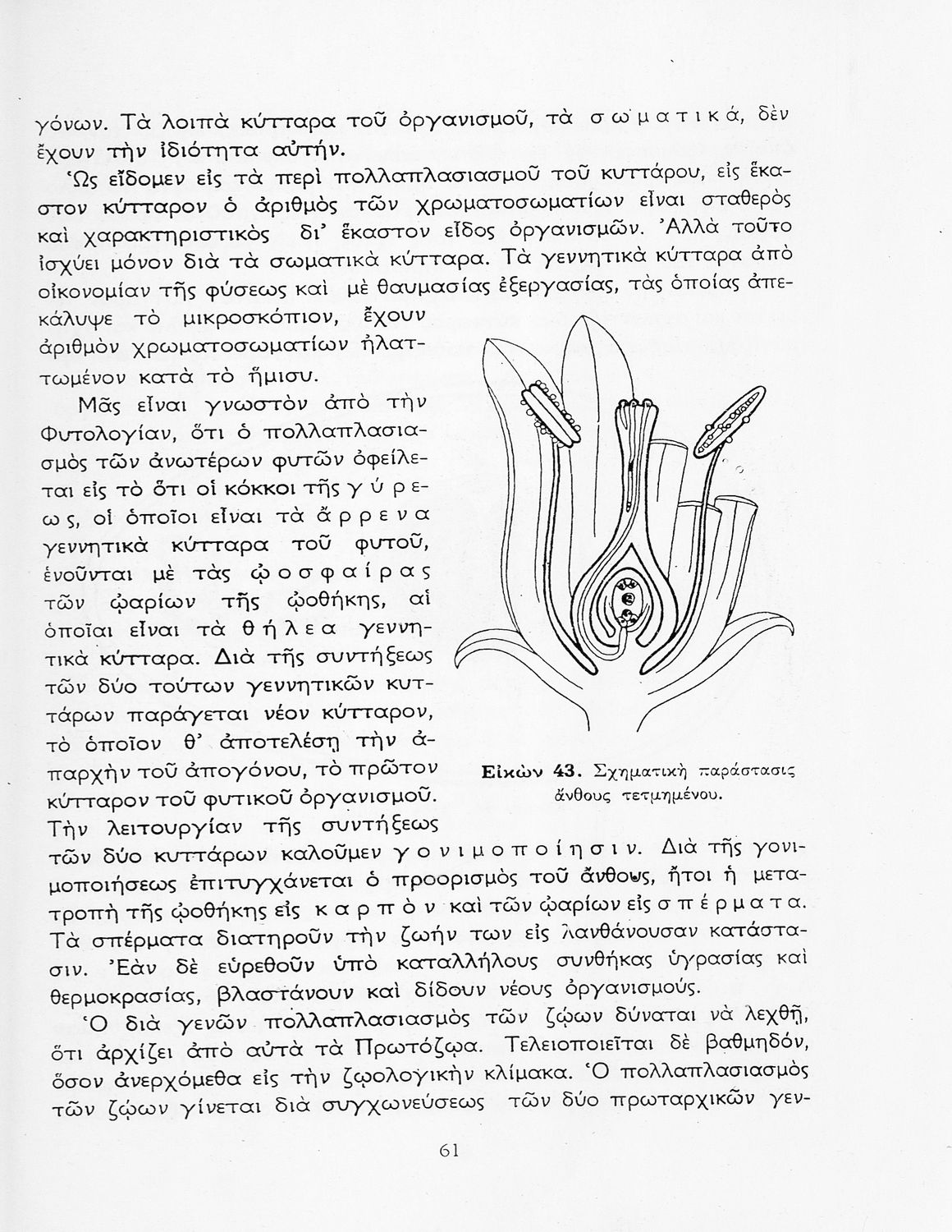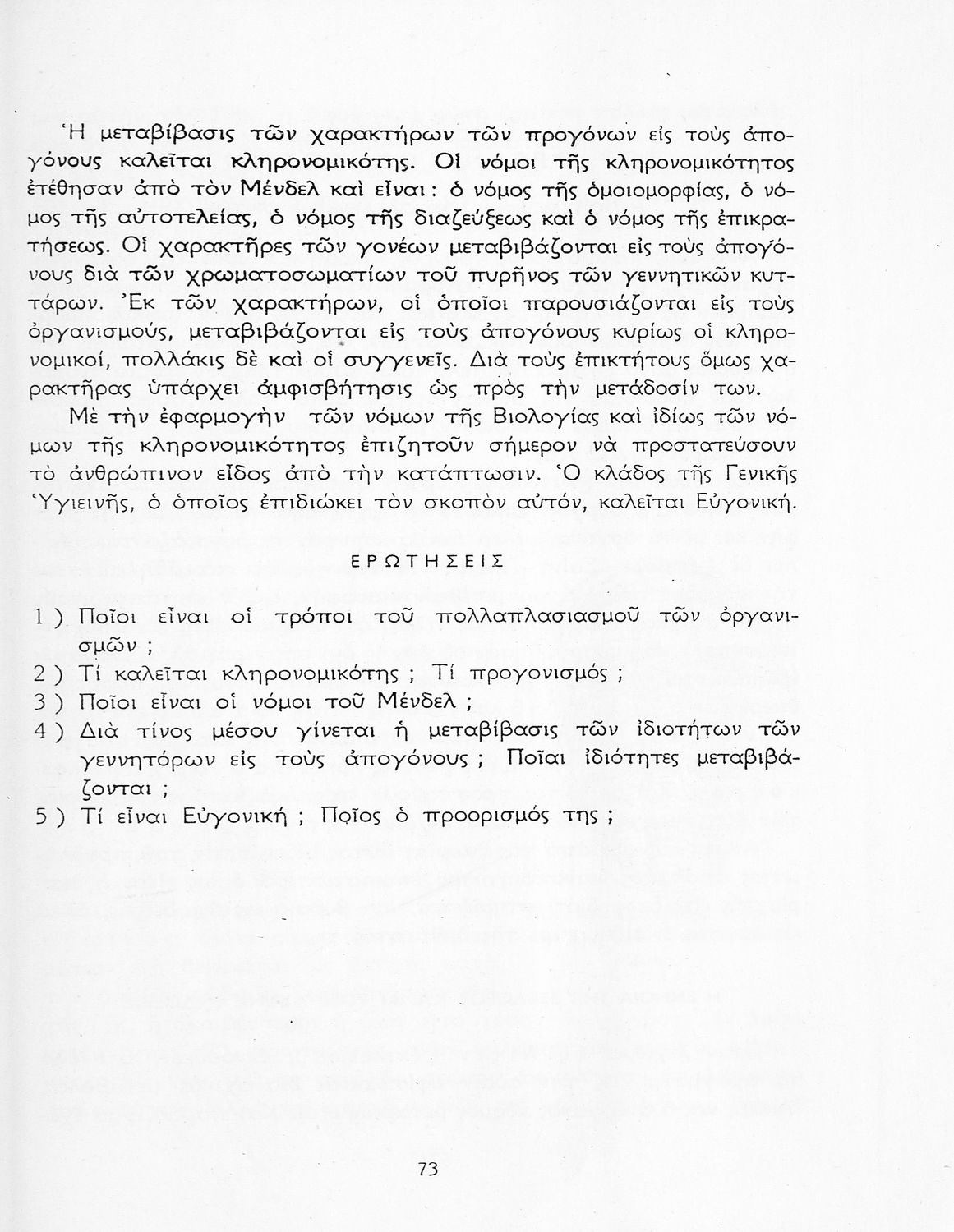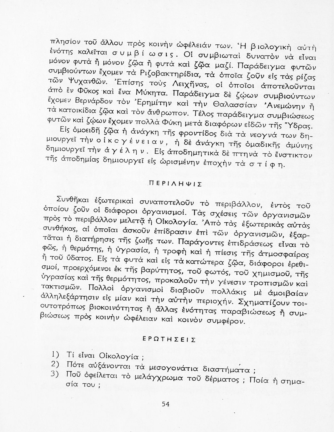 Παρουσίαση περιεχομένου: Σχολικό εγχειρίδιο Βιολογίας που εστιάζει στις συνθήκες γέννησης, μεταβολής και θανάτου των έμβιων οργανισμών. Φέρει το σύμβολο της δικτατορίας.