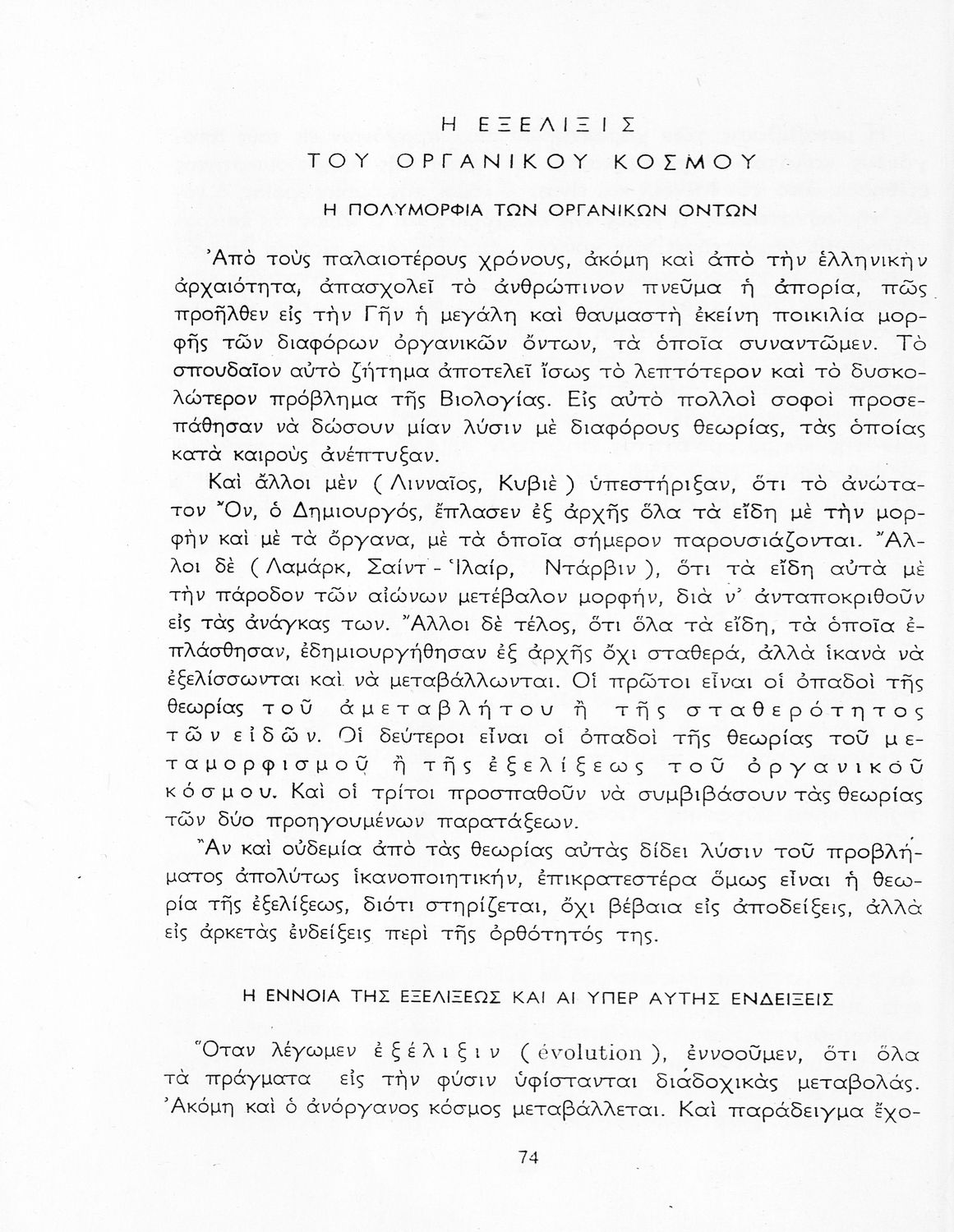 Σχολικό εγχειρίδιο Βιολογίας Δ΄ Γυμνασίου που εστιάζει στις συνθήκες γέννησης, μεταβολής και θανάτου των έμβιων οργανισμών. Ο συγγραφέας ήταν καθηγητής της γενικής Βιολογίας στο Πανεπιστήμιο Αθηνών.
