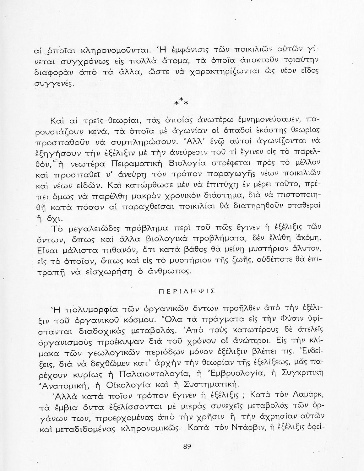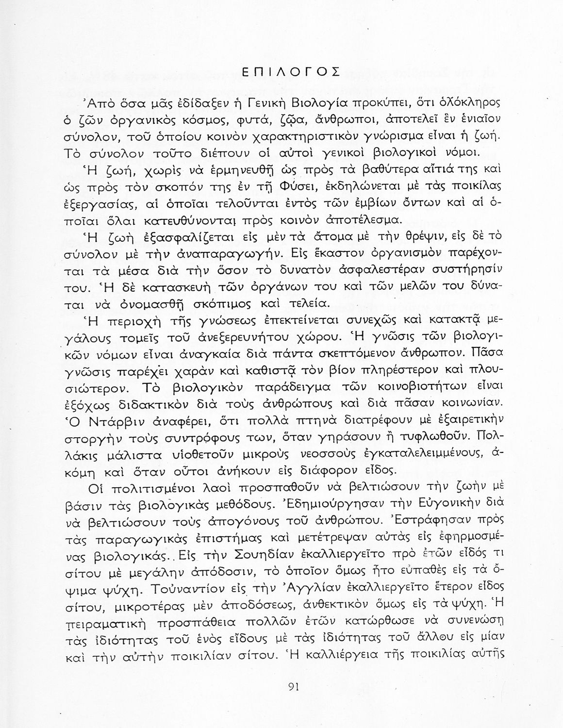 Σχολικό εγχειρίδιο Βιολογίας Δ΄ Γυμνασίου που εστιάζει στις συνθήκες γέννησης, μεταβολής και θανάτου των έμβιων οργανισμών. Ο συγγραφέας ήταν καθηγητής της γενικής Βιολογίας στο Πανεπιστήμιο Αθηνών.