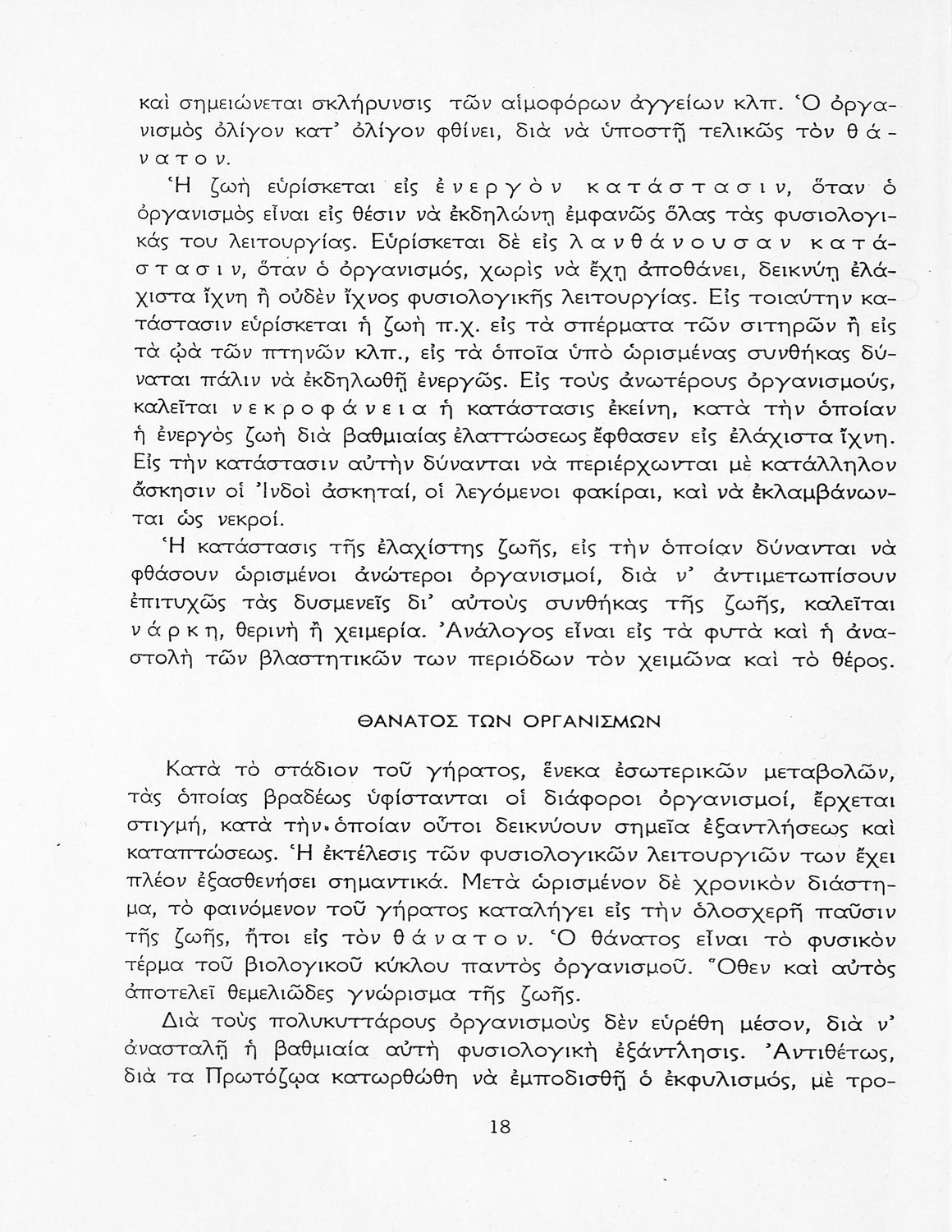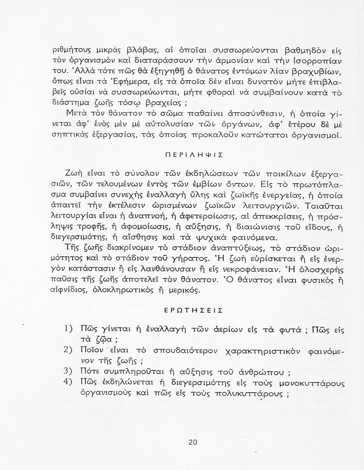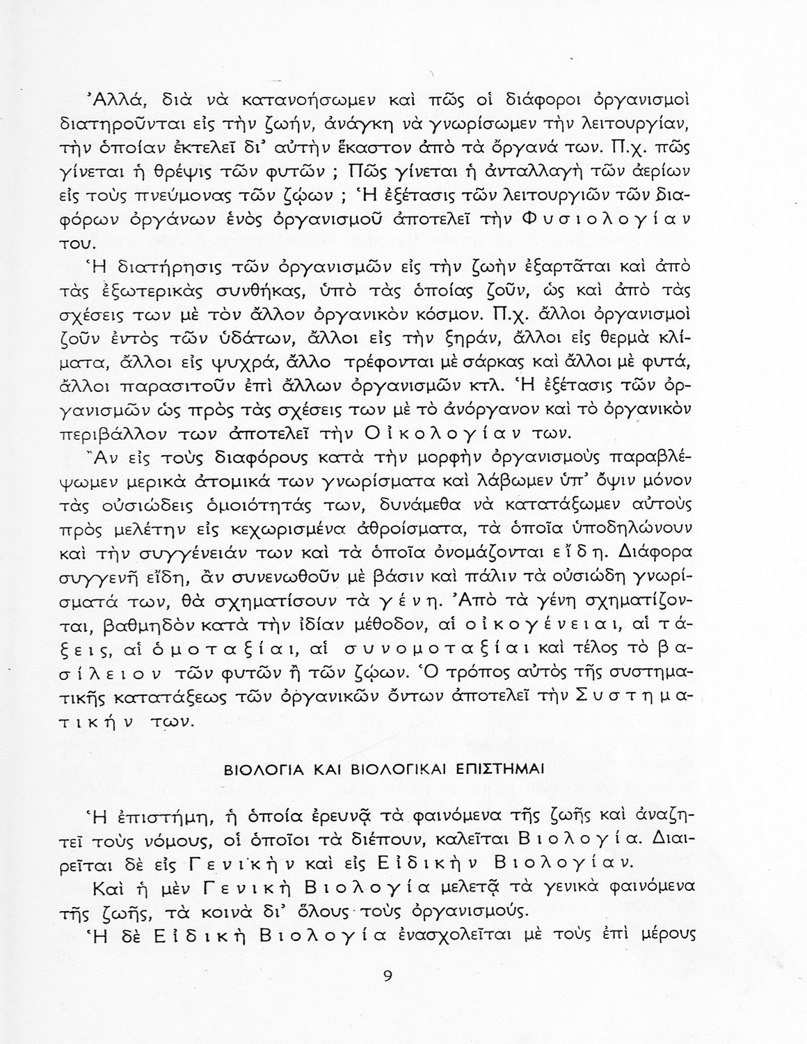 Βαθμίδα εκπαίδευσης: Δευτεροβάθμια Μάθημα: Βιολογία Γλώσσα: Απλή καθαρεύουσα Παρουσίαση περιεχομένου: Σχολικό εγχειρίδιο Βιολογίας που εστιάζει στις συνθήκες γέννησης, μεταβολής και θανάτου των έμβιων οργανισμών. Φέρει το σύμβολο της δικτατορίας. |