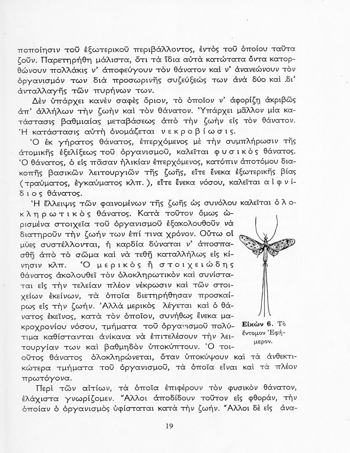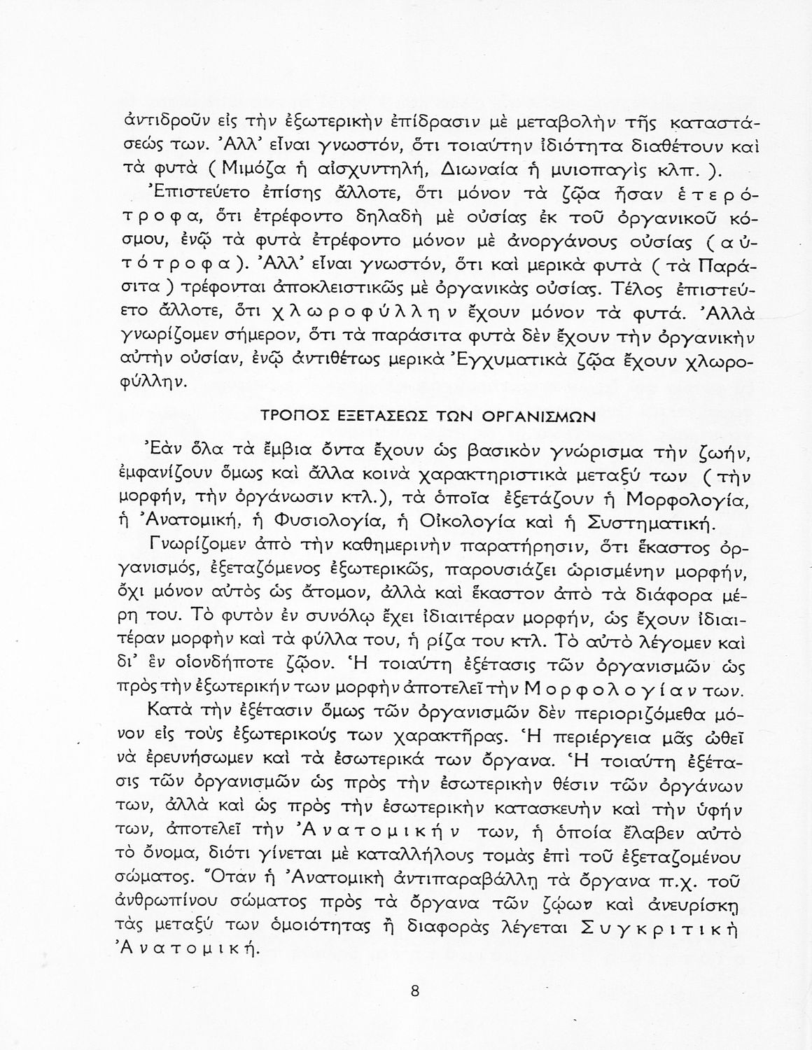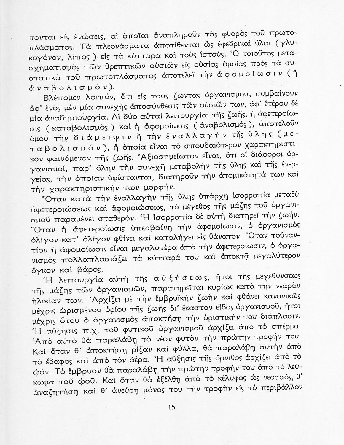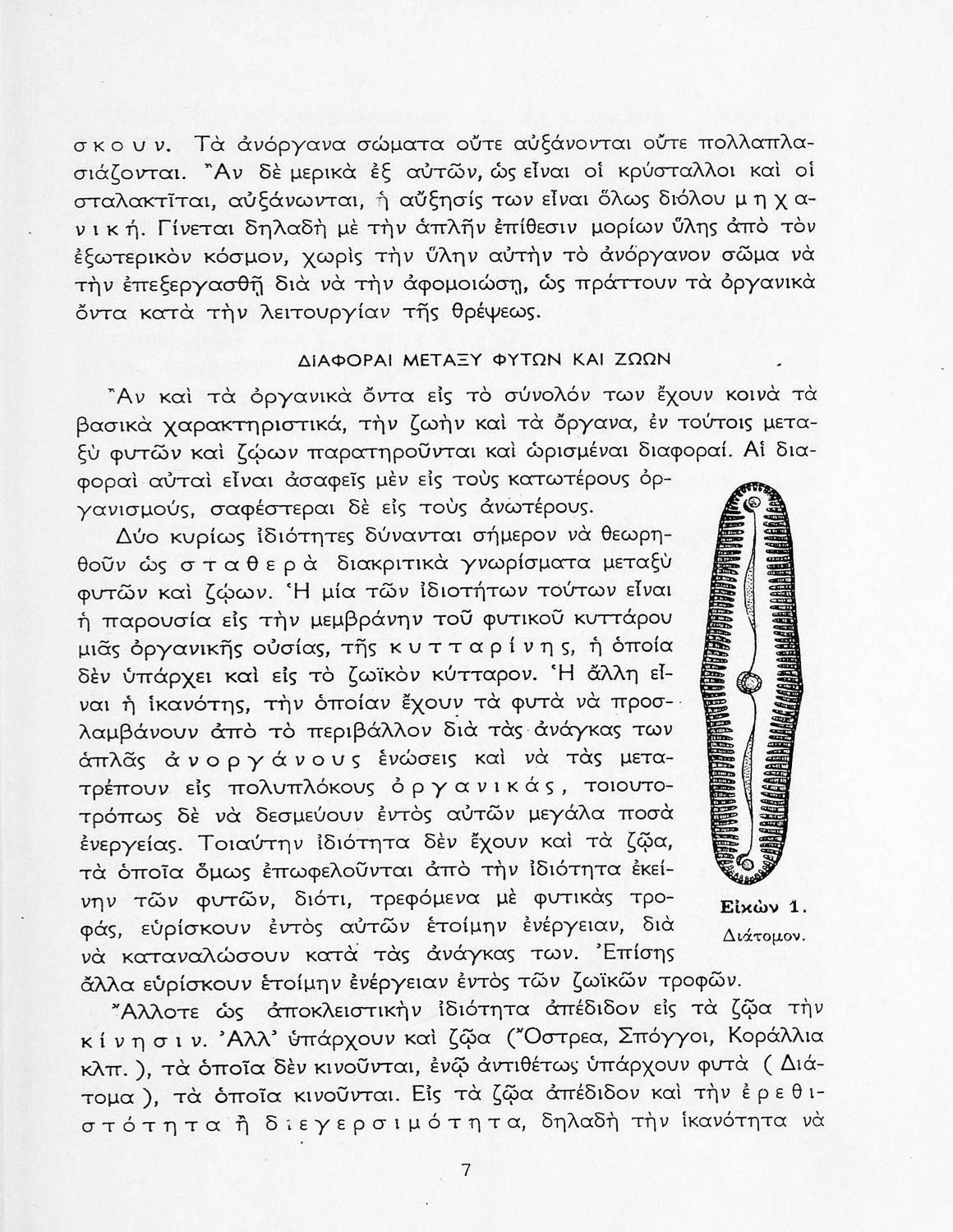 Σχολικό εγχειρίδιο Βιολογίας που εστιάζει στις συνθήκες γέννησης, μεταβολής και θανάτου των έμβιων οργανισμών. Φέρει το σύμβολο της δικτατορίας.