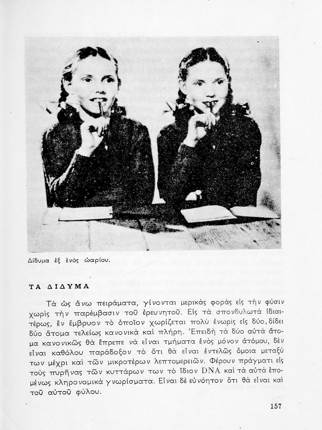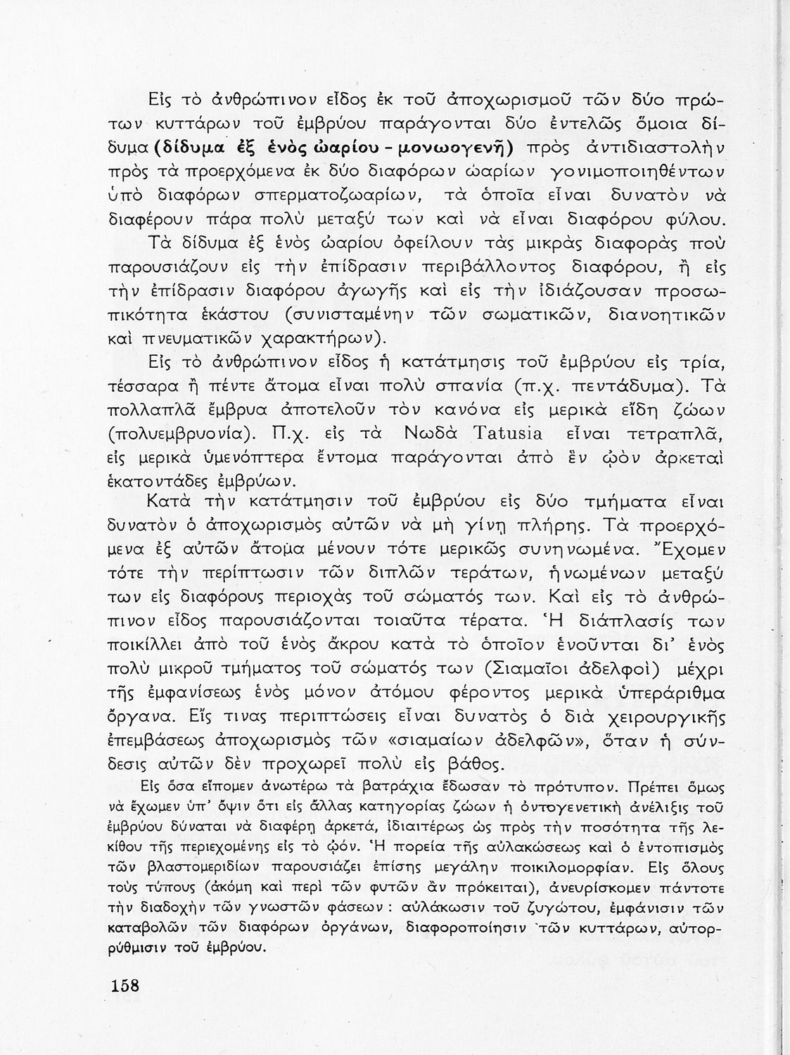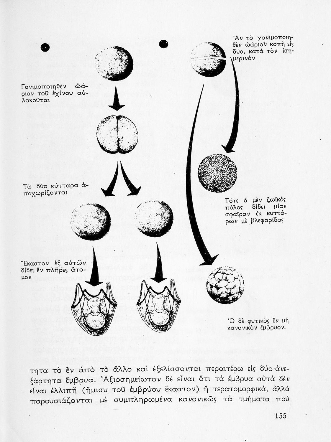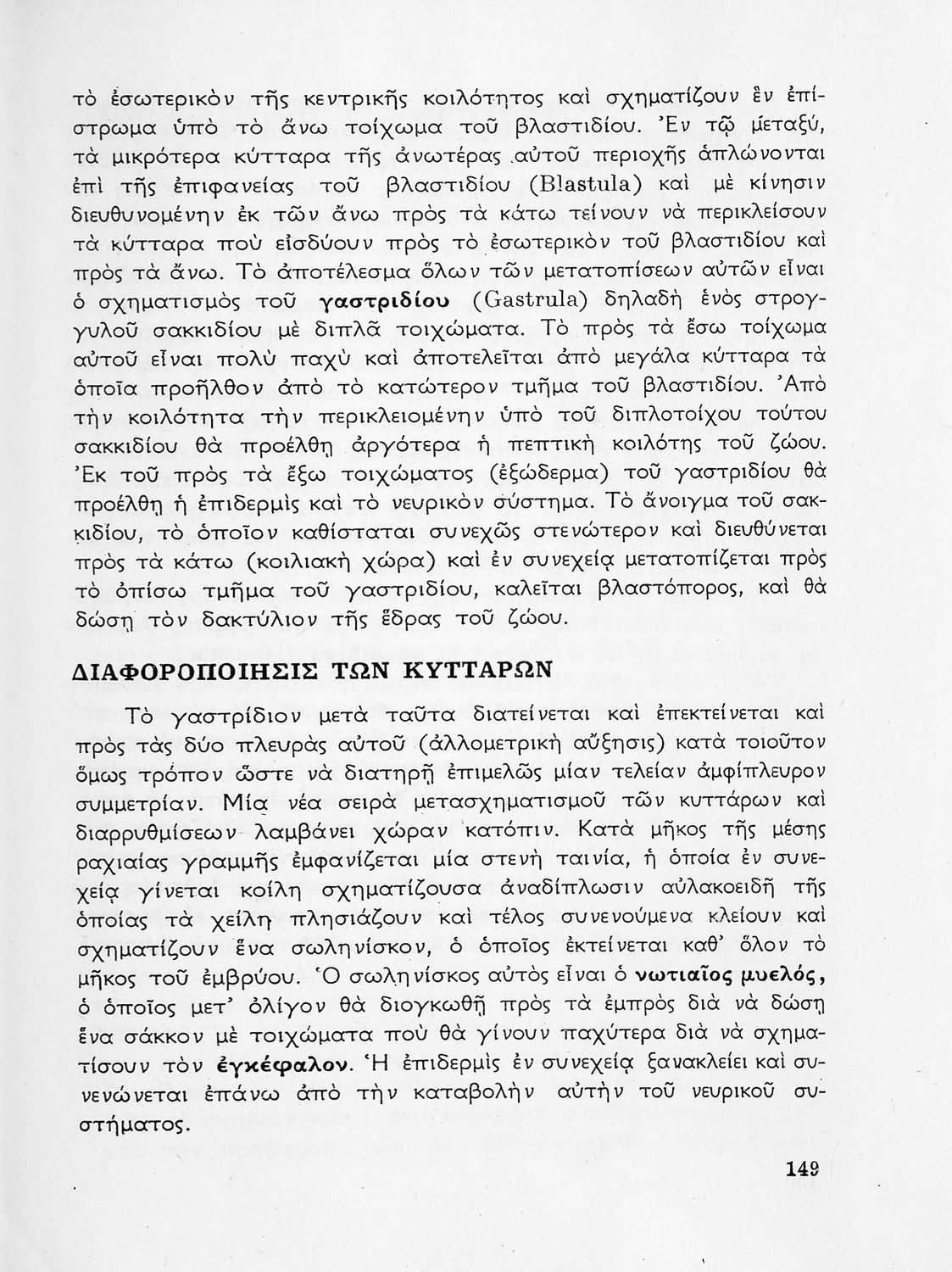 Σχολικό εγχειρίδιο Βιολογίας ΣΤ΄ Γυμνασίου που εστιάζει στις συνθήκες γέννησης, μεταβολής και θανάτου των έμβιων οργανισμών. Φέρει το σύμβολο της δικτατορίας. Ο συγγραφέας ήταν υφηγητής του Πανεπιστημίου Αθηνών.