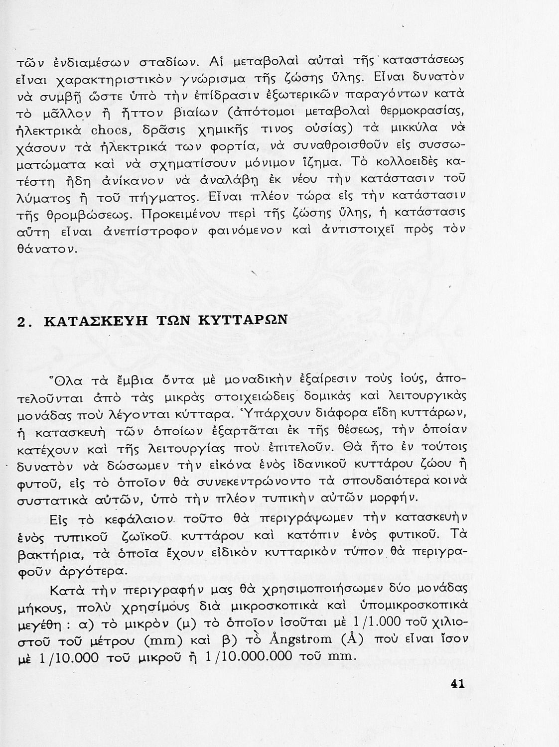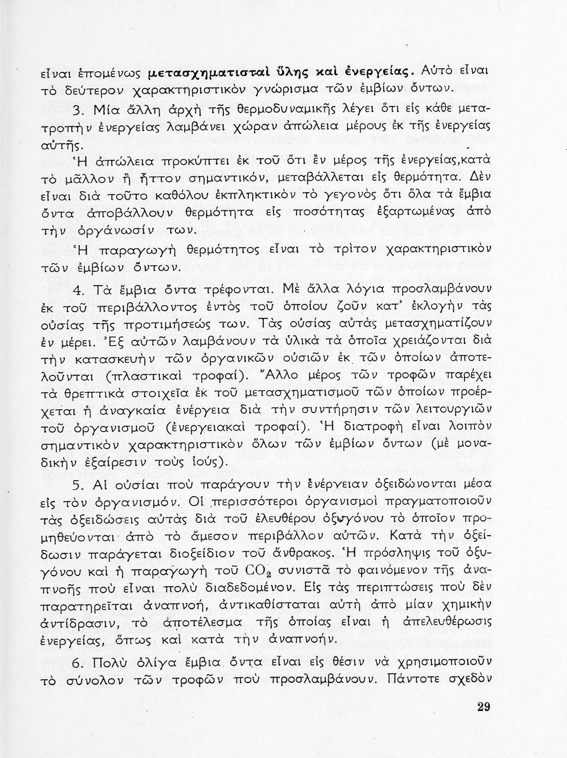 Παρουσίαση περιεχομένου: Σχολικό εγχειρίδιο Βιολογίας ΣΤ΄ Γυμνασίου που εστιάζει στις συνθήκες γέννησης, μεταβολής και θανάτου των έμβιων οργανισμών. Φέρει το σύμβολο της δικτατορίας. Ο συγγραφέας ήταν υφηγητής του Πανεπιστημίου Αθηνών.