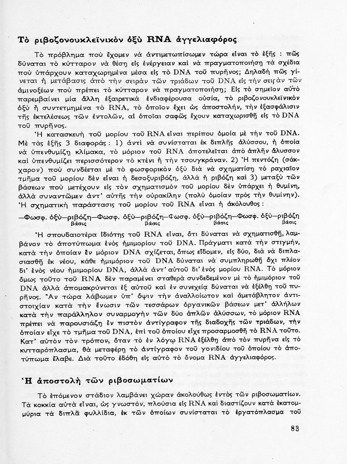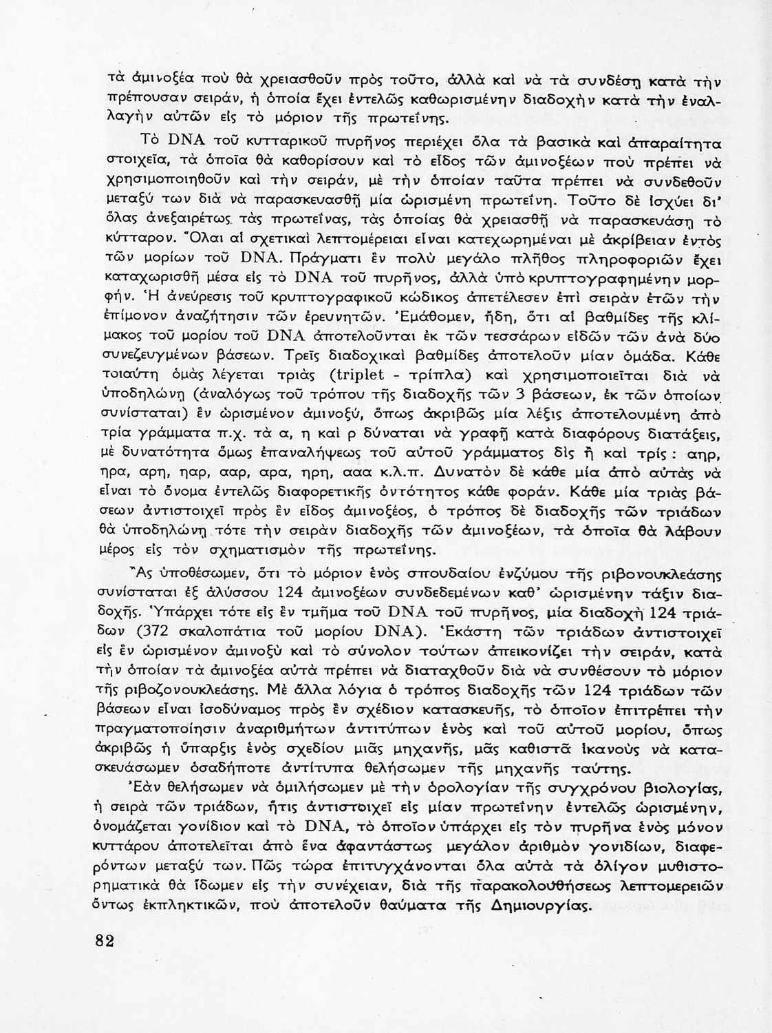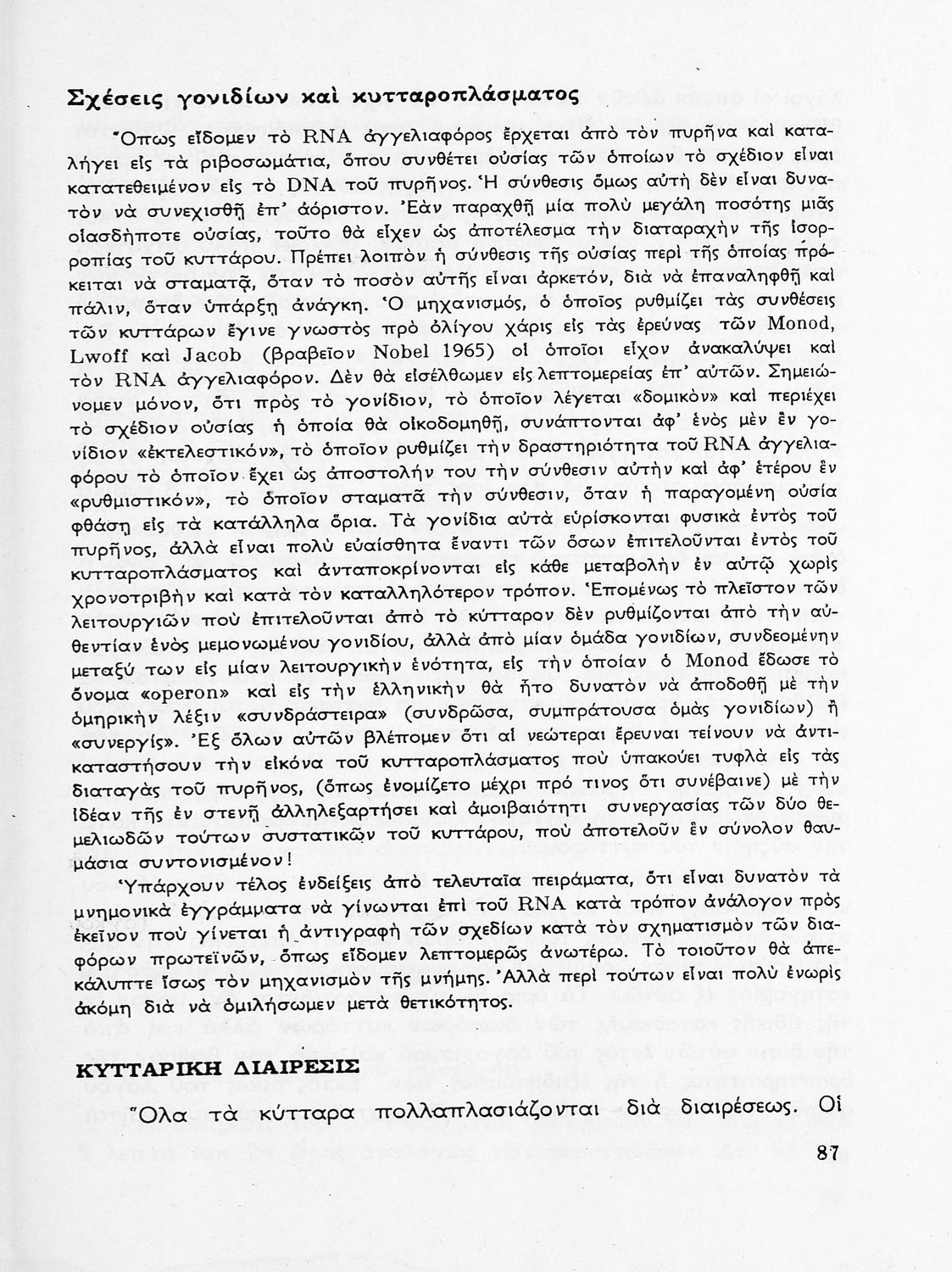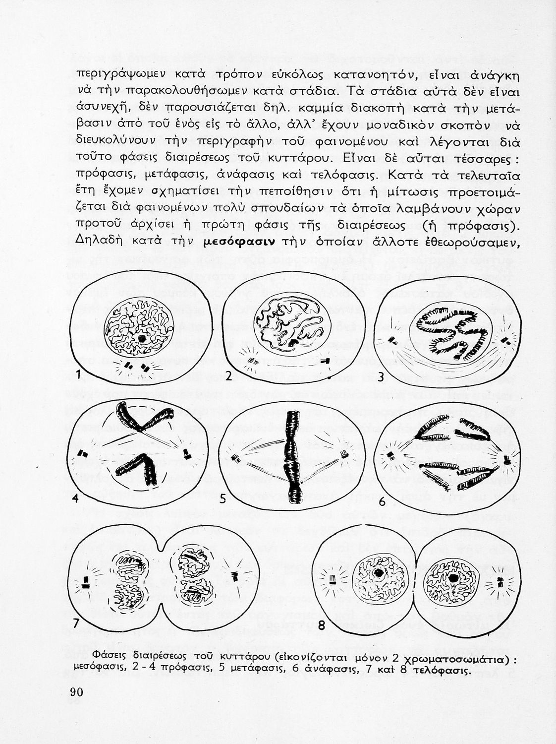Σχολικό εγχειρίδιο Βιολογίας ΣΤ΄ Γυμνασίου που εστιάζει στις συνθήκες γέννησης, μεταβολής και θανάτου των έμβιων οργανισμών. Φέρει το σύμβολο της δικτατορίας. Ο συγγραφέας ήταν υφηγητής του Πανεπιστημίου Αθηνών.