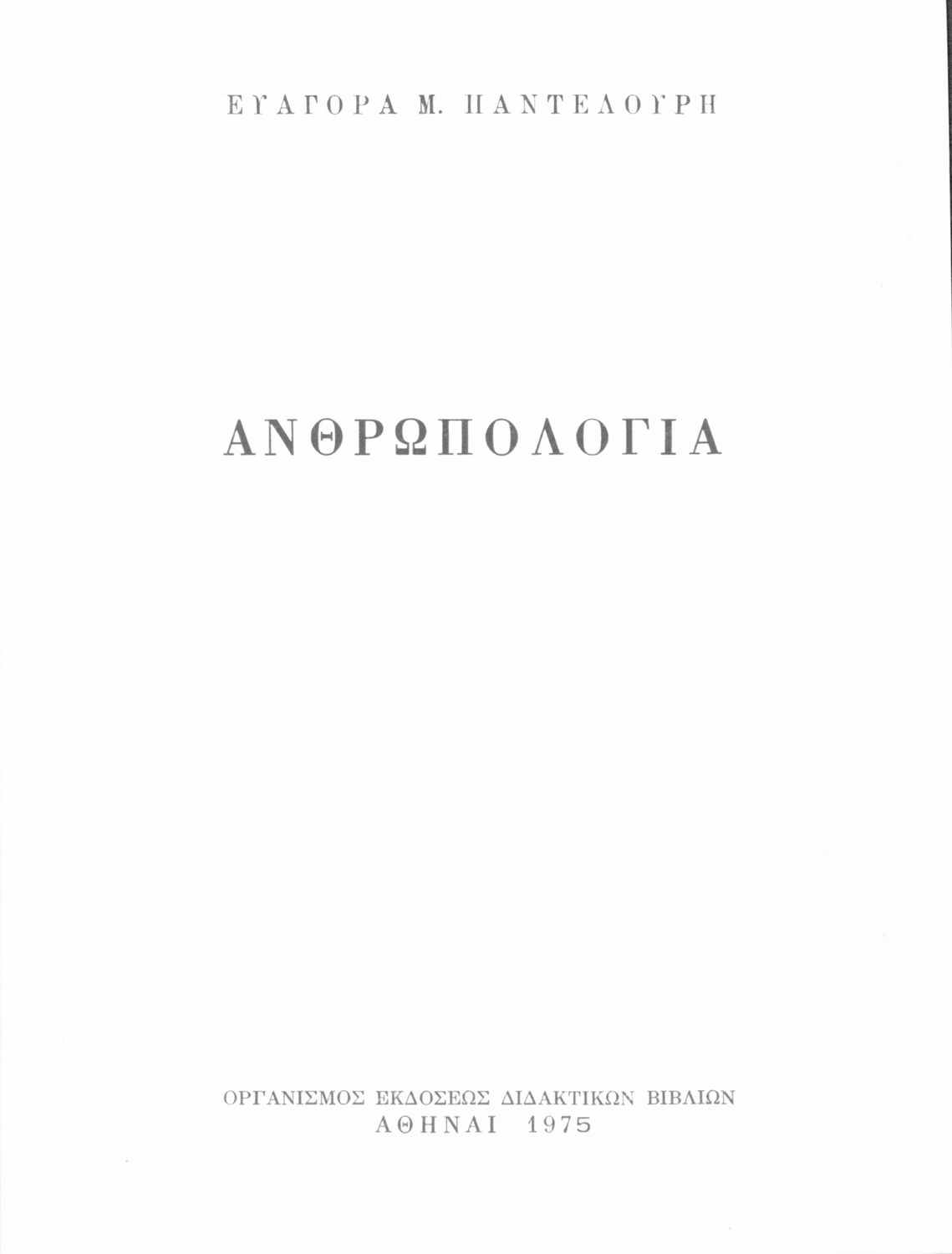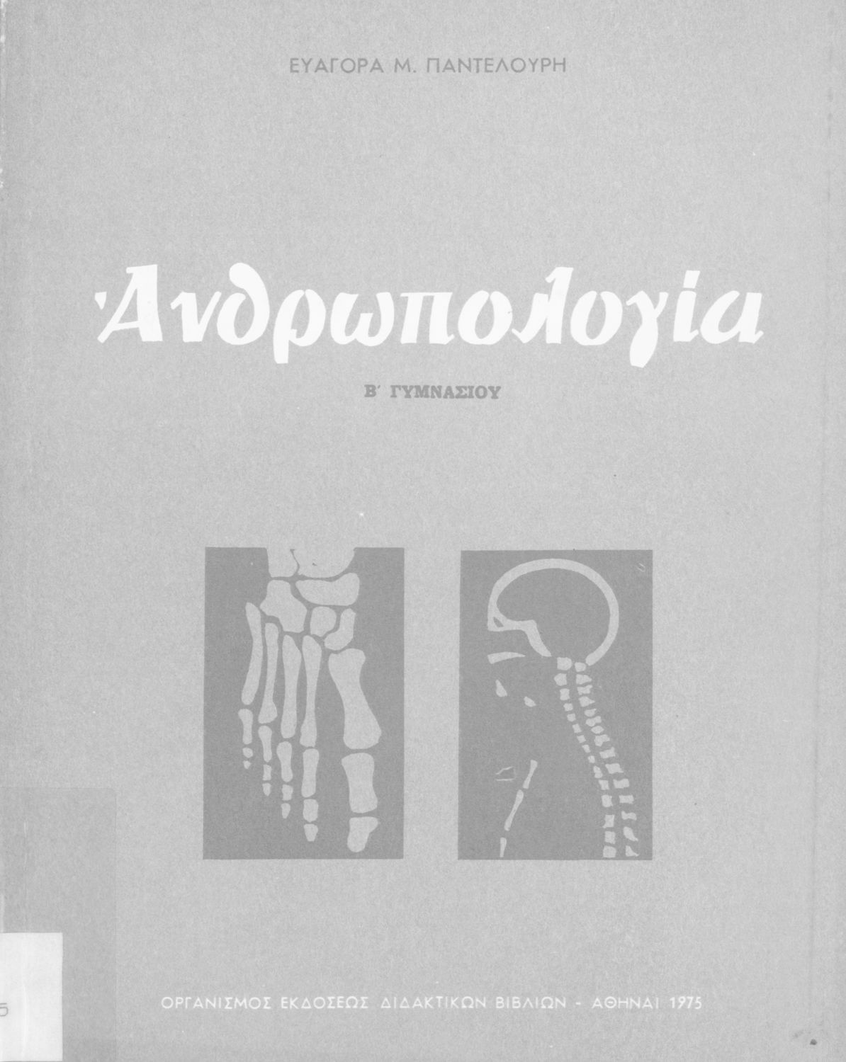 Σχολικό εγχειρίδιο Ανθρωπολογίας Β΄ Γυμνασίου που εστιάζει στην κατασκευή, ανάπτυξη και λειτουργία του ανθρώπινου οργανισμού και τη σχέση του ανθρώπου με το φυσικό περιβάλλον. Περιέχει και αναφορά στις ανθρώπινες φυλές.