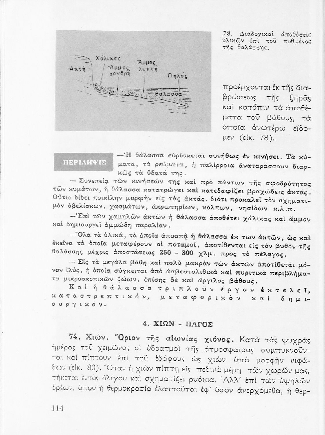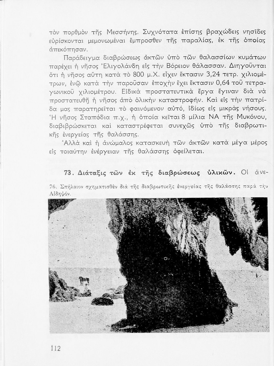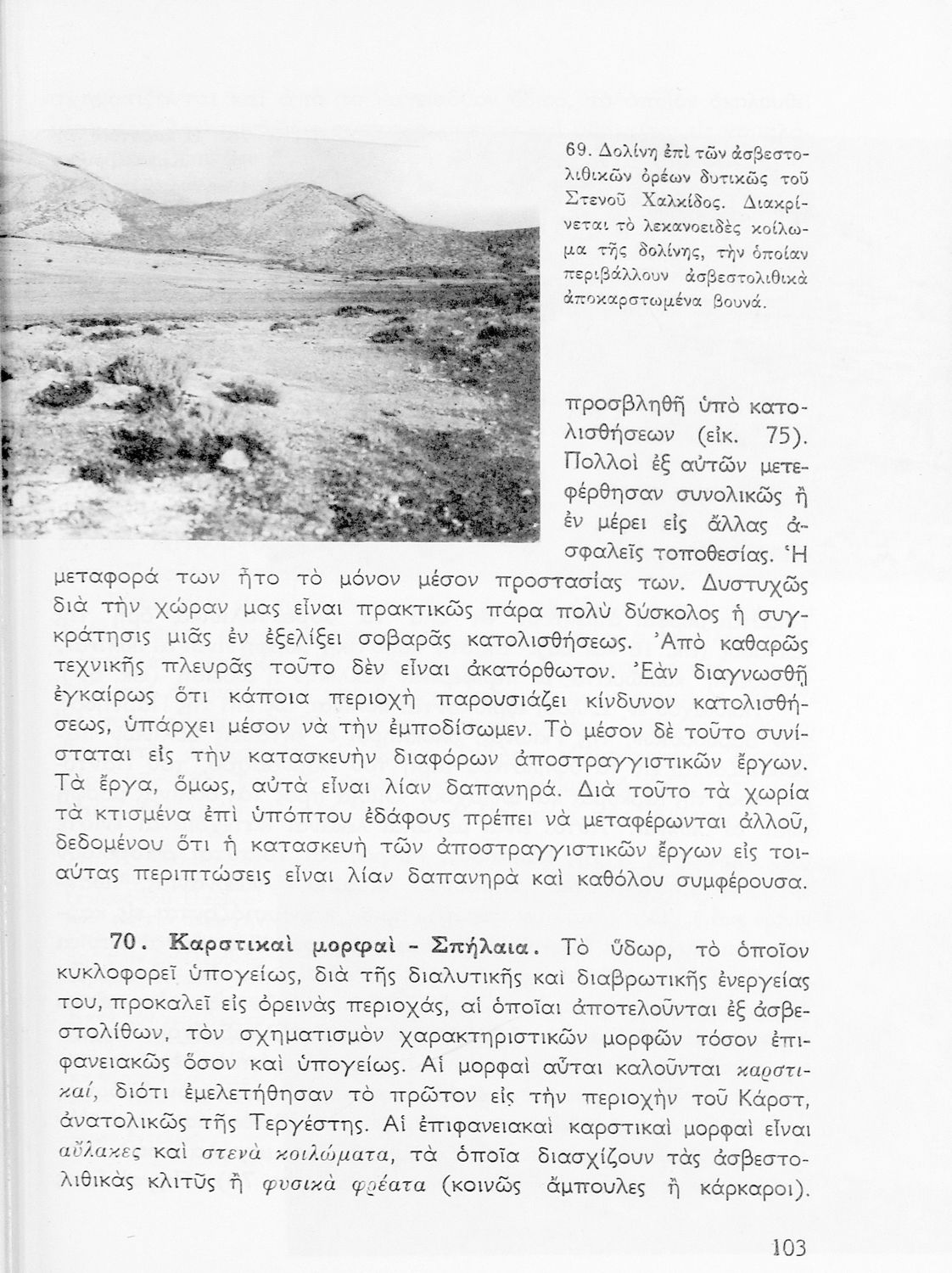 Σχολικό εγχειρίδιο Γεωλογίας/Ορυκτολογίας για την Δ΄ Γυμνασίου που περιλαμβάνει χθονογραφική, δυναμική και ιστορική γεωλογία, και γενική και ειδική ορυκτολογία. Ο συγγραφέας ήταν καθηγητής πανεπιστήμιου και η συγγραφέας φυσικός. Περιέχει παράρτημα με «Στοιχεία Μαθηματικής Γεωγραφίας» από τη γεωγραφία Δ’ τάξης του Αλκίνοου Μάζη (εκδ. 1963).