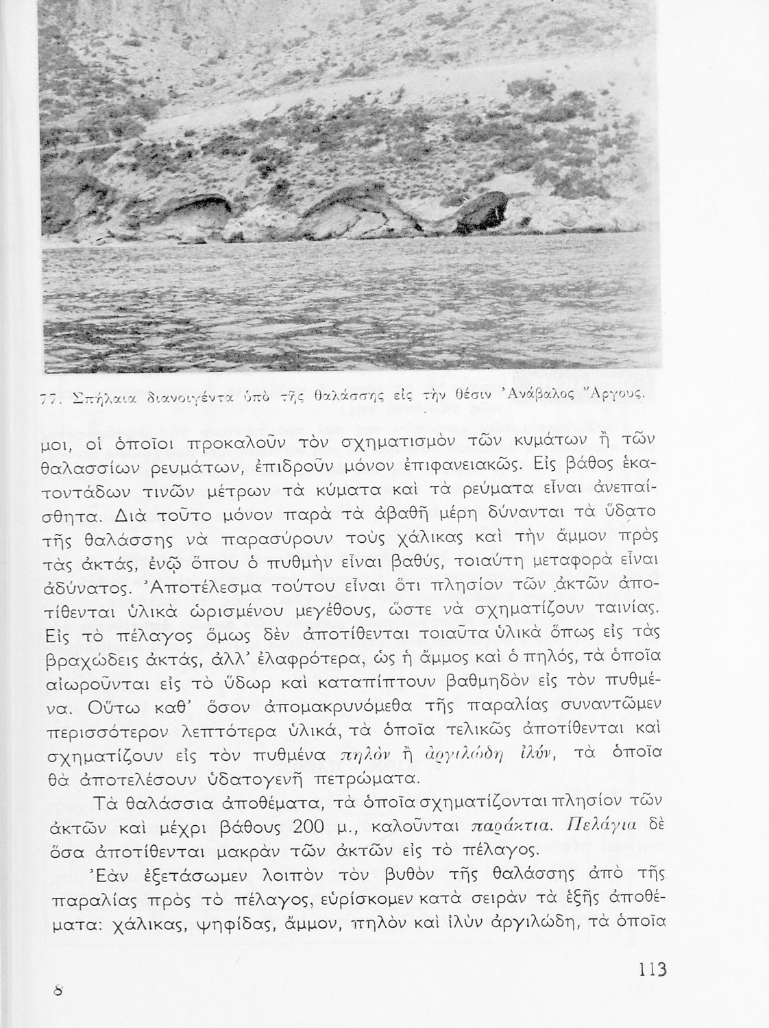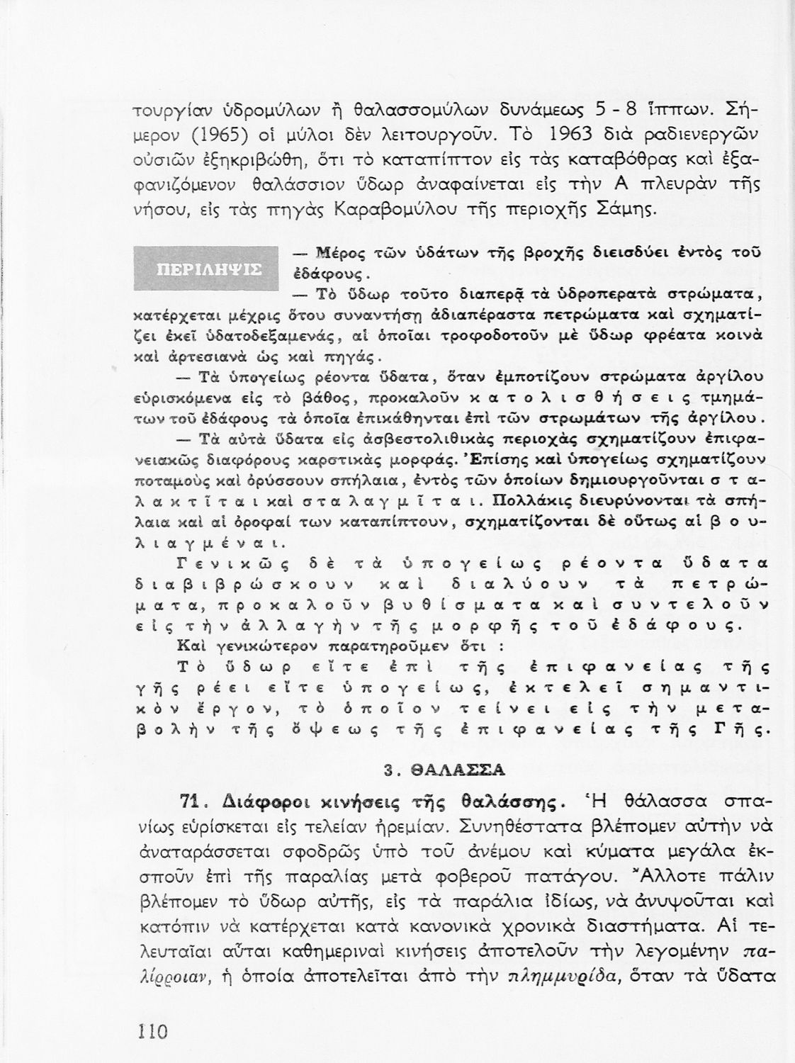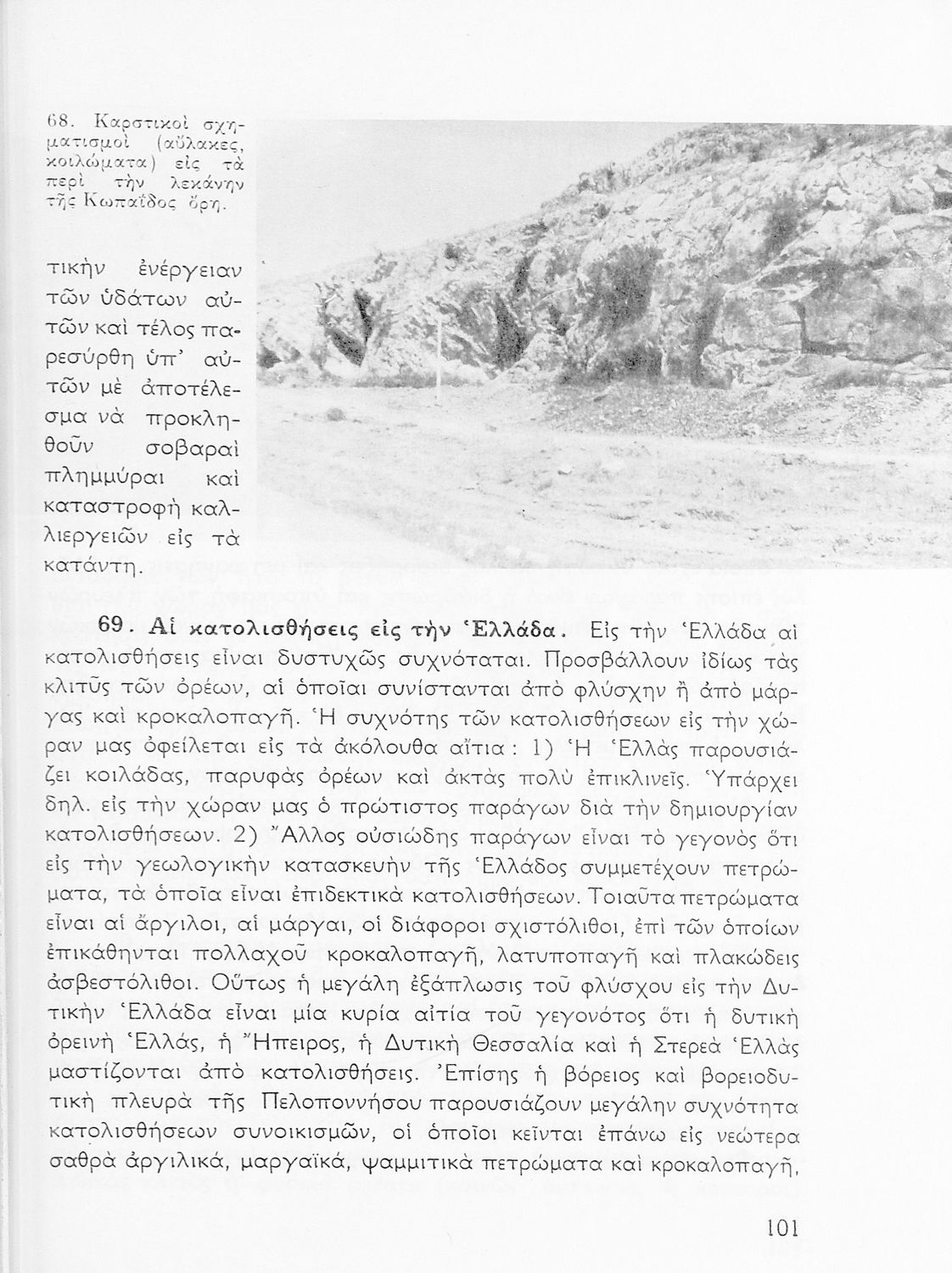 Σχολικό εγχειρίδιο Γεωλογίας/Ορυκτολογίας για την Δ΄ Γυμνασίου που περιλαμβάνει χθονογραφική, δυναμική και ιστορική γεωλογία, και γενική και ειδική ορυκτολογία. Ο συγγραφέας ήταν καθηγητής πανεπιστήμιου και η συγγραφέας φυσικός. Περιέχει παράρτημα με «Στοιχεία Μαθηματικής Γεωγραφίας» από τη γεωγραφία Δ’ τάξης του Αλκίνοου Μάζη (εκδ. 1963).