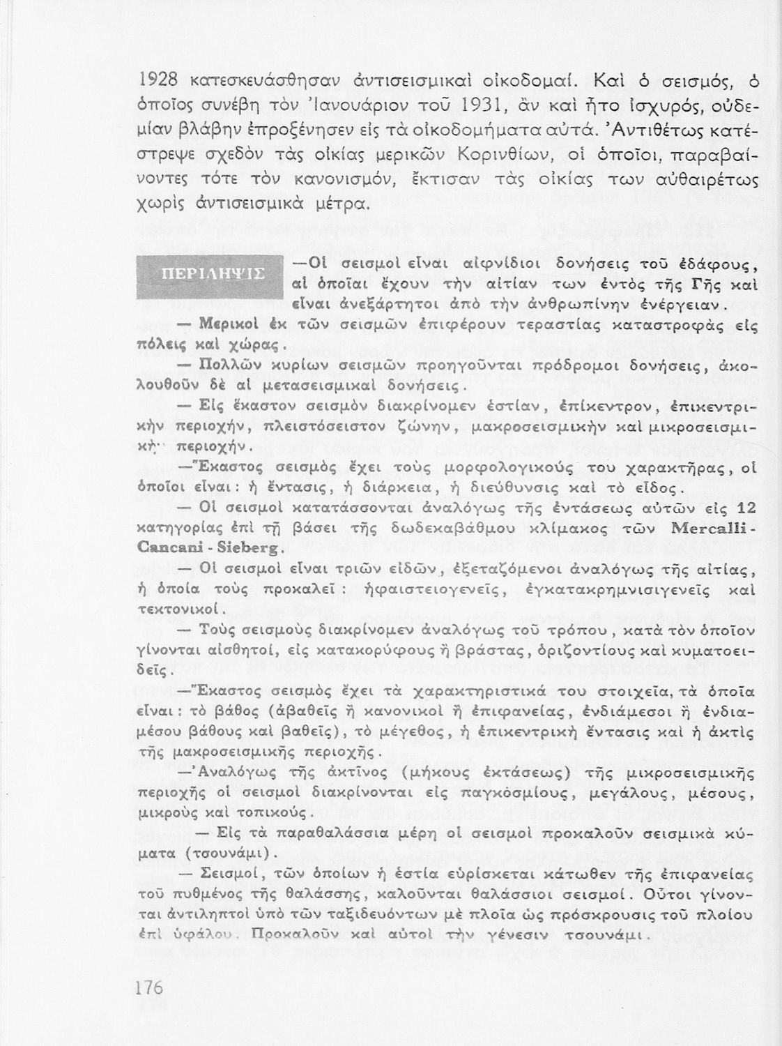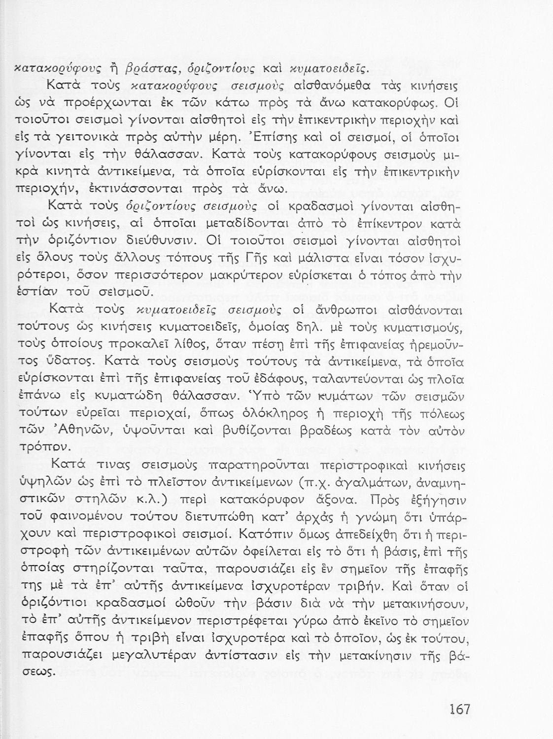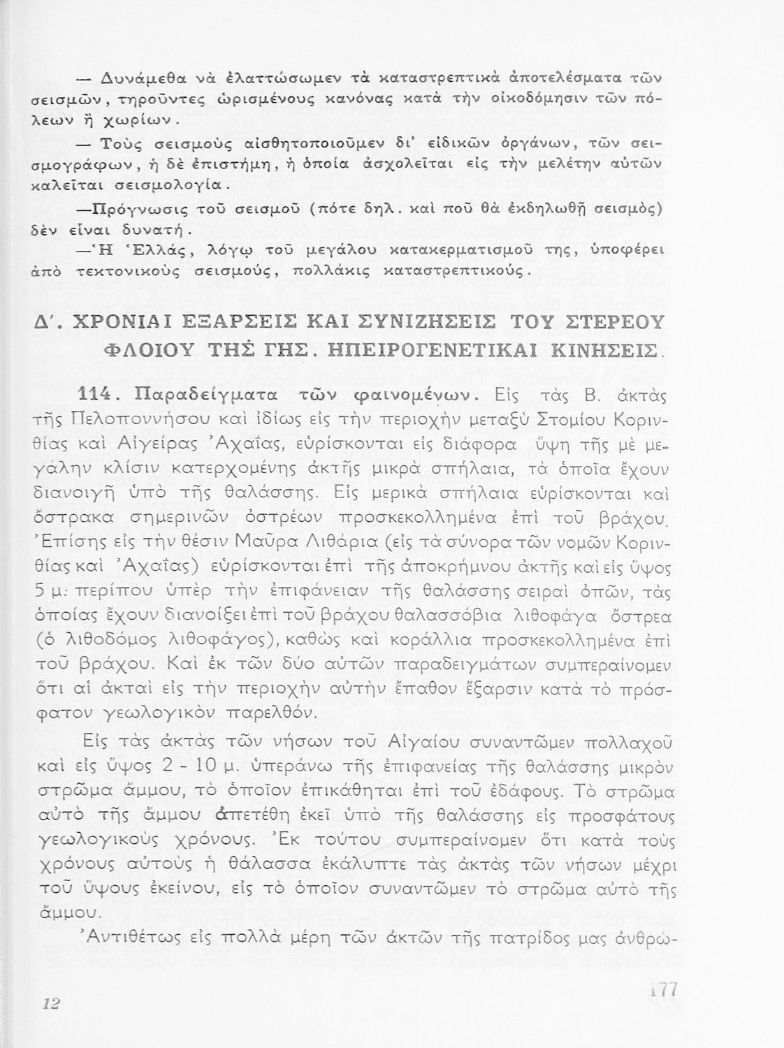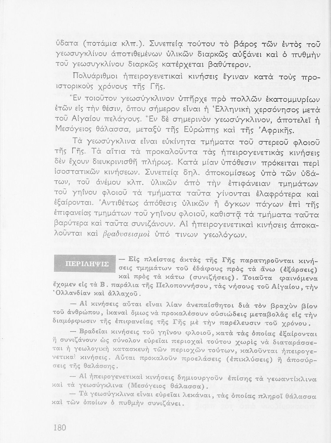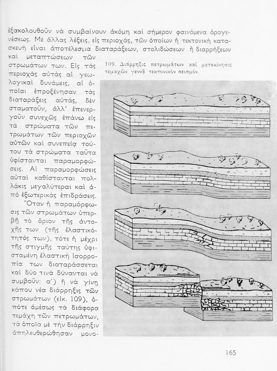 Σχολικό εγχειρίδιο Γεωλογίας/Ορυκτολογίας για την Δ΄ Γυμνασίου που περιλαμβάνει χθονογραφική, δυναμική και ιστορική γεωλογία, και γενική και ειδική ορυκτολογία. Ο συγγραφέας ήταν καθηγητής πανεπιστήμιου και η συγγραφέας φυσικός. Περιέχει παράρτημα με «Στοιχεία Μαθηματικής Γεωγραφίας» από τη γεωγραφία Δ’ τάξης του Αλκίνοου Μάζη (εκδ. 1963).