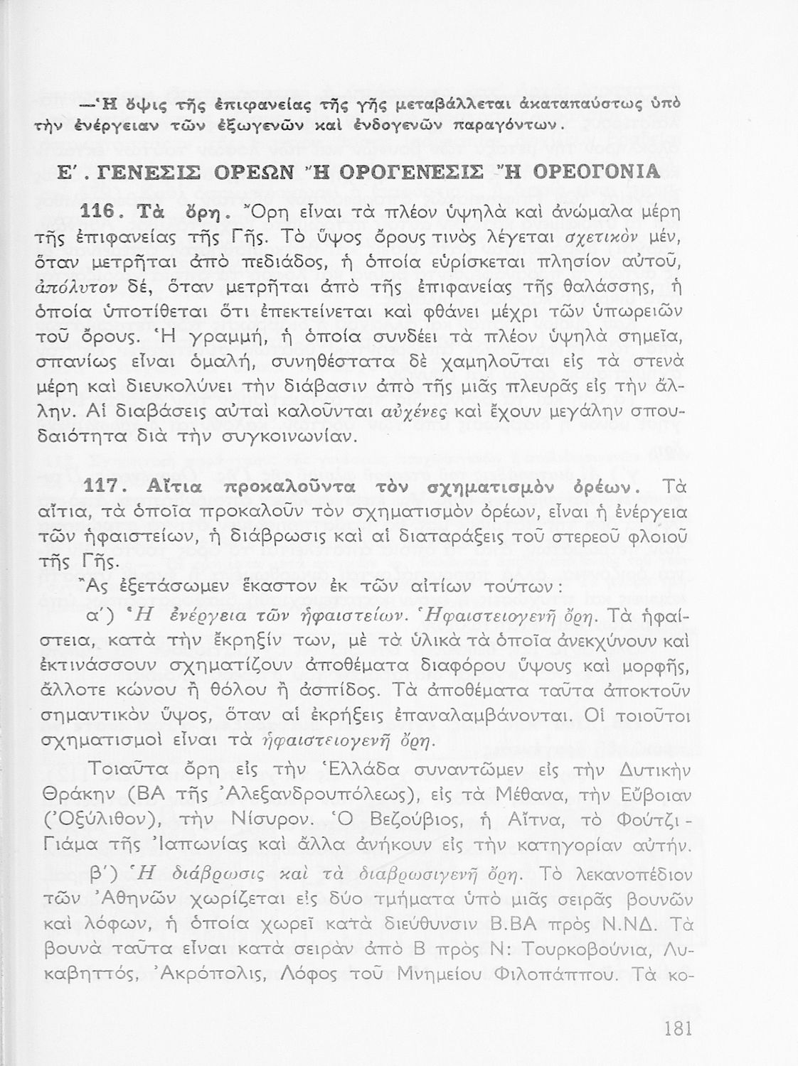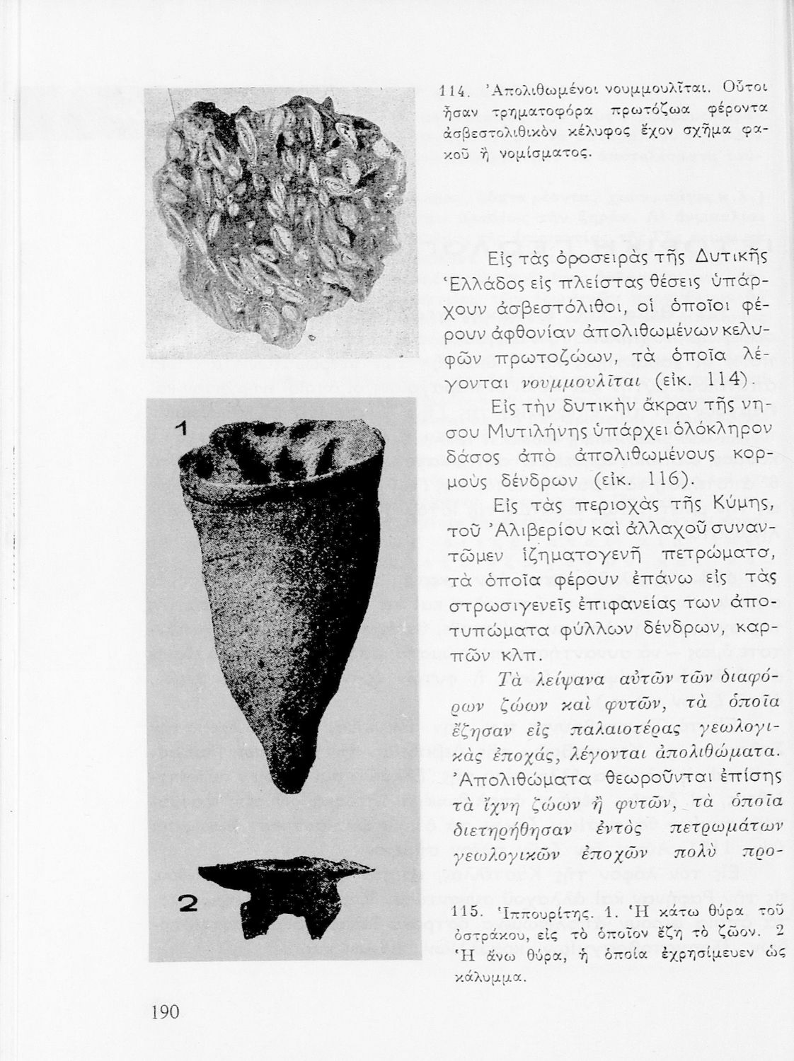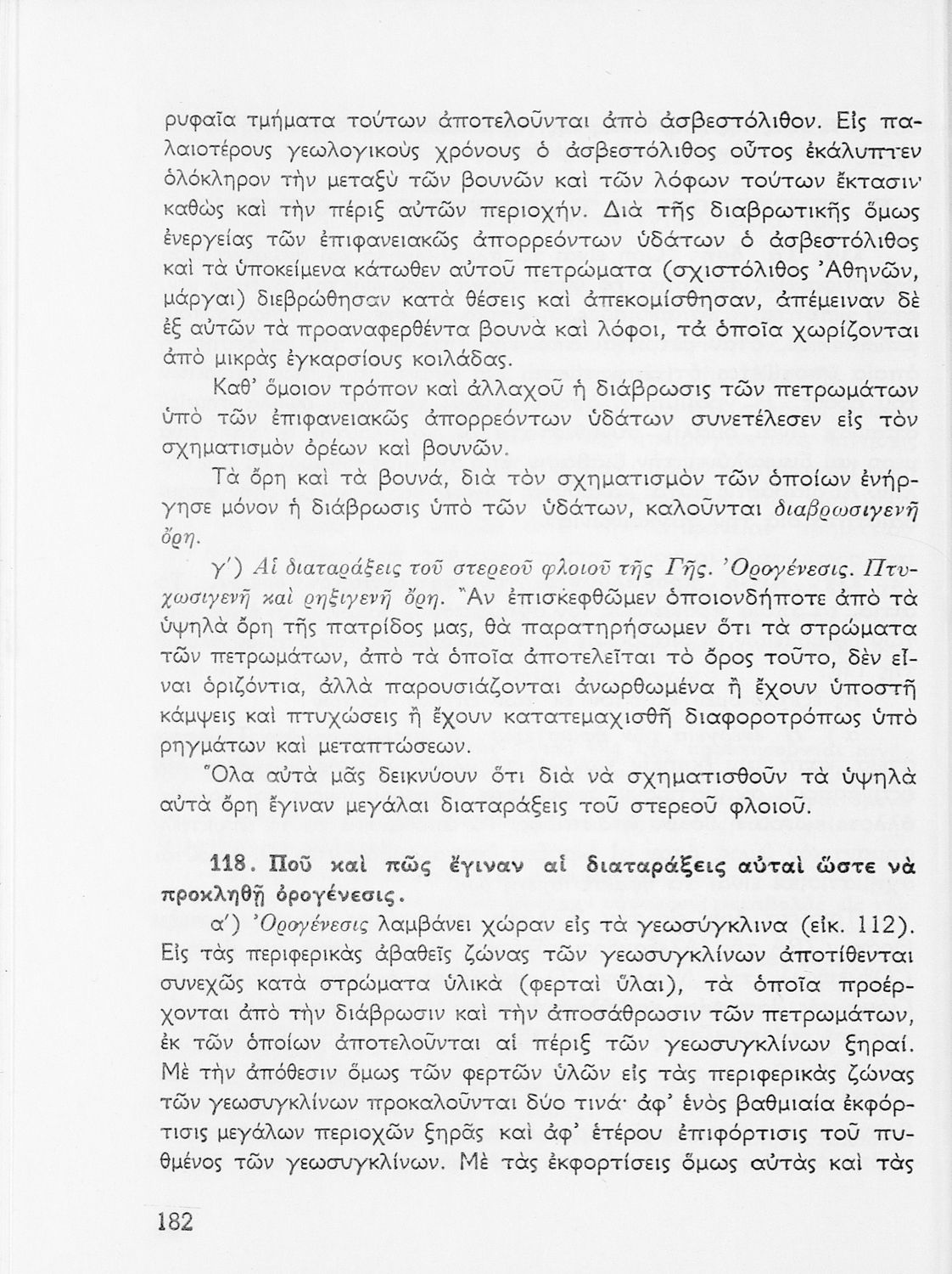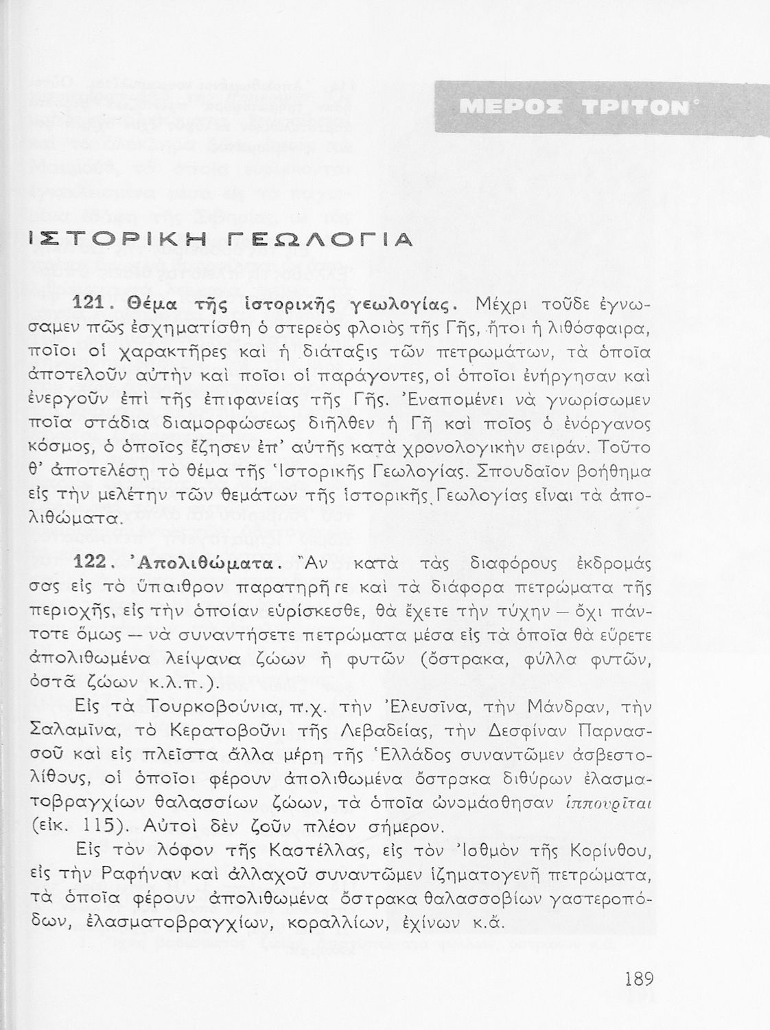 Σχολικό εγχειρίδιο Γεωλογίας/Ορυκτολογίας για την Δ΄ Γυμνασίου που περιλαμβάνει χθονογραφική, δυναμική και ιστορική γεωλογία, και γενική και ειδική ορυκτολογία. Ο συγγραφέας ήταν καθηγητής πανεπιστήμιου και η συγγραφέας φυσικός. Περιέχει παράρτημα με «Στοιχεία Μαθηματικής Γεωγραφίας» από τη γεωγραφία Δ’ τάξης του Αλκίνοου Μάζη (εκδ. 1963).