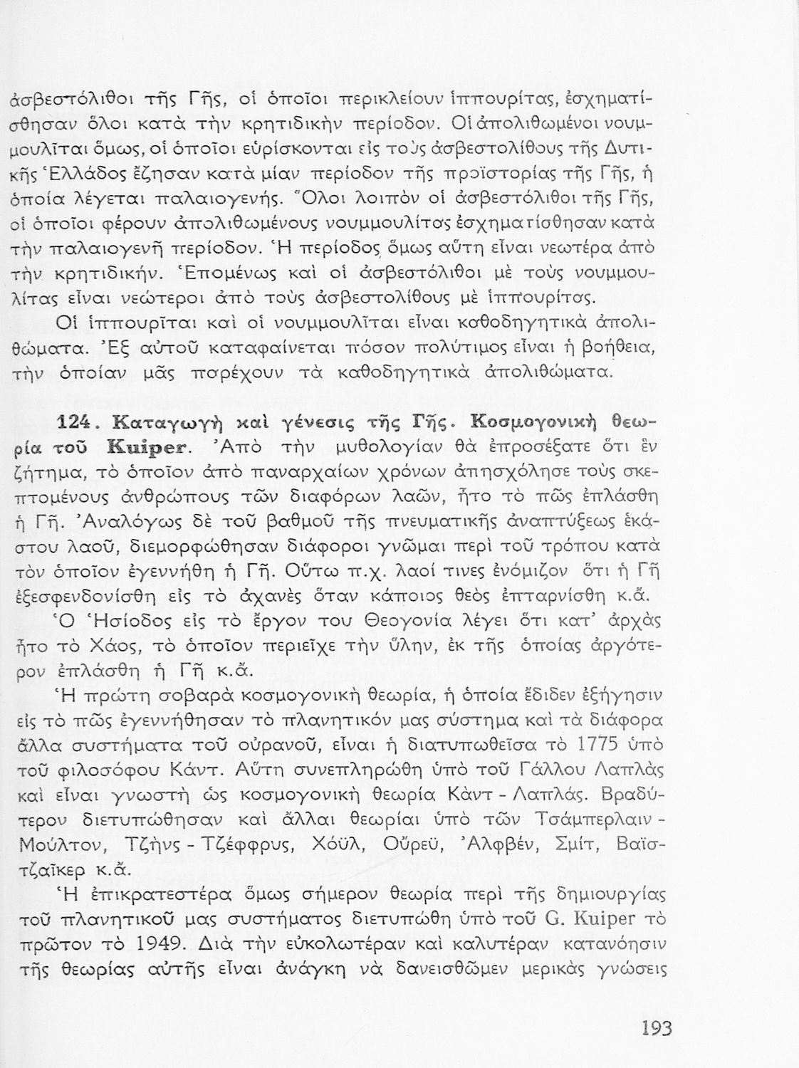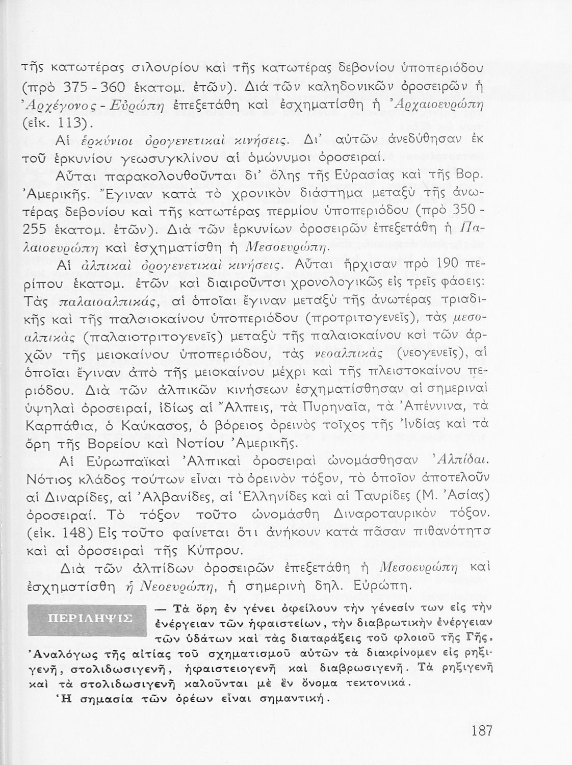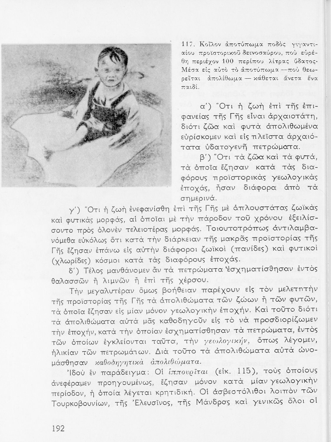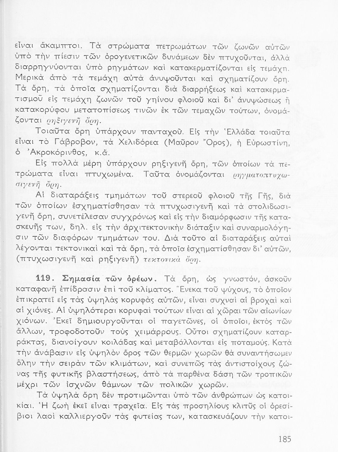 Σχολικό εγχειρίδιο Γεωλογίας/Ορυκτολογίας για την Δ΄ Γυμνασίου που περιλαμβάνει χθονογραφική, δυναμική και ιστορική γεωλογία, και γενική και ειδική ορυκτολογία. Ο συγγραφέας ήταν καθηγητής πανεπιστήμιου και η συγγραφέας φυσικός. Περιέχει παράρτημα με «Στοιχεία Μαθηματικής Γεωγραφίας» από τη γεωγραφία Δ’ τάξης του Αλκίνοου Μάζη (εκδ. 1963).