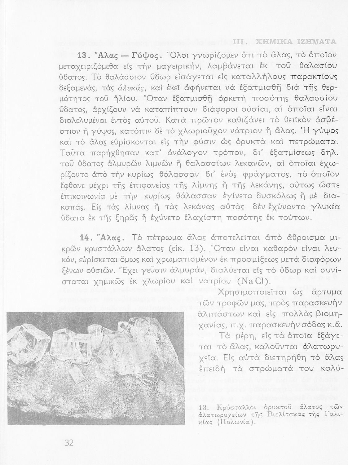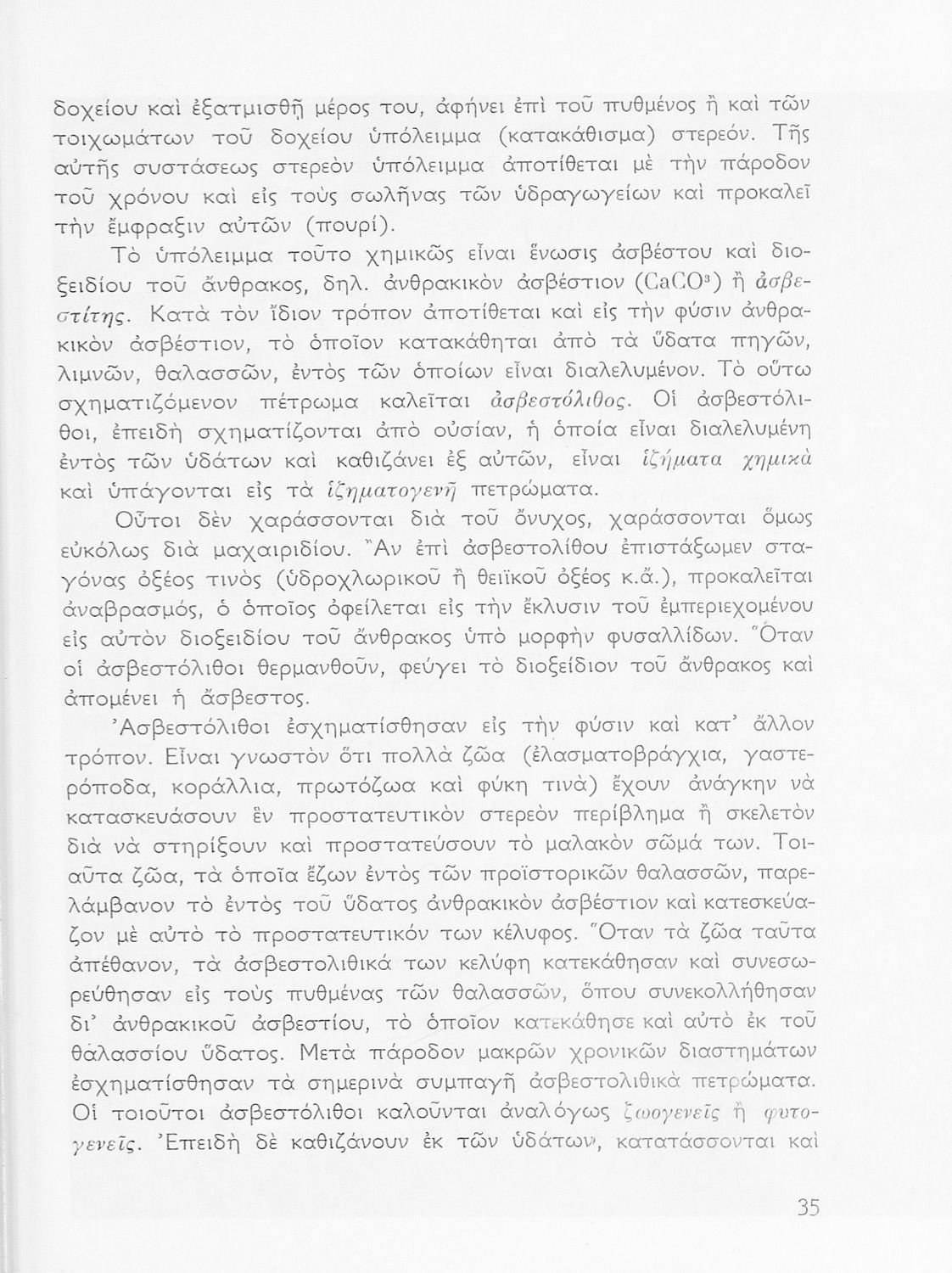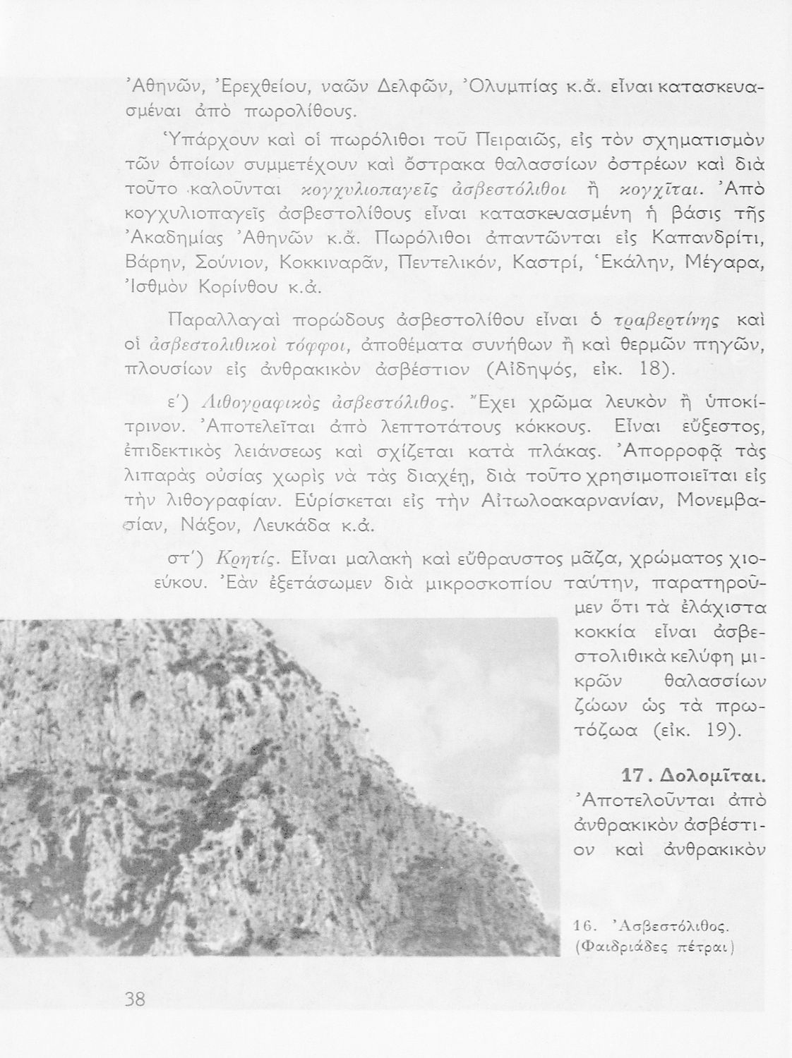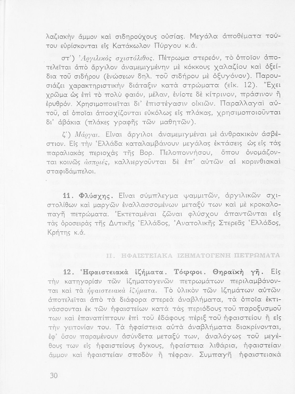 Σχολικό εγχειρίδιο Γεωλογίας/Ορυκτολογίας για την Δ΄ Γυμνασίου που περιλαμβάνει χθονογραφική, δυναμική και ιστορική γεωλογία, και γενική και ειδική ορυκτολογία. Ο συγγραφέας ήταν καθηγητής πανεπιστήμιου και η συγγραφέας φυσικός. Περιέχει παράρτημα με «Στοιχεία Μαθηματικής Γεωγραφίας» από τη γεωγραφία Δ’ τάξης του Αλκίνοου Μάζη (εκδ. 1963).