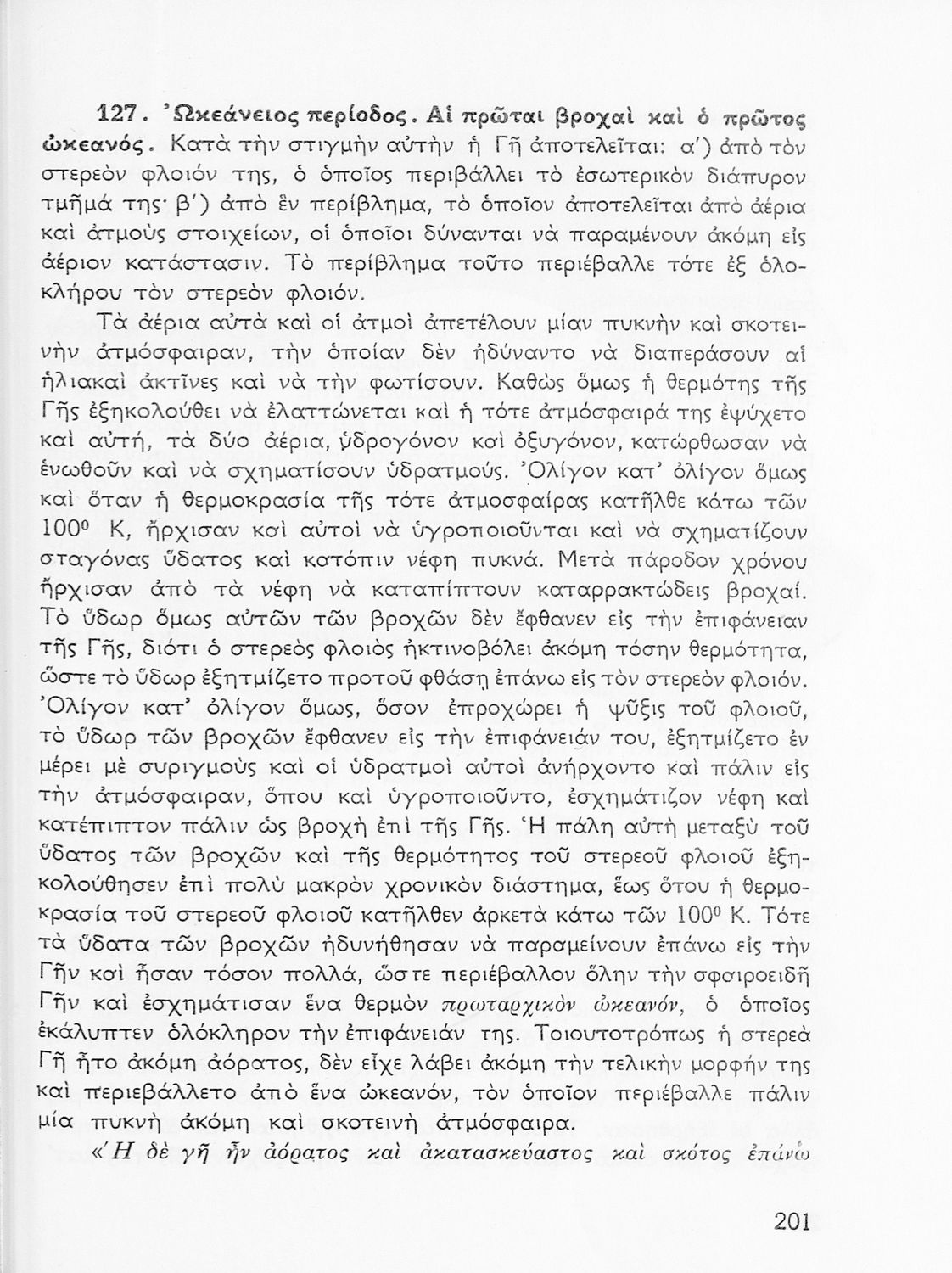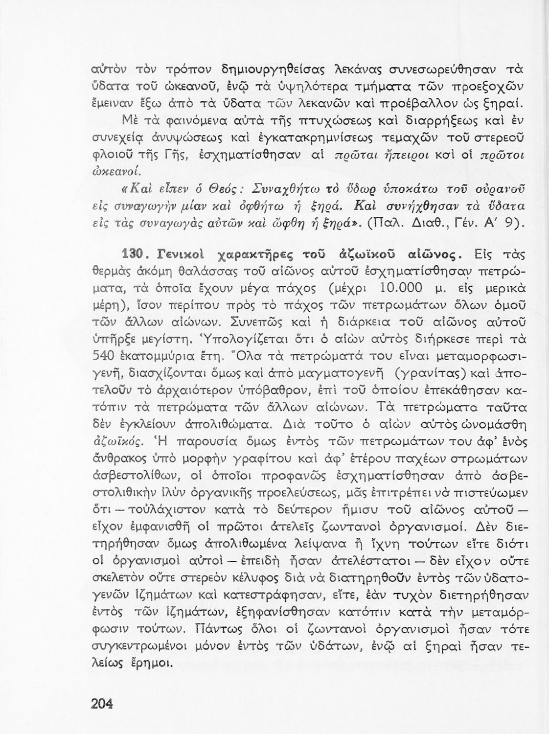 Σχολικό εγχειρίδιο Γεωλογίας/Ορυκτολογίας για την Δ΄ Γυμνασίου που περιλαμβάνει χθονογραφική, δυναμική και ιστορική γεωλογία, και γενική και ειδική ορυκτολογία. Ο συγγραφέας ήταν καθηγητής πανεπιστήμιου και η συγγραφέας φυσικός. Περιέχει παράρτημα με «Στοιχεία Μαθηματικής Γεωγραφίας» από τη γεωγραφία Δ’ τάξης του Αλκίνοου Μάζη (εκδ. 1963).