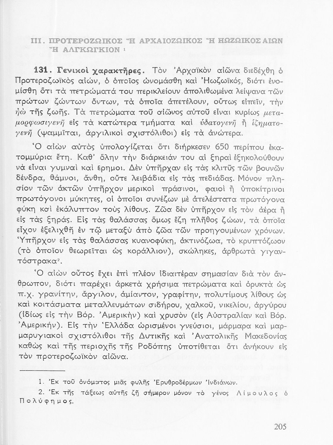 Βαθμίδα εκπαίδευσης: Δευτεροβάθμια Τάξη: Δ' Γυμνασίου Μάθημα: Γεωλογία, Ορυκτολογία Γλώσσα: Απλή καθαρεύουσα Παρουσίαση περιεχομένου: Σχολικό εγχειρίδιο Γεωλογίας/Ορυκτολογίας για την Δ΄ Γυμνασίου που περιλαμβάνει χθονογραφική, δυναμική και ιστορική γεωλογία, και γενική και ειδική ορυκτολογία. Ο συγγραφέας ήταν καθηγητής πανεπιστήμιου και η συγγραφέας φυσικός. Περιέχει παράρτημα με «Στοιχεία Μαθηματικής Γεωγραφίας» από τη γεωγραφία Δ’ τάξης του Αλκίνοου Μάζη (εκδ. 1963). |
